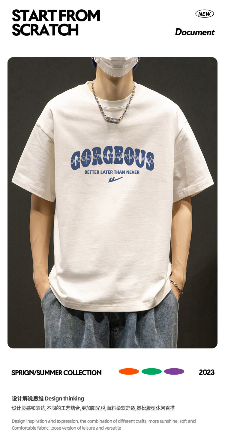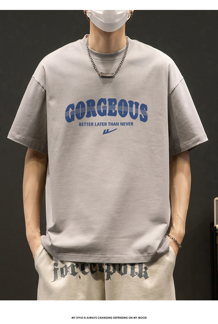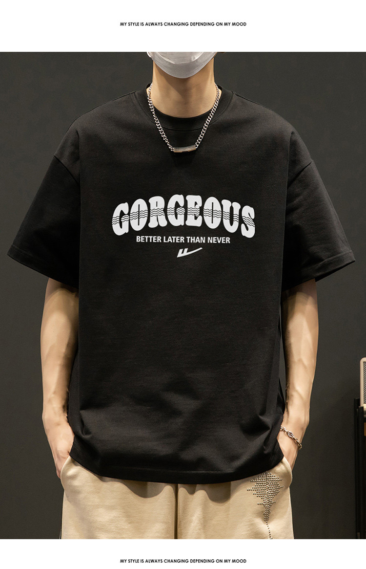 男式短袖T恤宽松五分袖日系潮流半袖男士简约百搭运动体恤上衣服 794899
