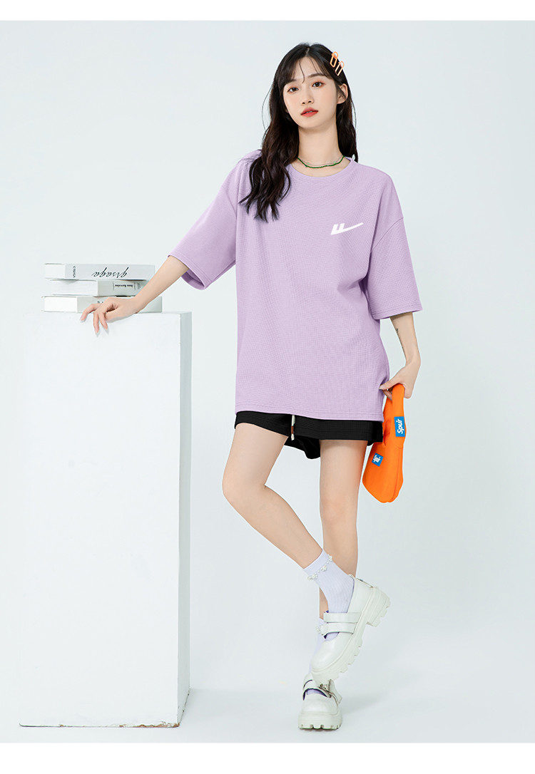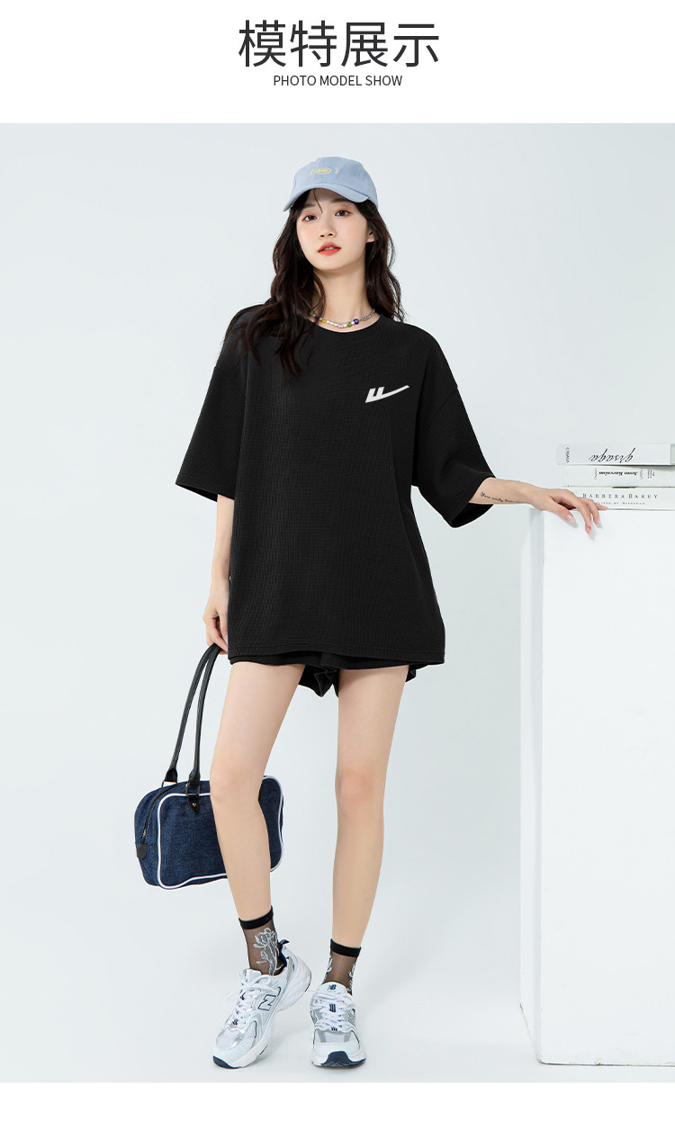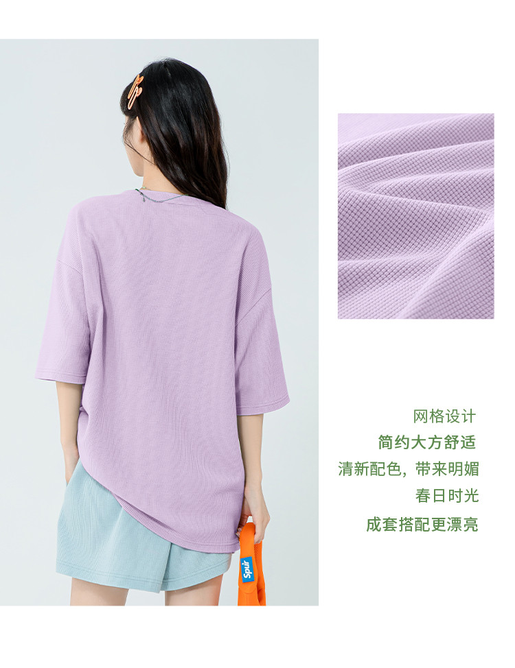 商品名称:【女装】半袖女式T恤夏季宽松华夫格中长短袖上衣女潮 471635