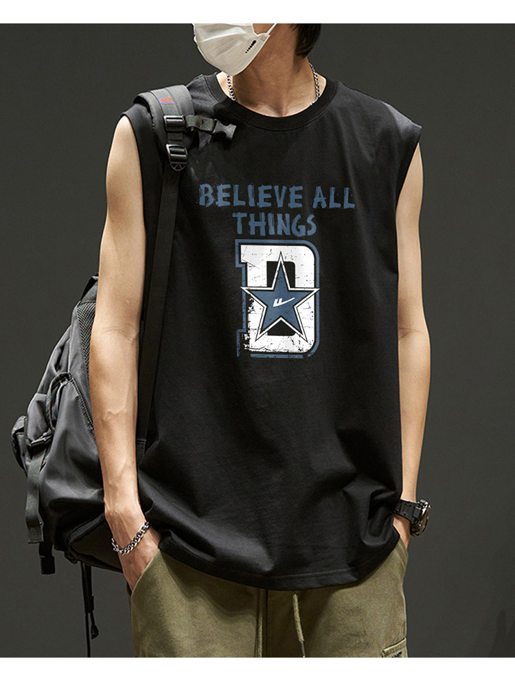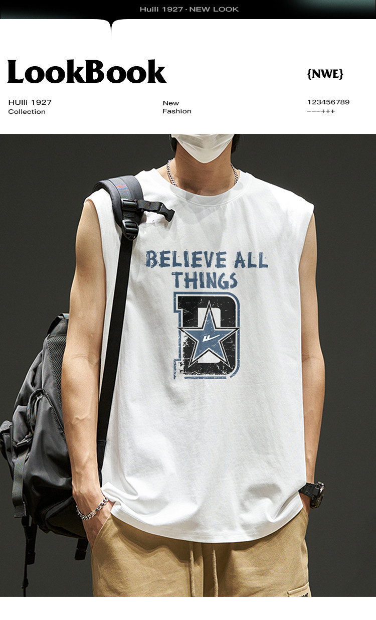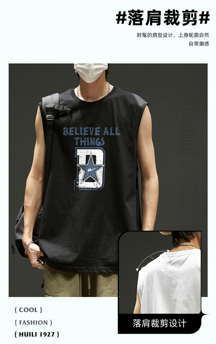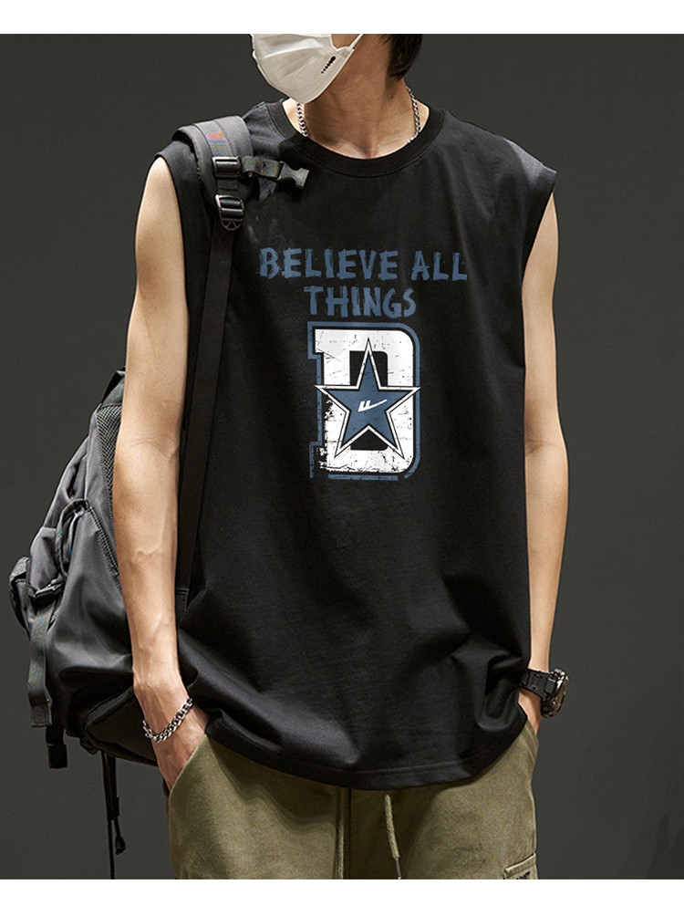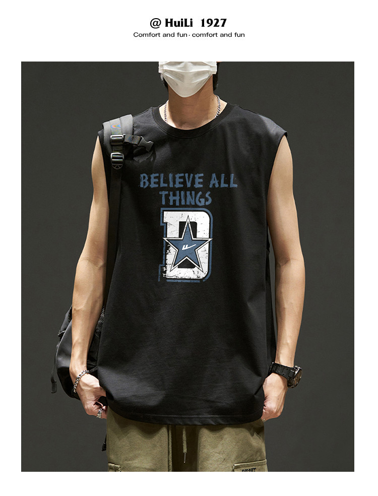 韩版潮流无袖T恤男士纯棉夏季篮球无袖背心运动潮牌宽松汗衫坎肩 875923