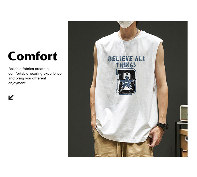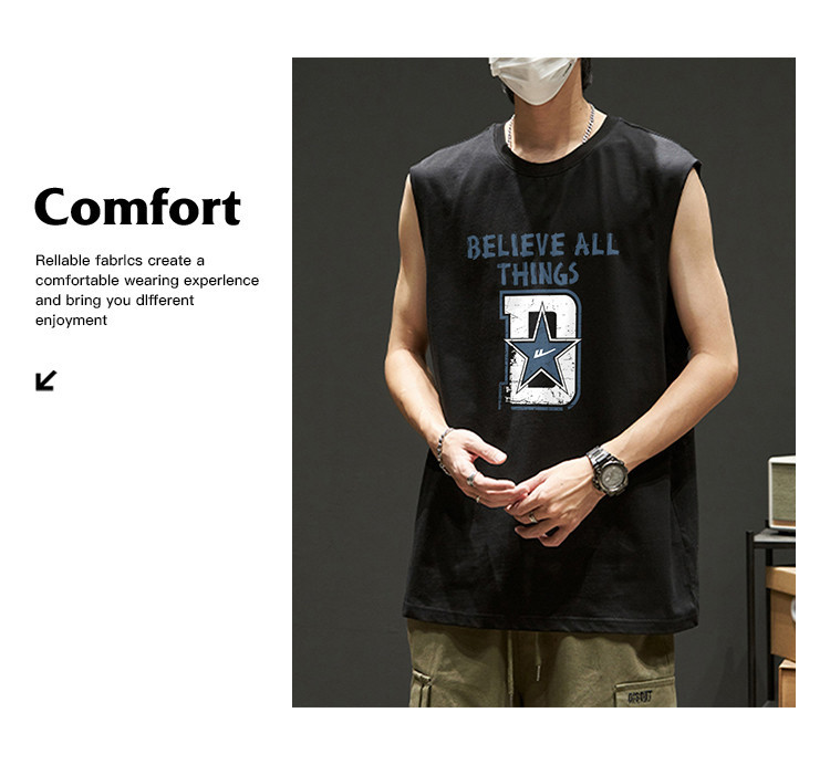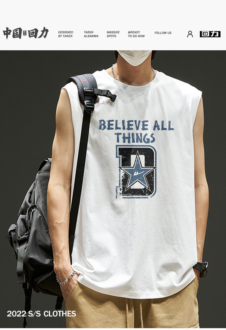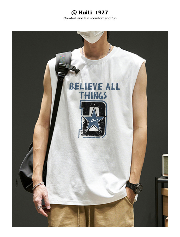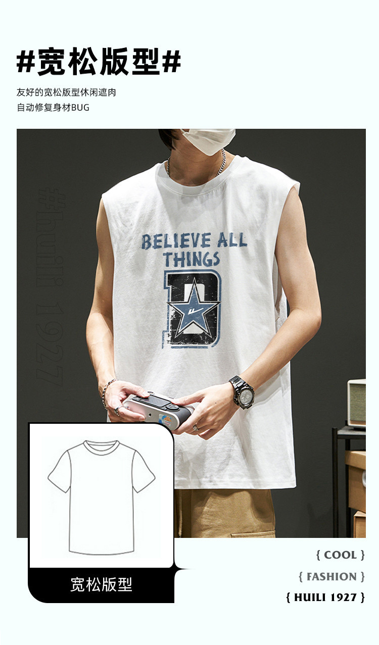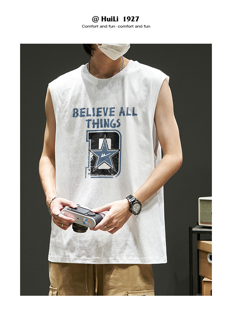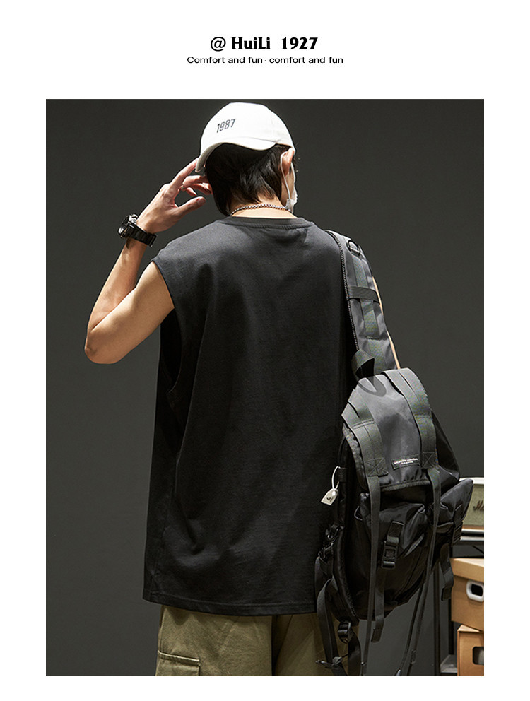 商品名称:韩版潮流无袖T恤男士纯棉夏季篮球无袖背心运动潮牌宽松汗衫坎肩 875923