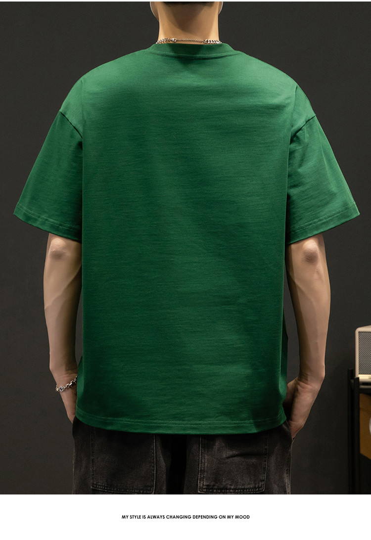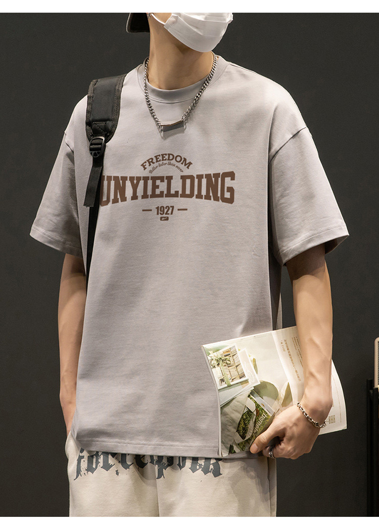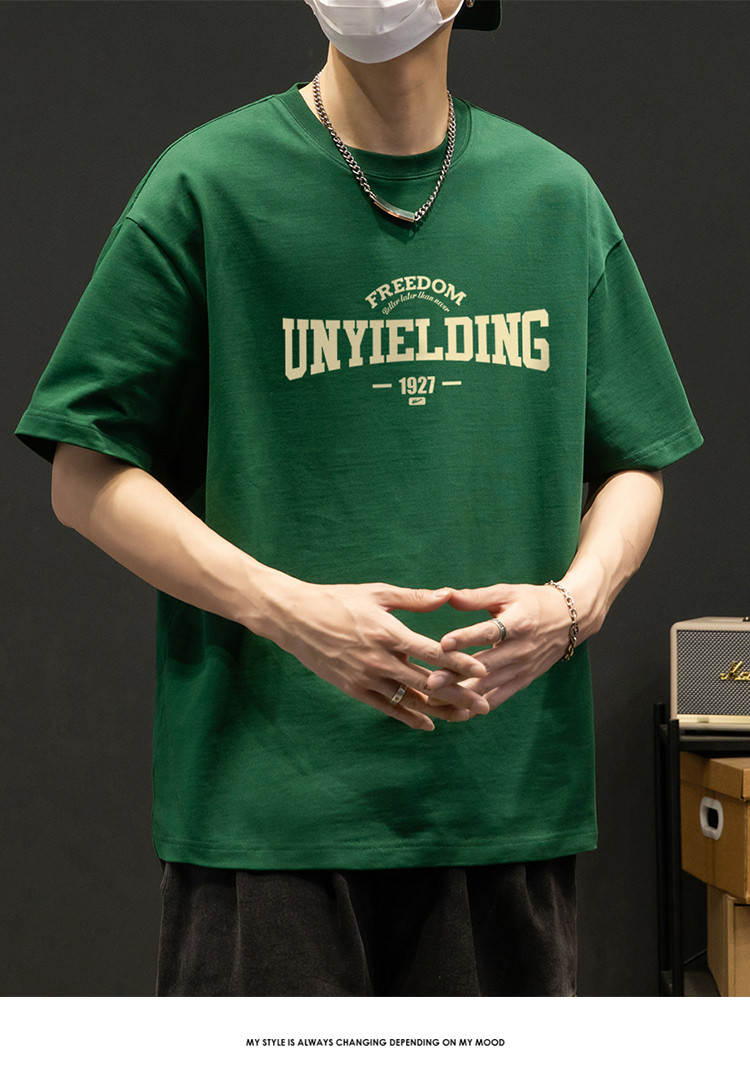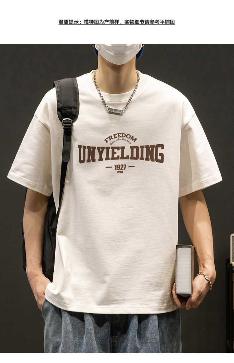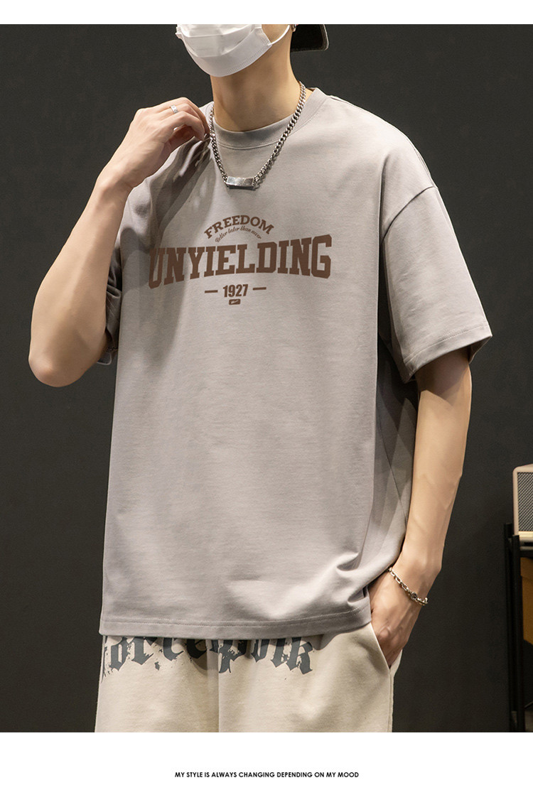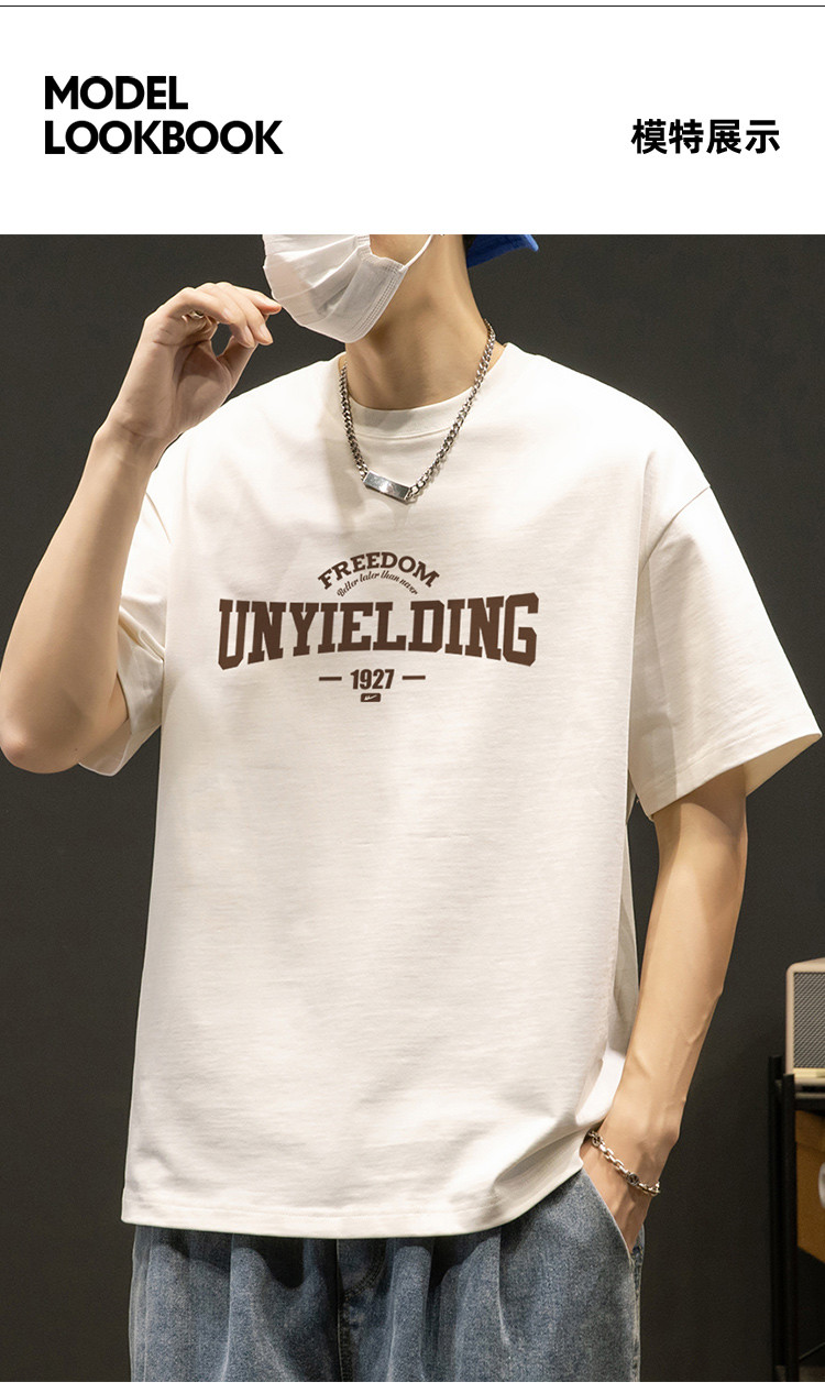 T恤男宽松纯棉五分袖盐系男友风潮流半袖简约短袖男舒适运动上衣 412819