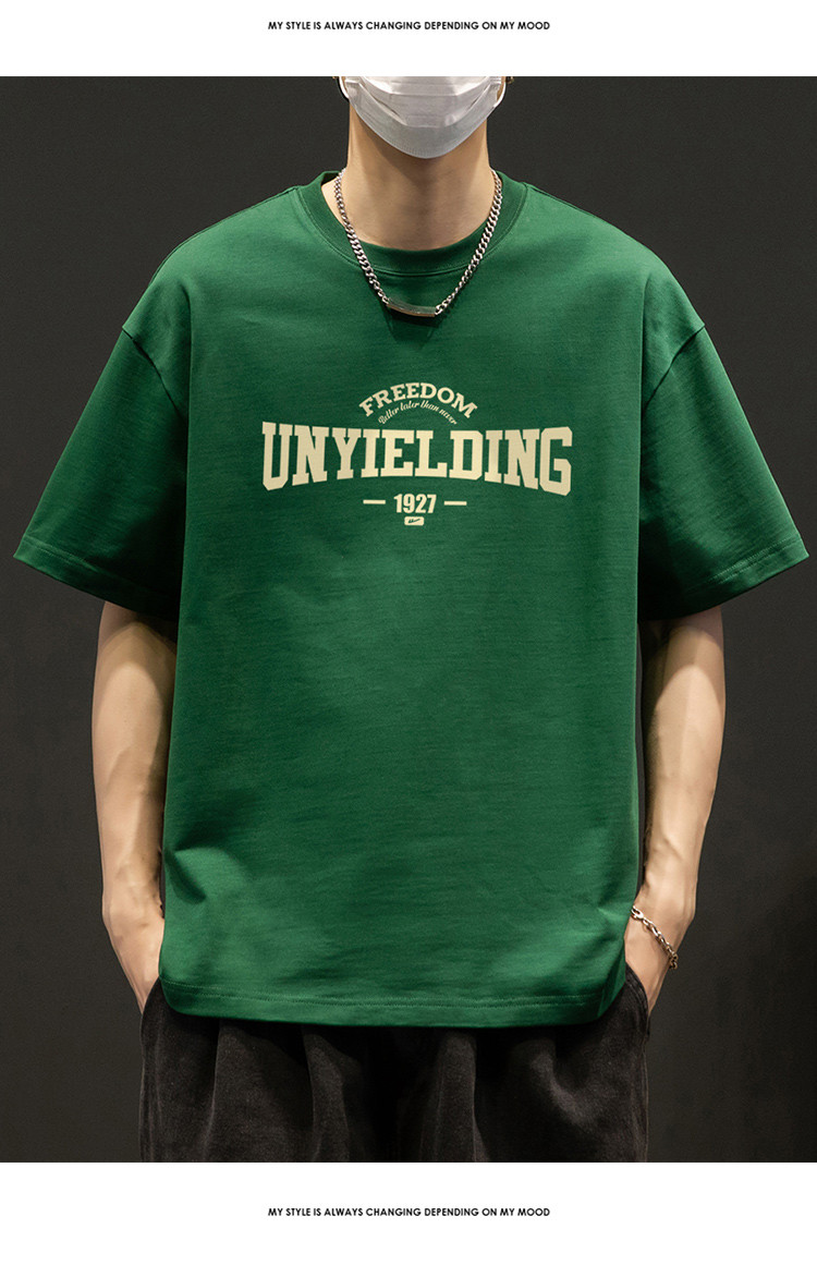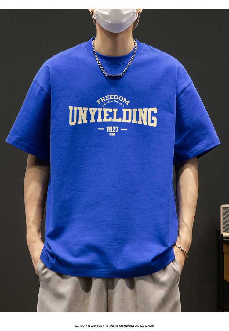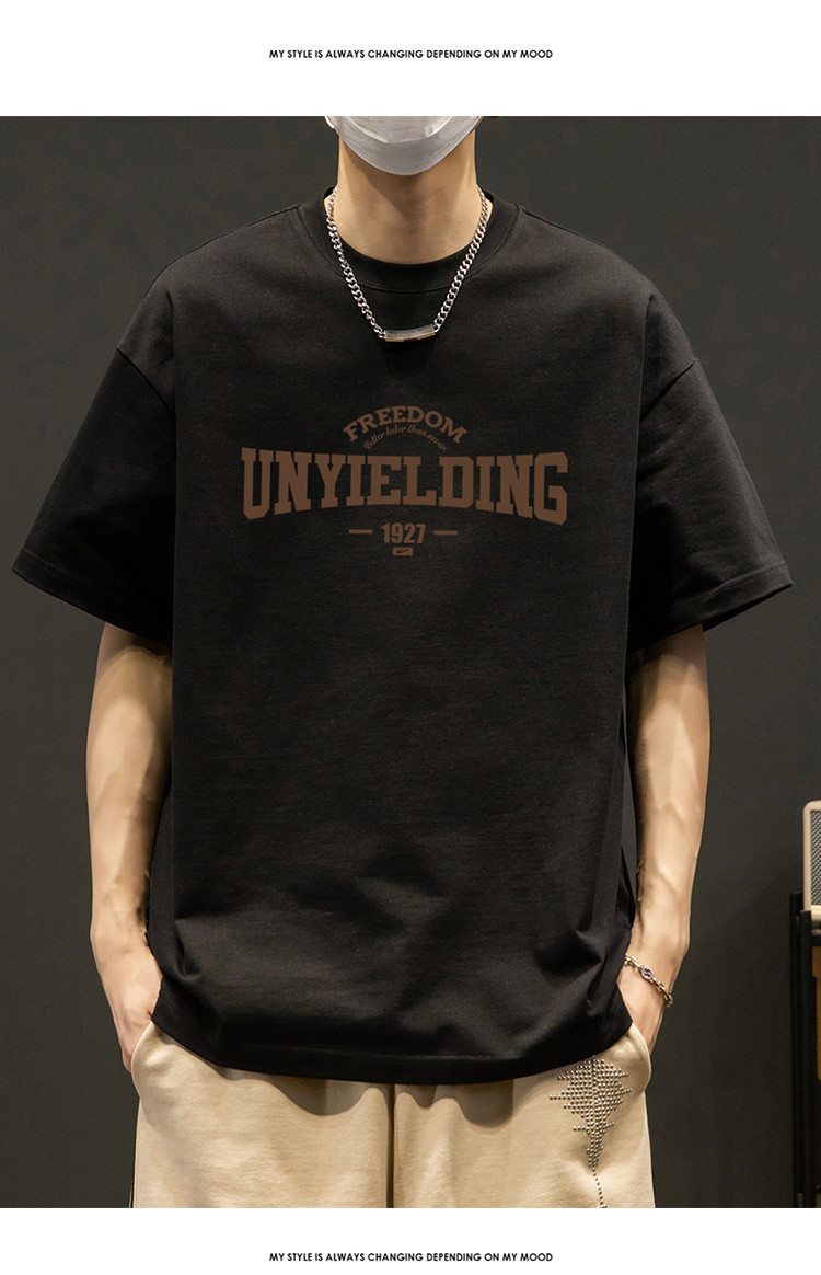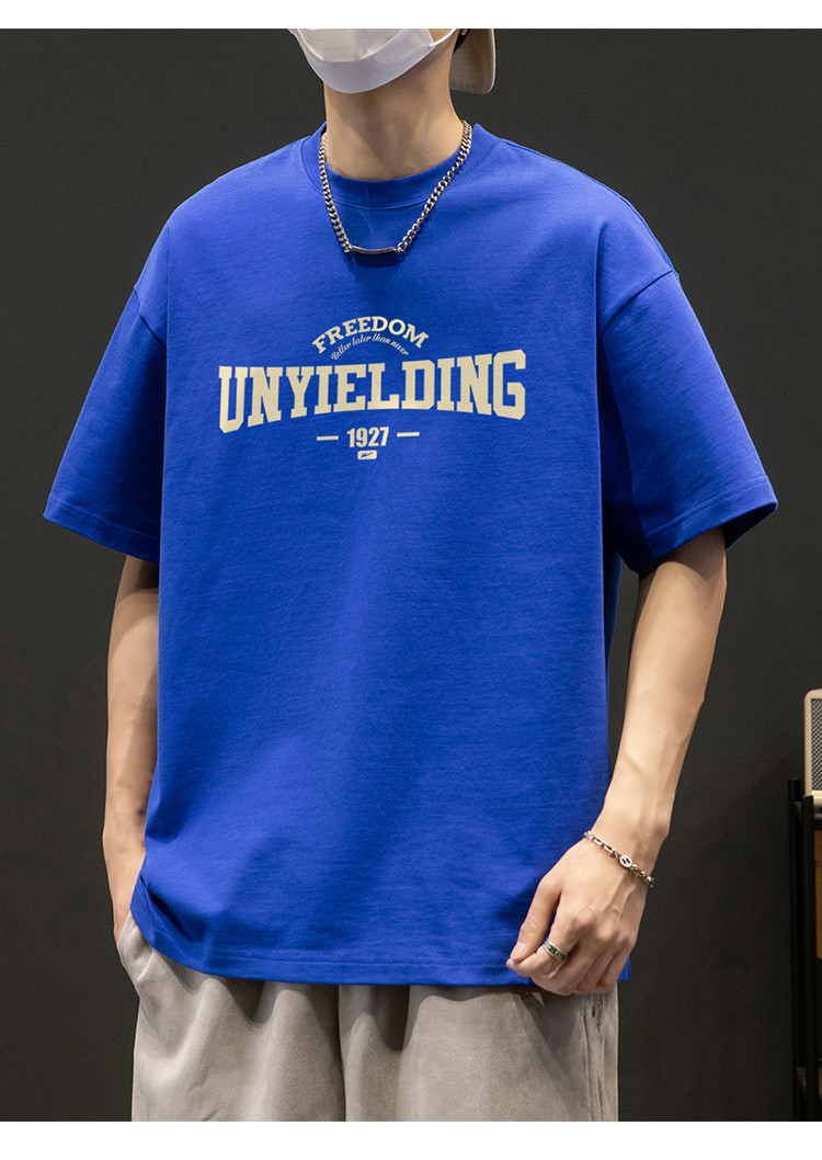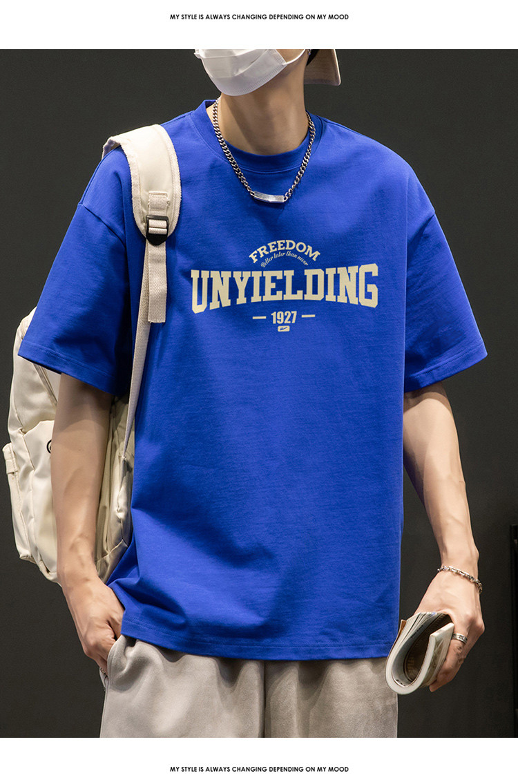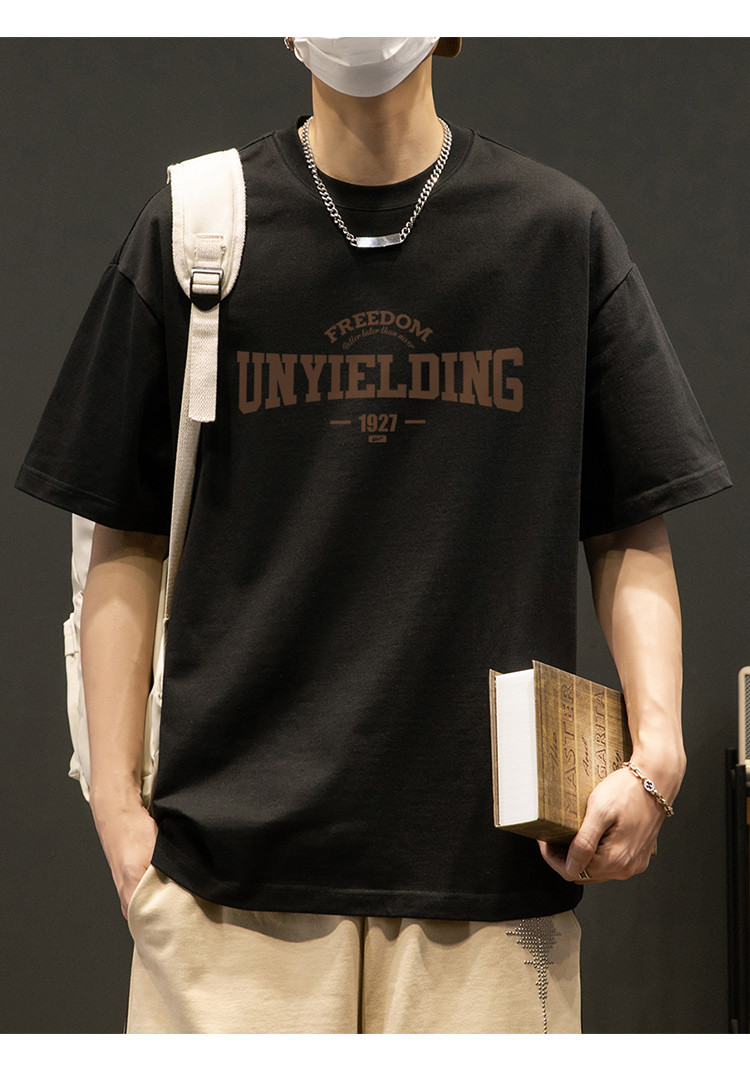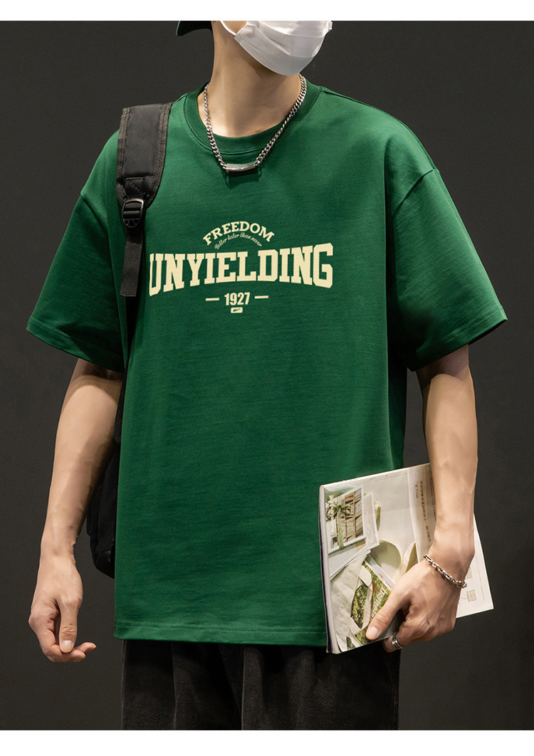 T恤男宽松纯棉五分袖盐系男友风潮流半袖简约短袖男舒适运动上衣 412819