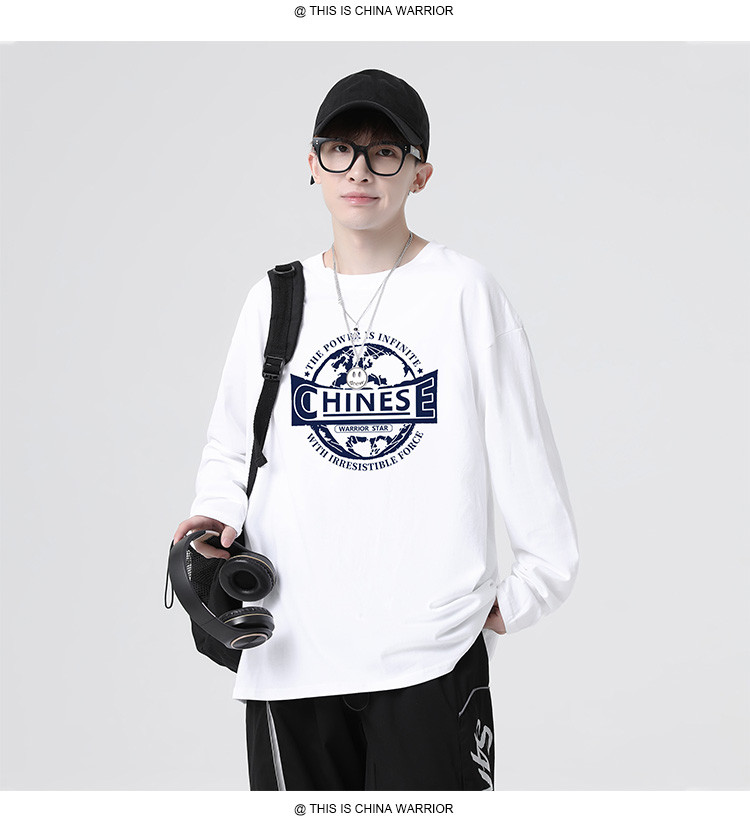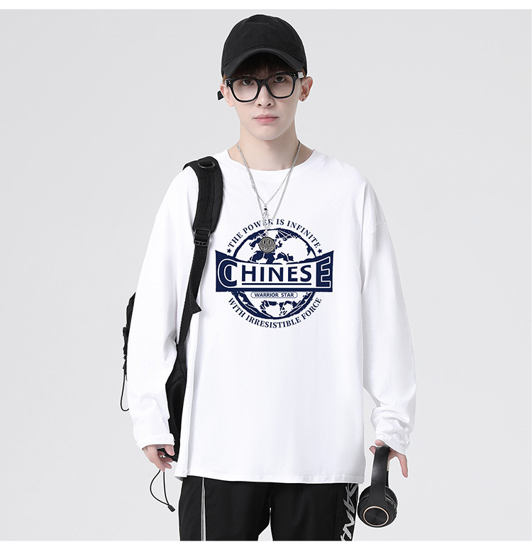 商品名称:【潮流T恤】春季男式T恤个性潮流印花宽松圆领纯棉长袖T恤男 737939