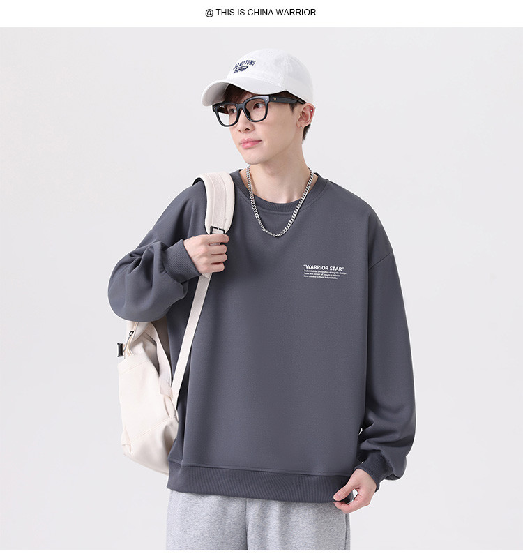 【加绒可选】卫衣男春秋款阔版长袖宽松针织套头运动休闲上衣男装 422931