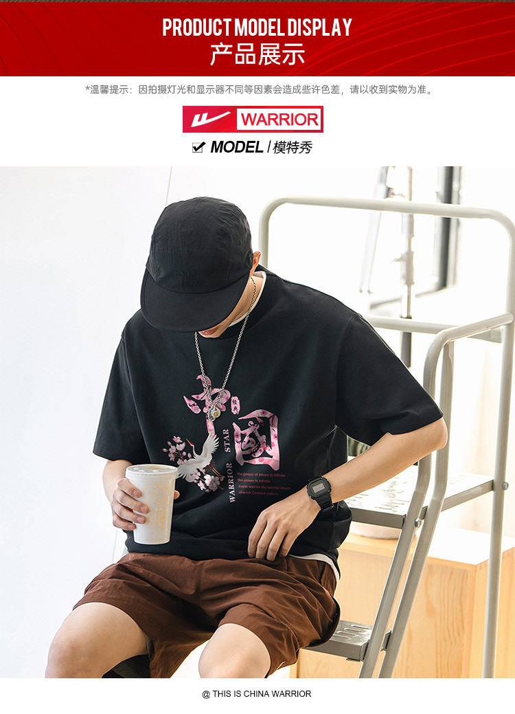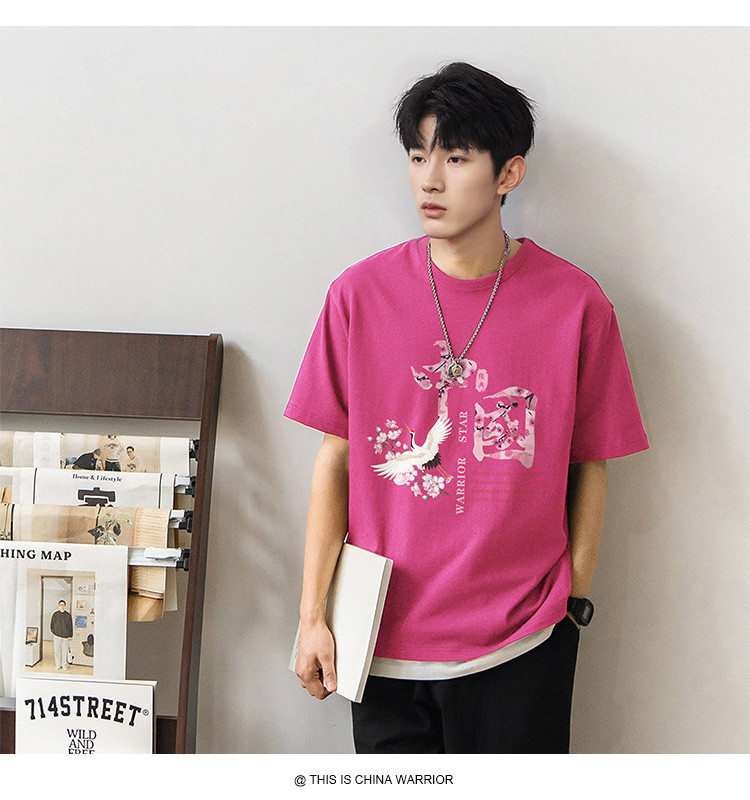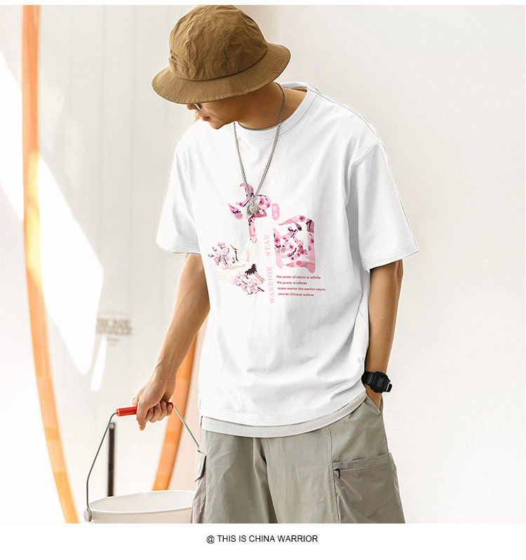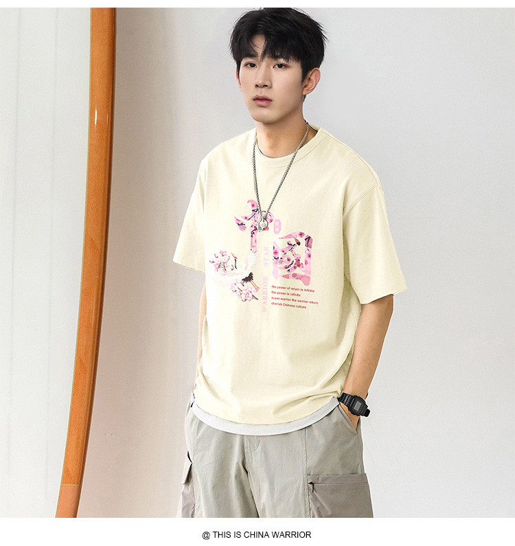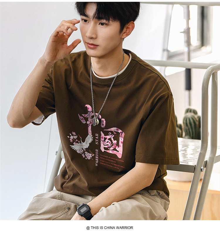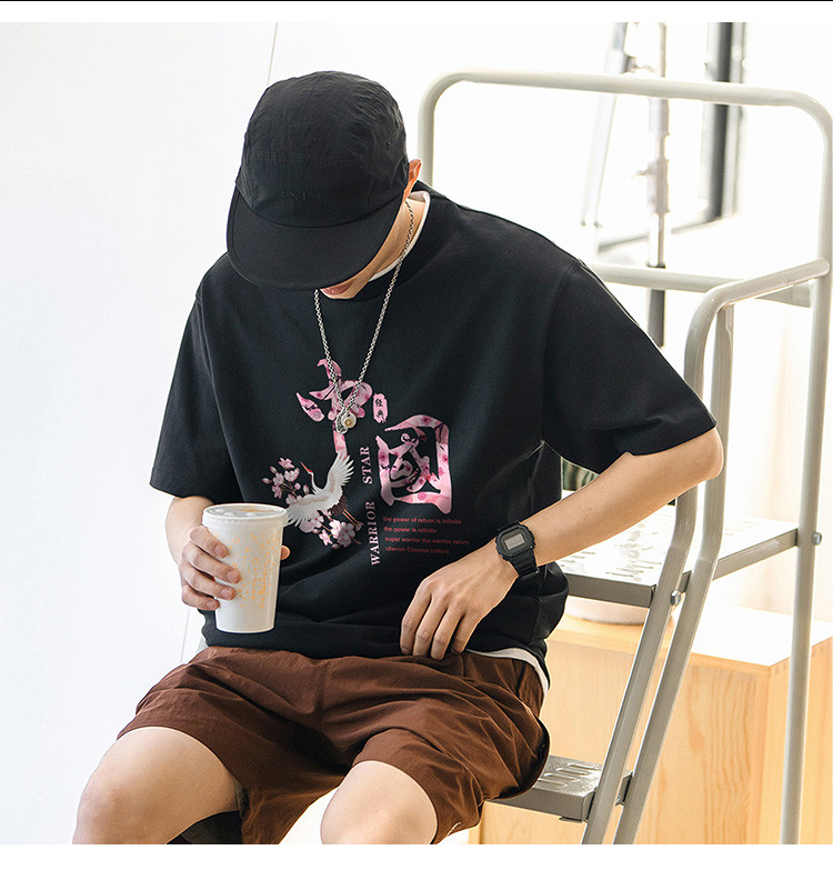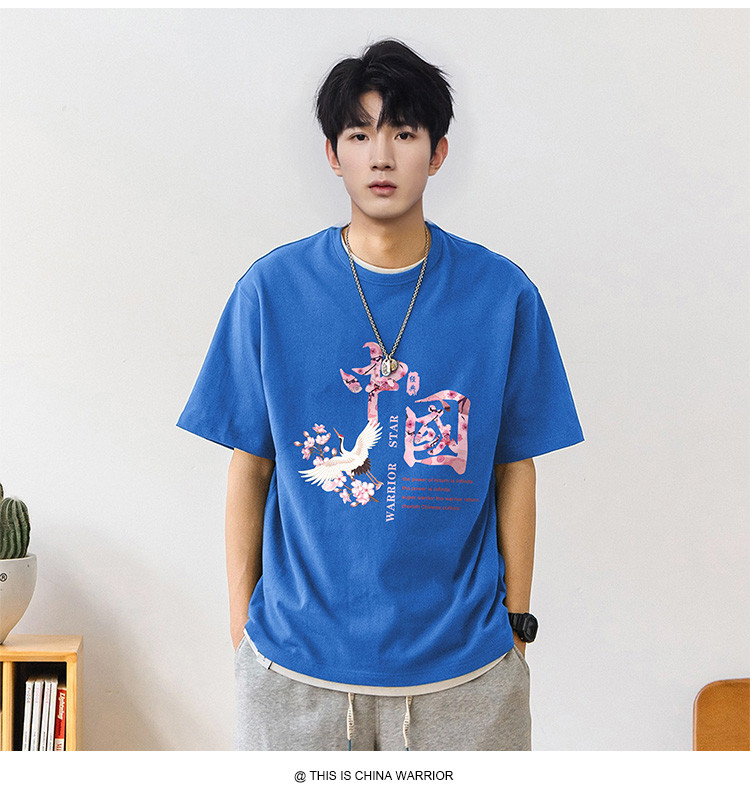 商品名称:【国潮】夏季纯棉短袖t恤男式中国风水墨印花上衣青少年情侣T恤 027987