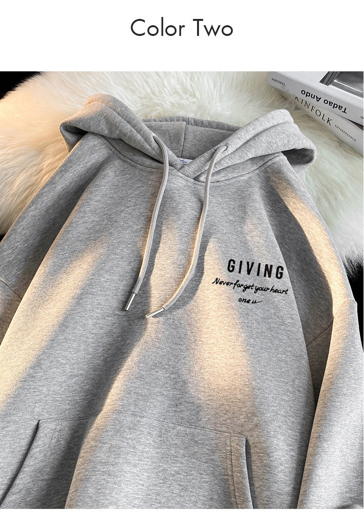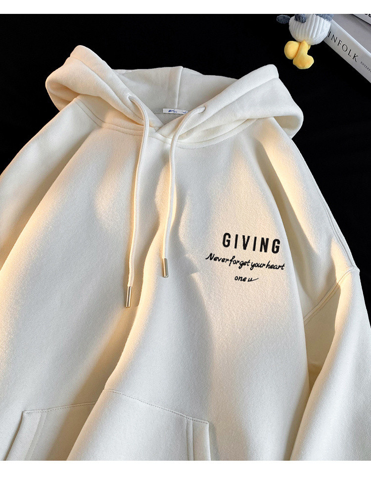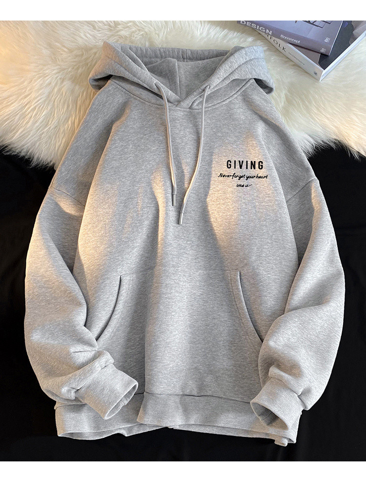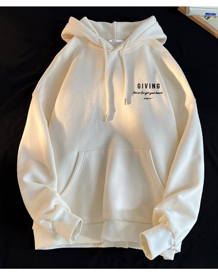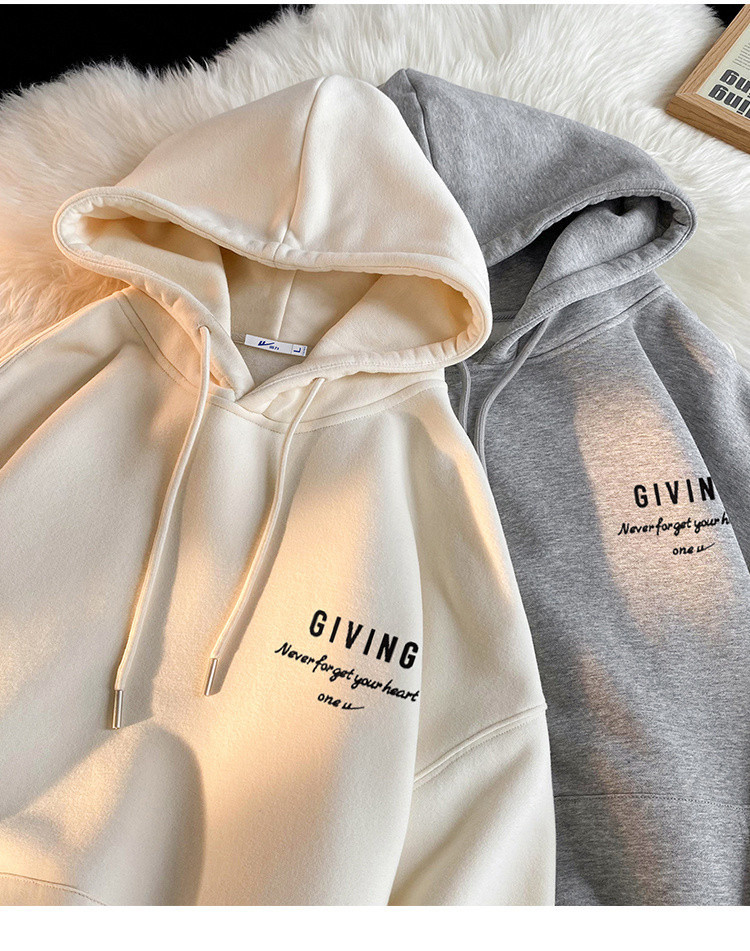 【加绒可选】美式慵懒套头连帽卫衣男女宽松情侣帽衫字母外套 552403