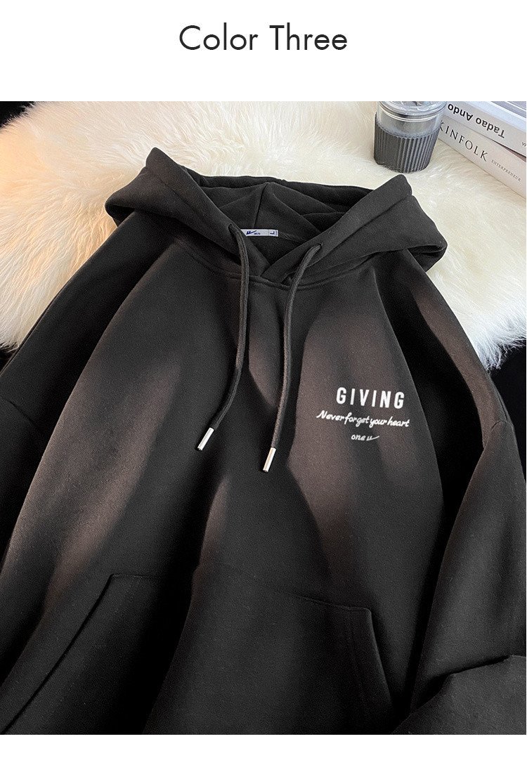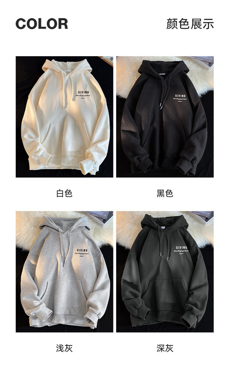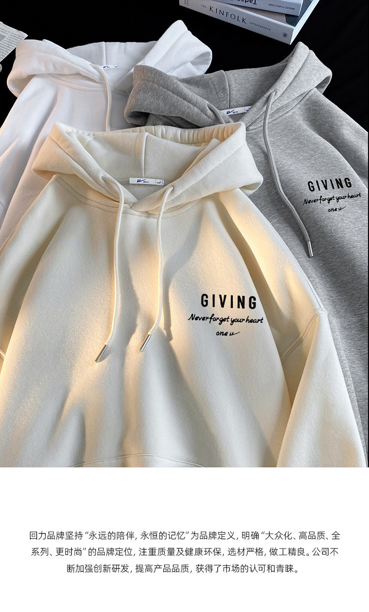 商品名称:【加绒可选】美式慵懒套头连帽卫衣男女宽松情侣帽衫字母外套 552403