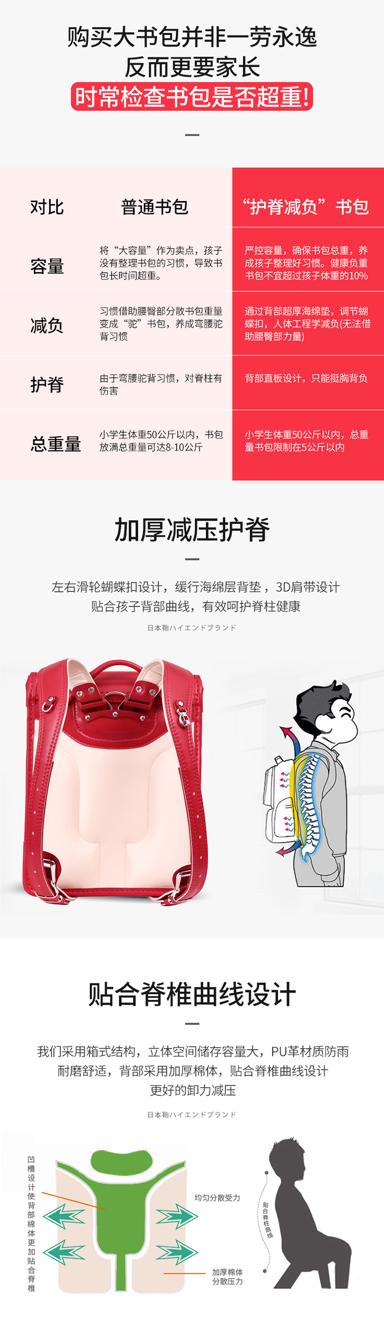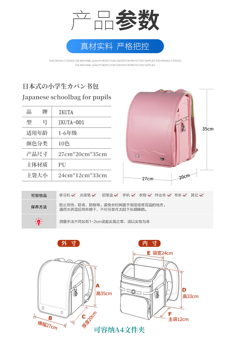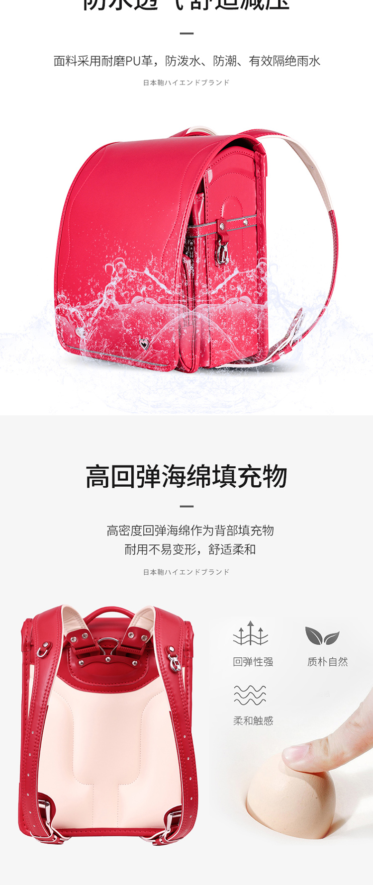 商品名称:日本书包儿童小学生书包女童男童一二三到六年级防水护脊双肩背包