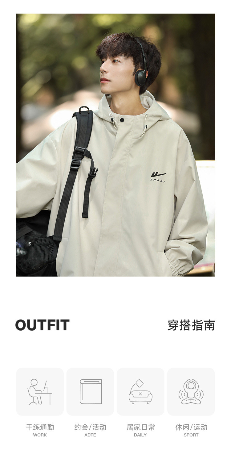 商品名称:山系连帽外套男女款痞帅户外运动风衣宽松潮牌工装夹克 322899