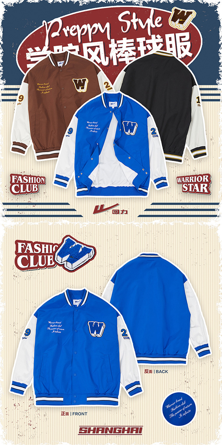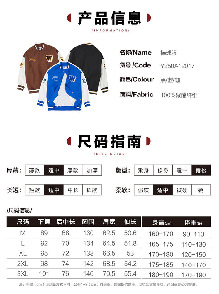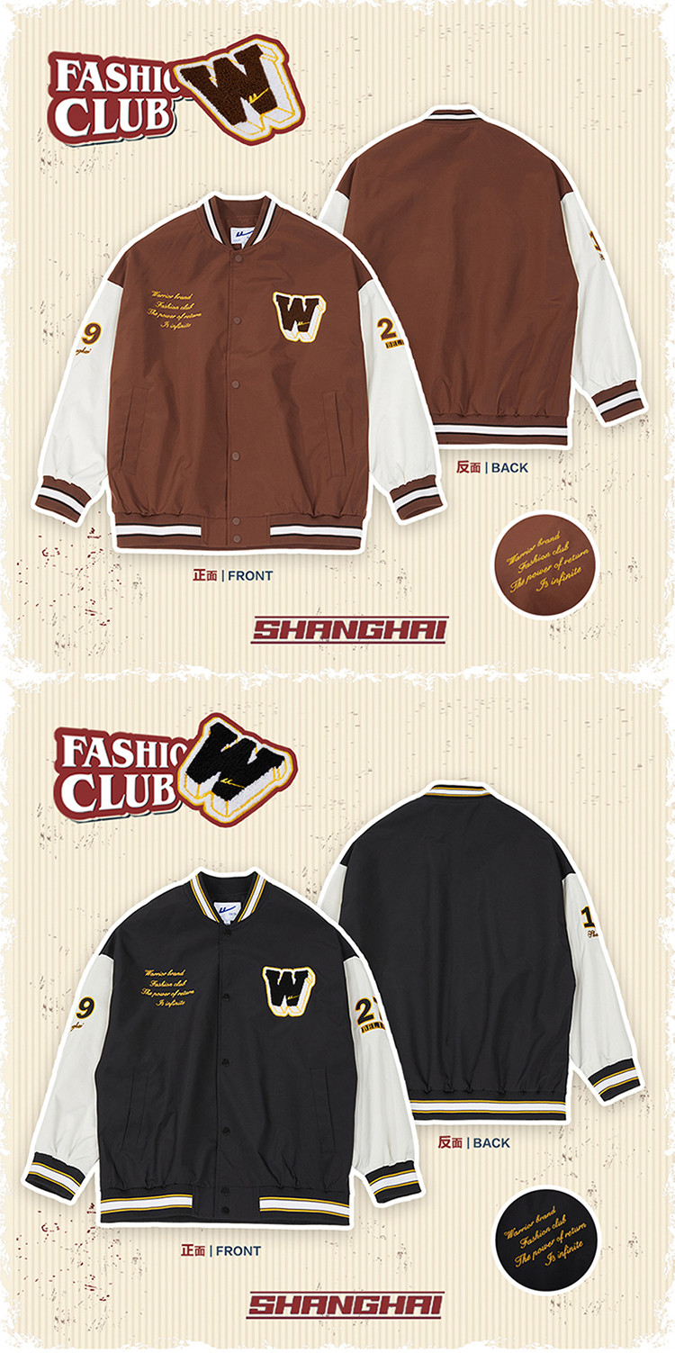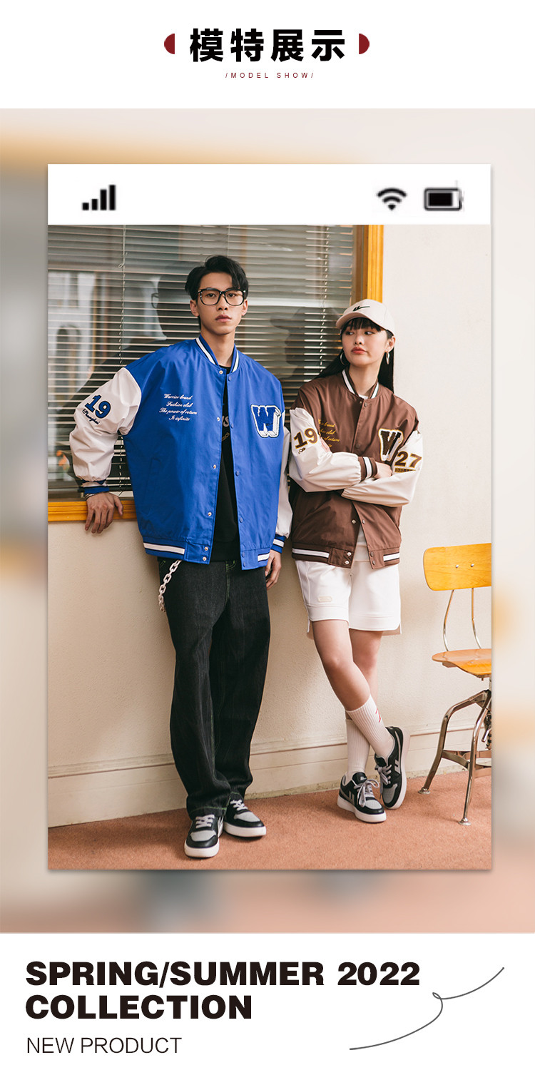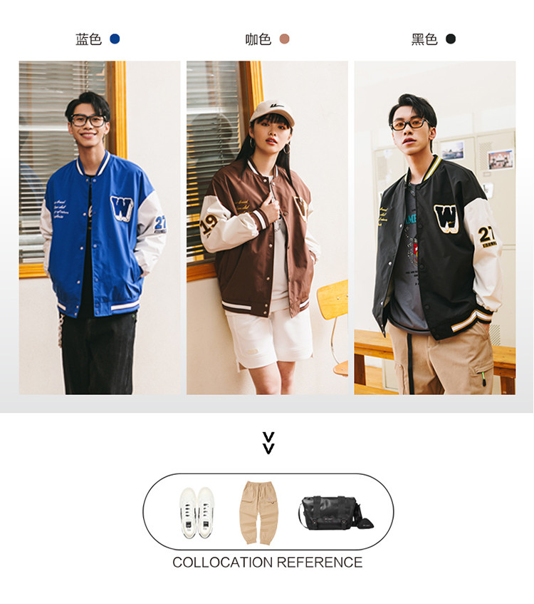 商品名称:【男女同款】春季宽松舒适学院风棒球服运动外套夹克 969107