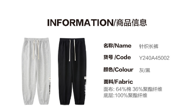 商品名称:春季简约时尚柔软透气抽绳设计男式运动裤休闲裤 774483