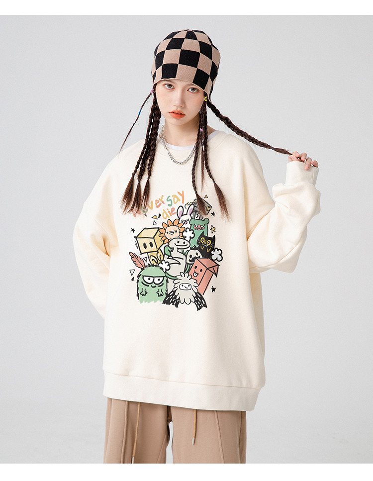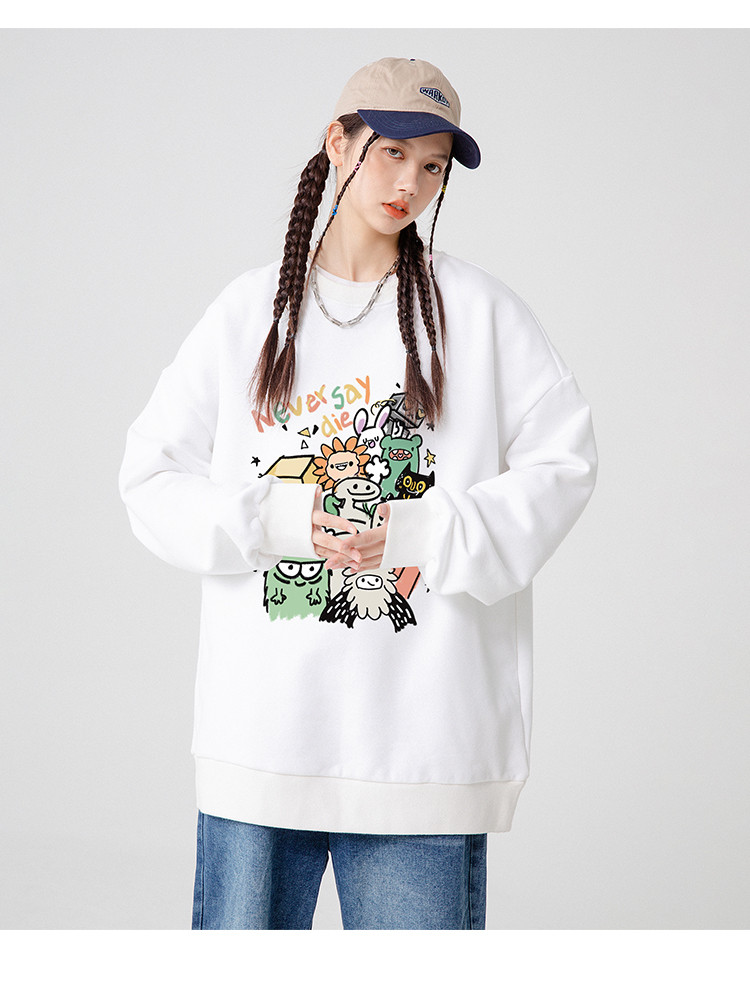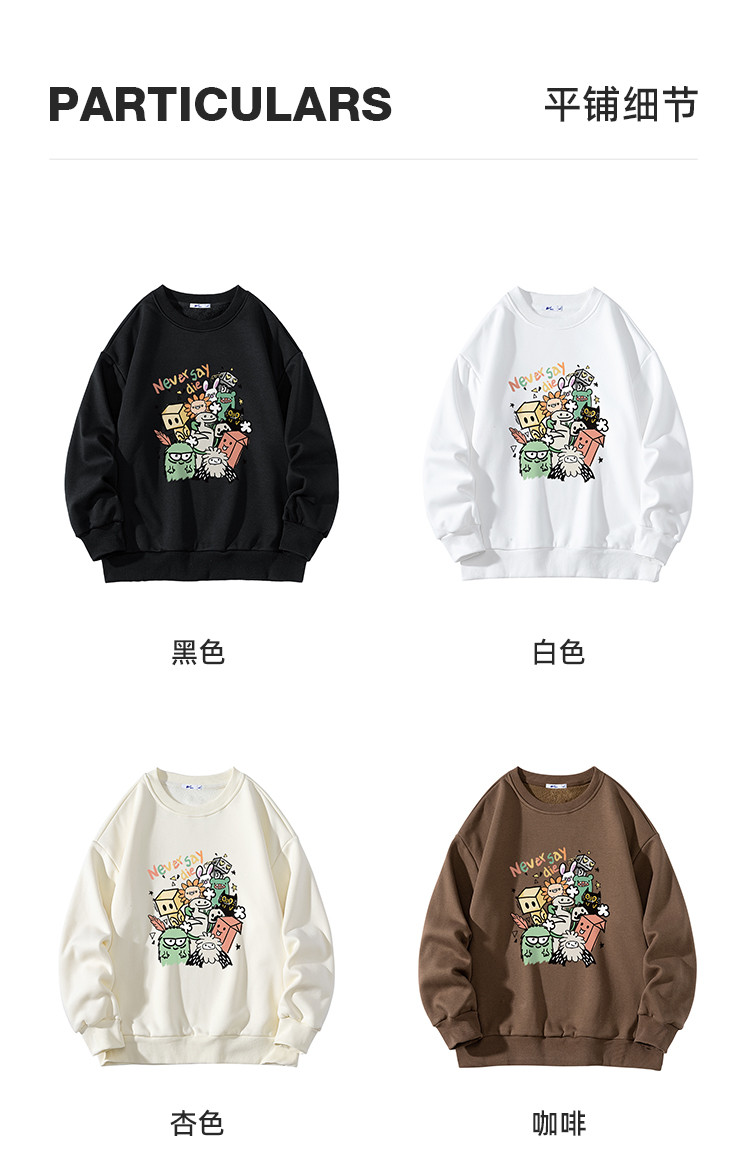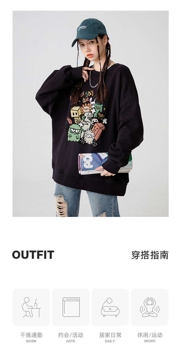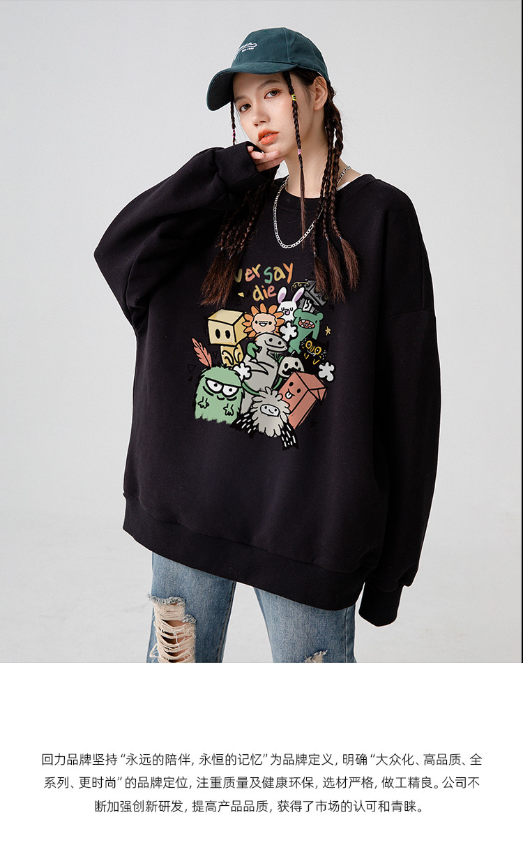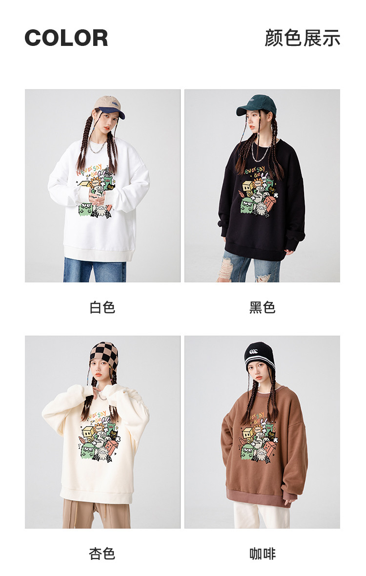 商品名称:慵懒风圆领卫衣男女外套春宽松百搭无帽长袖情侣套头上衣女 521491