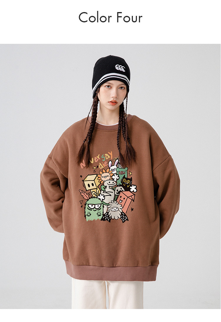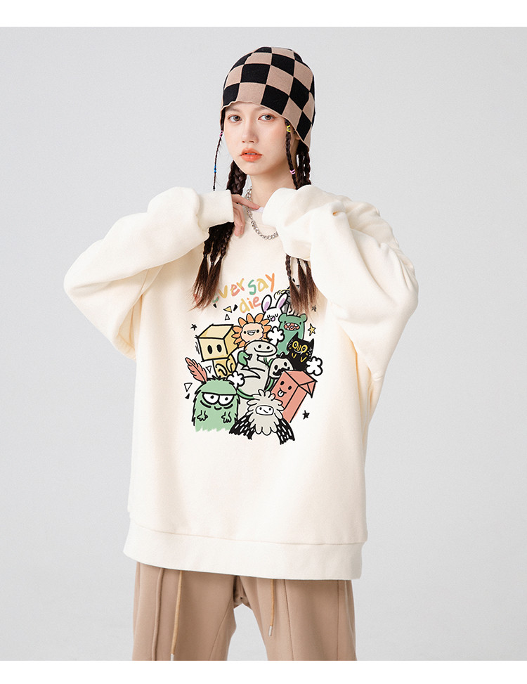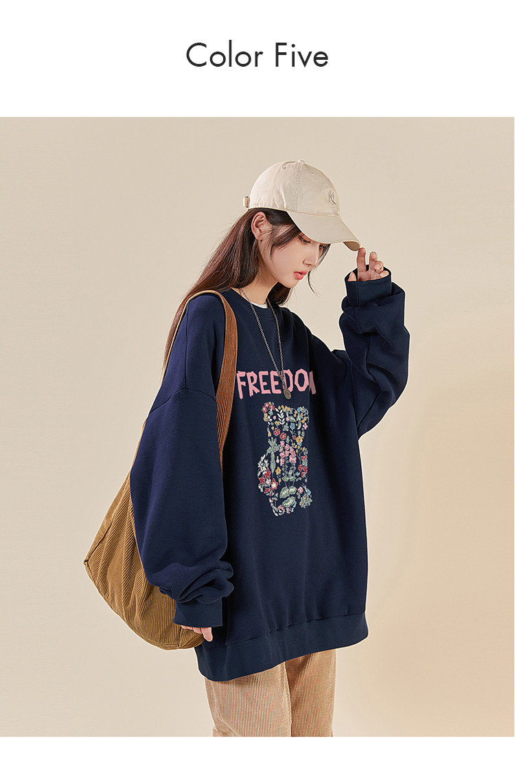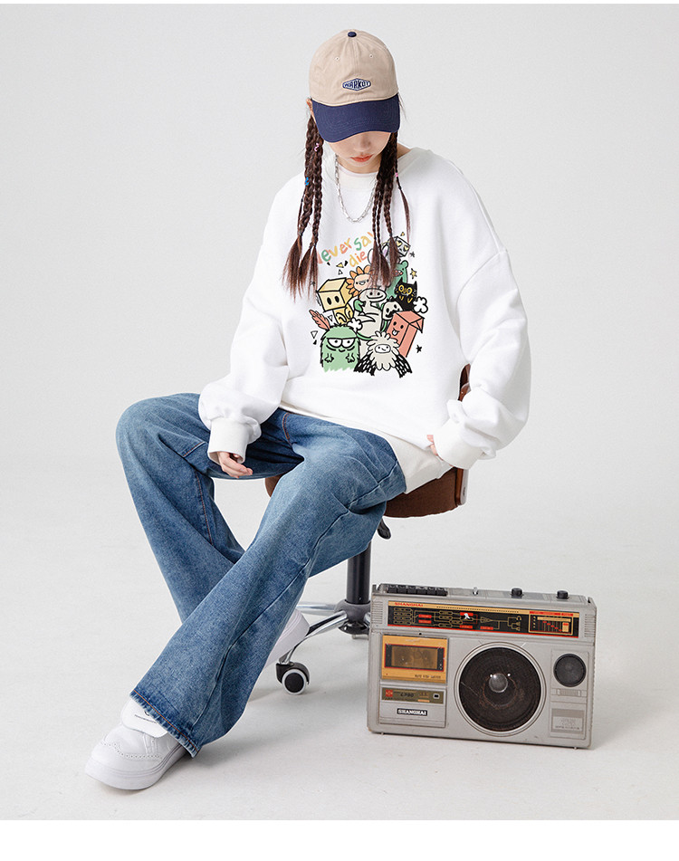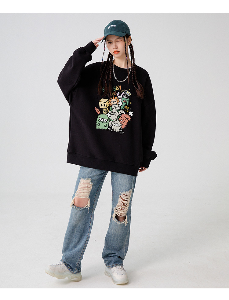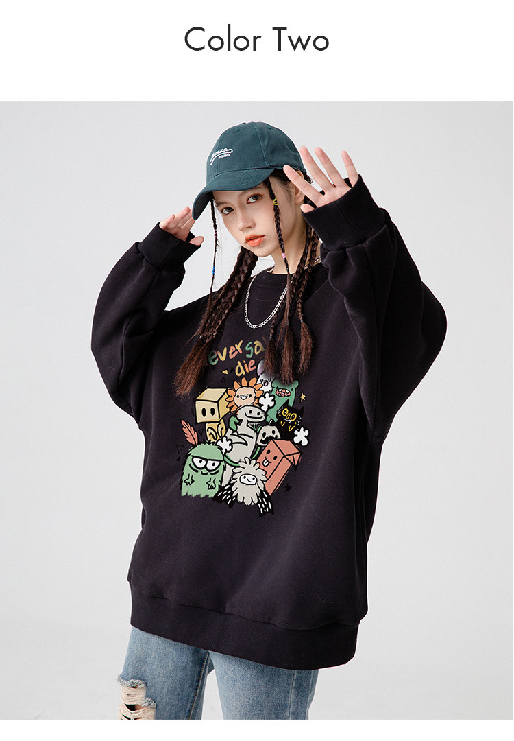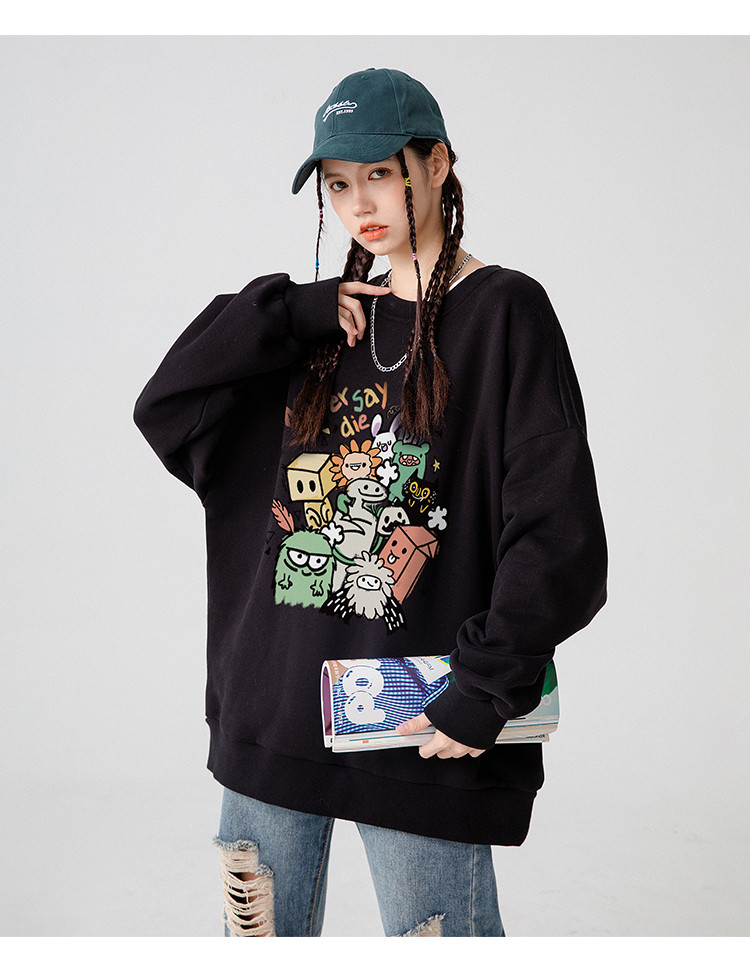 商品名称:慵懒风圆领卫衣男女外套春宽松百搭无帽长袖情侣套头上衣女 521491