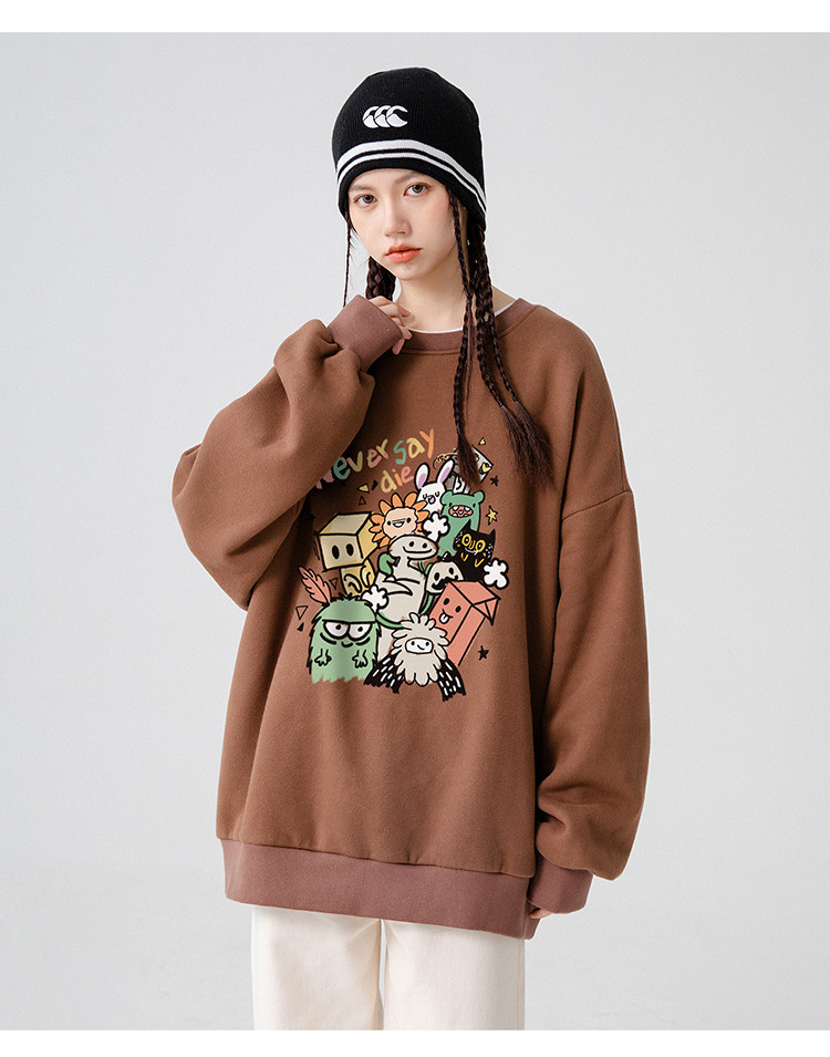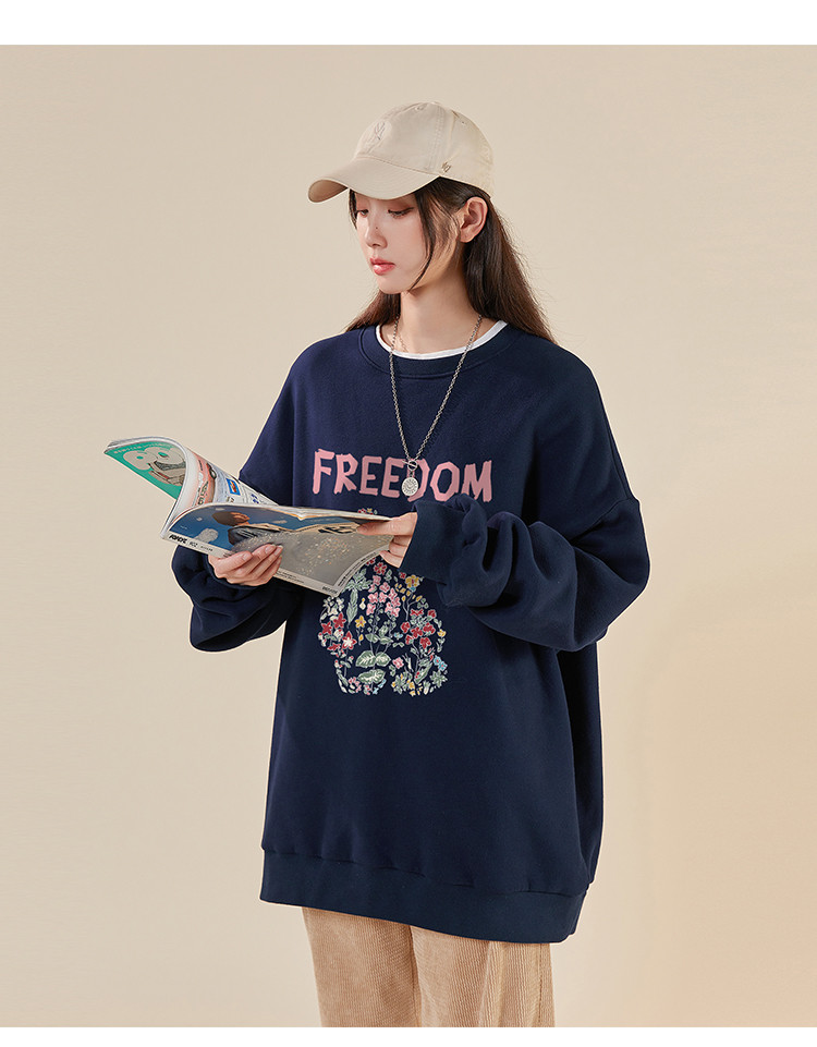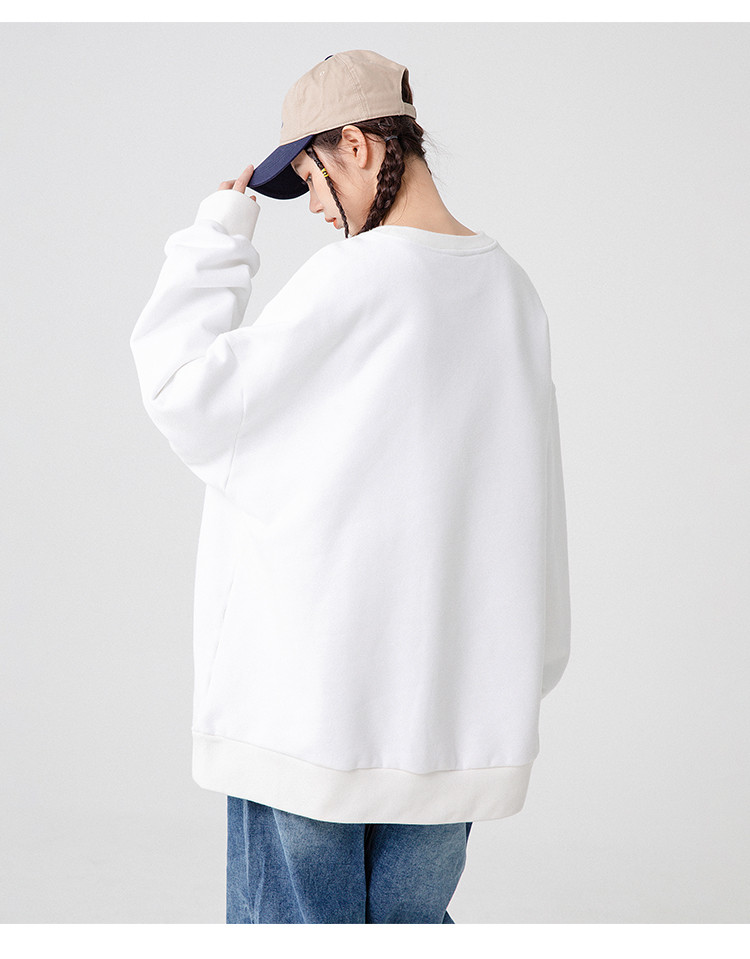 慵懒风圆领卫衣男女外套春宽松百搭无帽长袖情侣套头上衣女 521491
