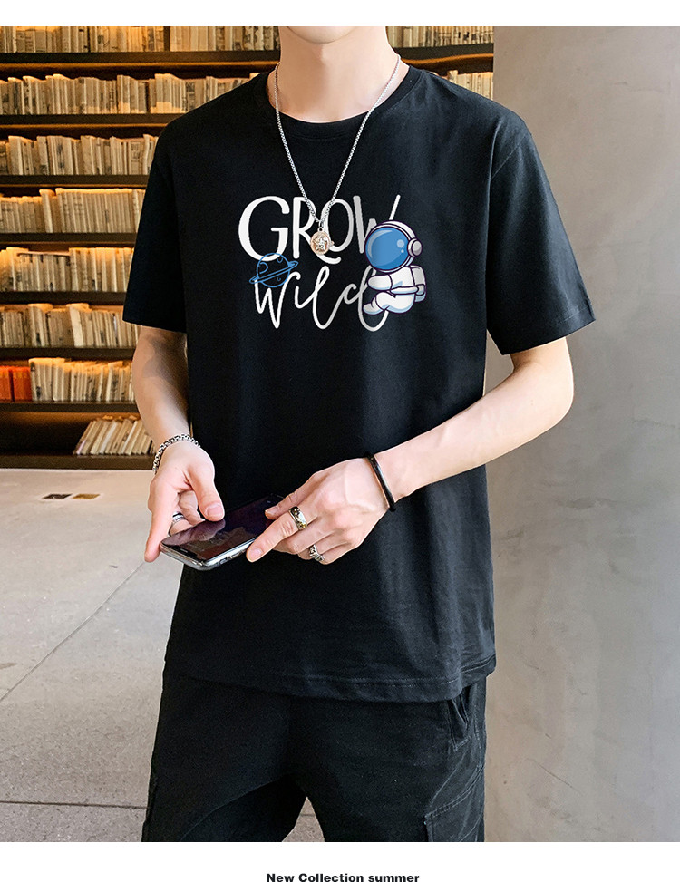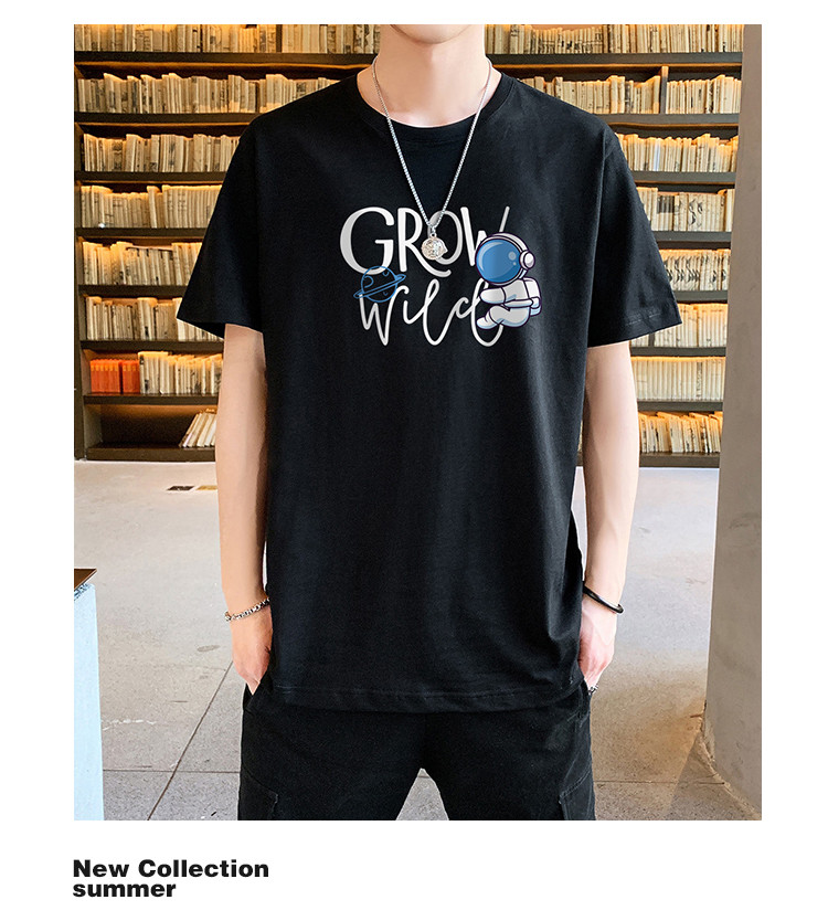 【纯棉短袖】夏季港风复古卡通T恤男ins宽松休闲男式五分袖潮 126163