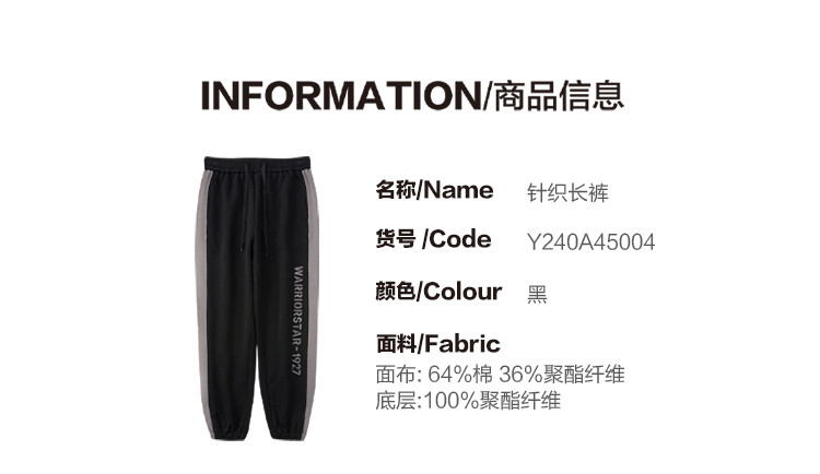 商品名称:【热卖推荐】春季宽松舒适柔软透气男式运动裤针织裤 894867