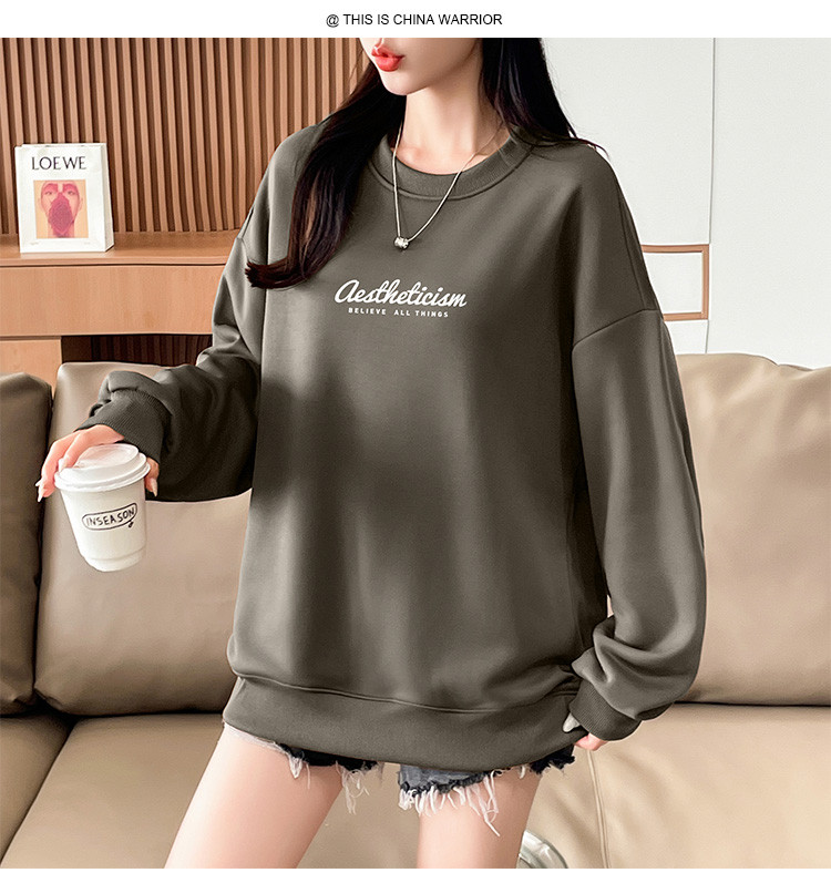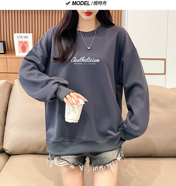 商品名称:【加绒可选】减龄印花学院风卫衣女春秋长袖上衣宽松女士卫衣显瘦 608659
