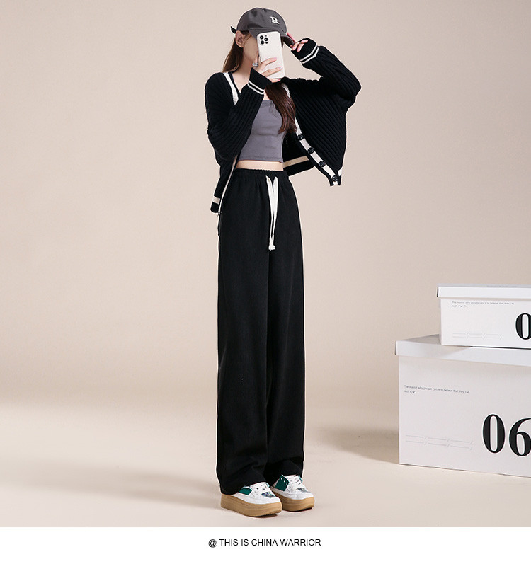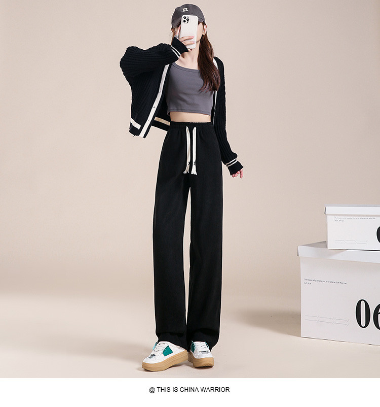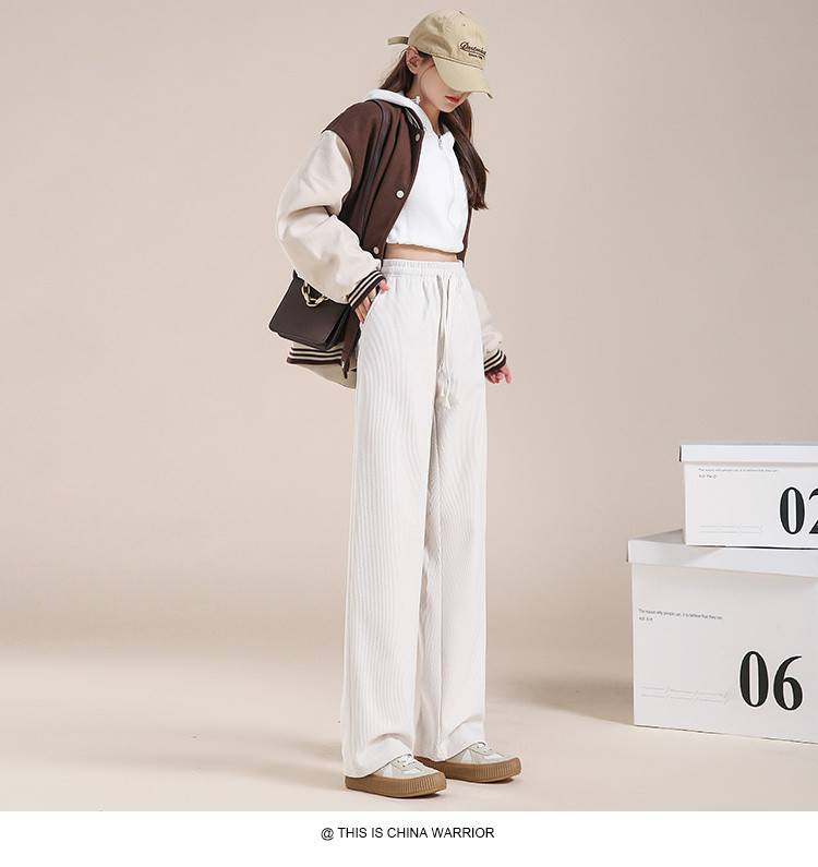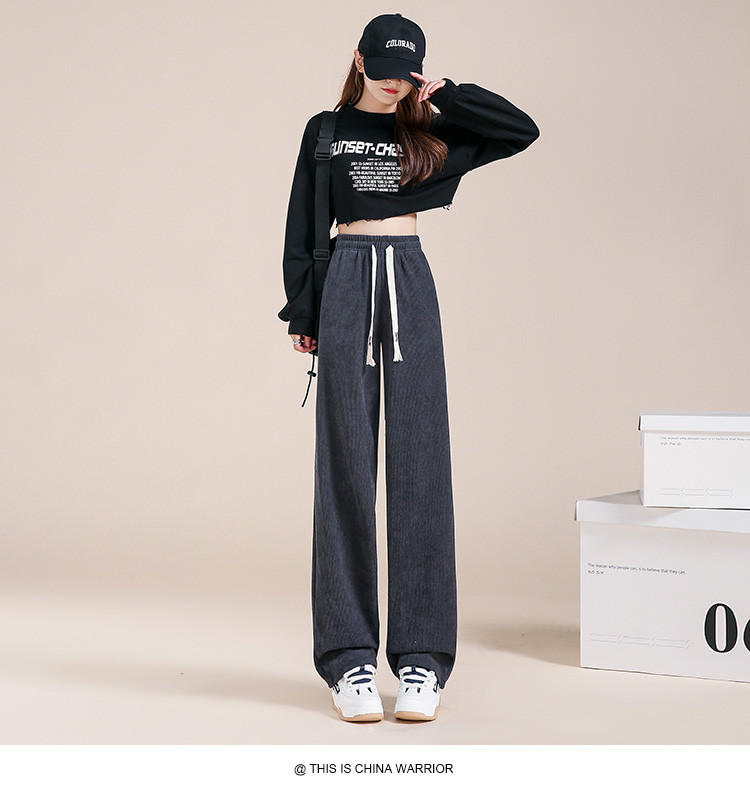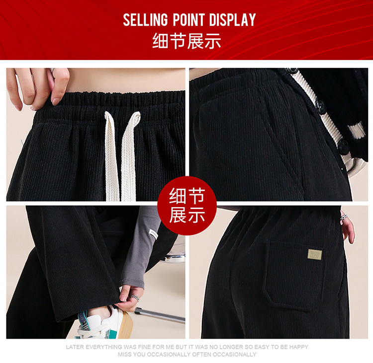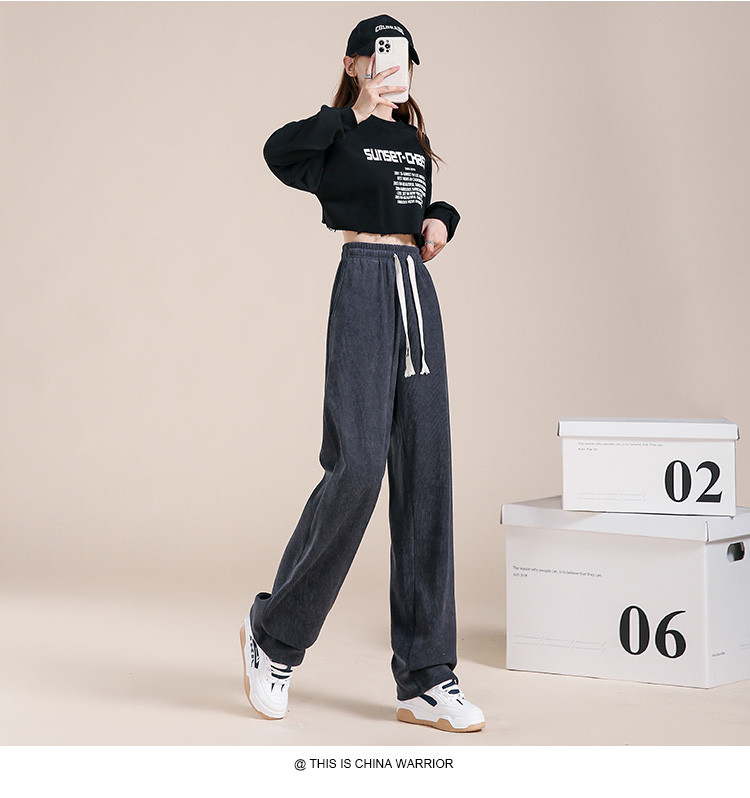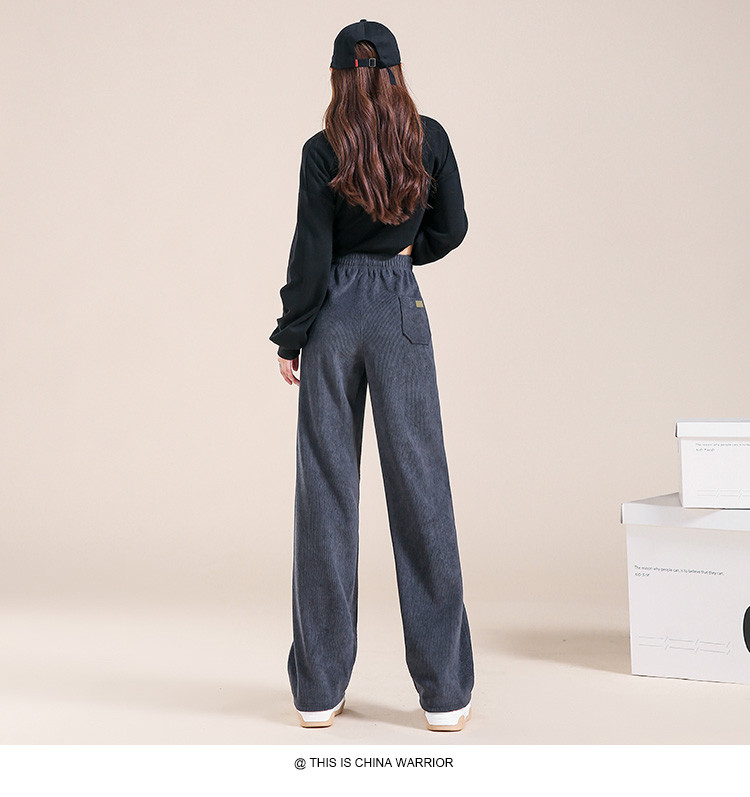 商品名称:春季纯色百搭女式时尚灯芯绒直筒休闲长裤高腰显瘦休闲裤女 506899