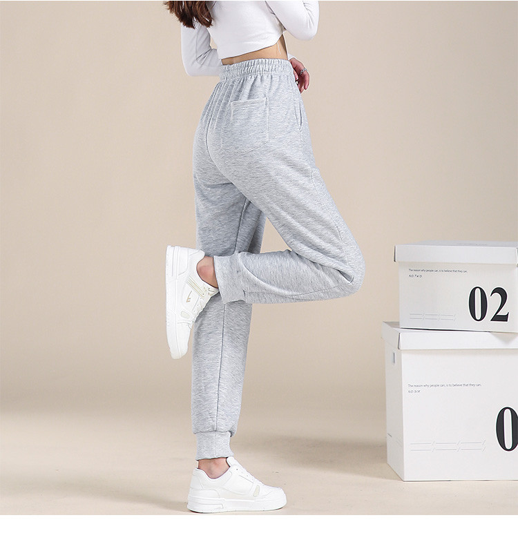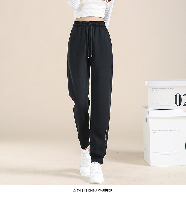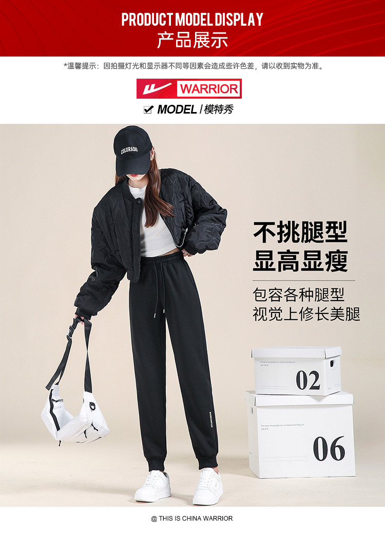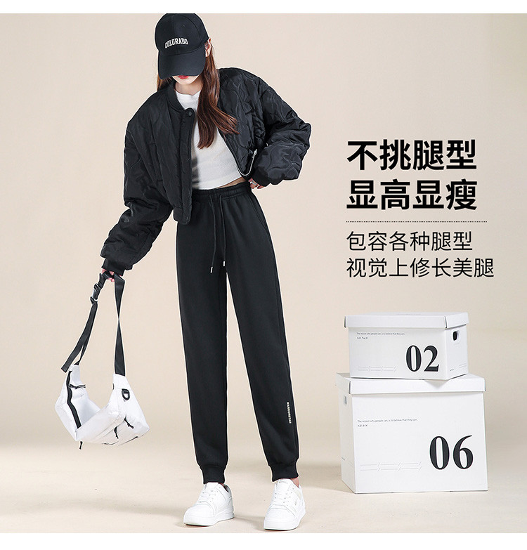 商品名称:裤子女春季潮牌宽松螺纹束脚运动裤潮流韩系高腰显高显瘦长裤 408531