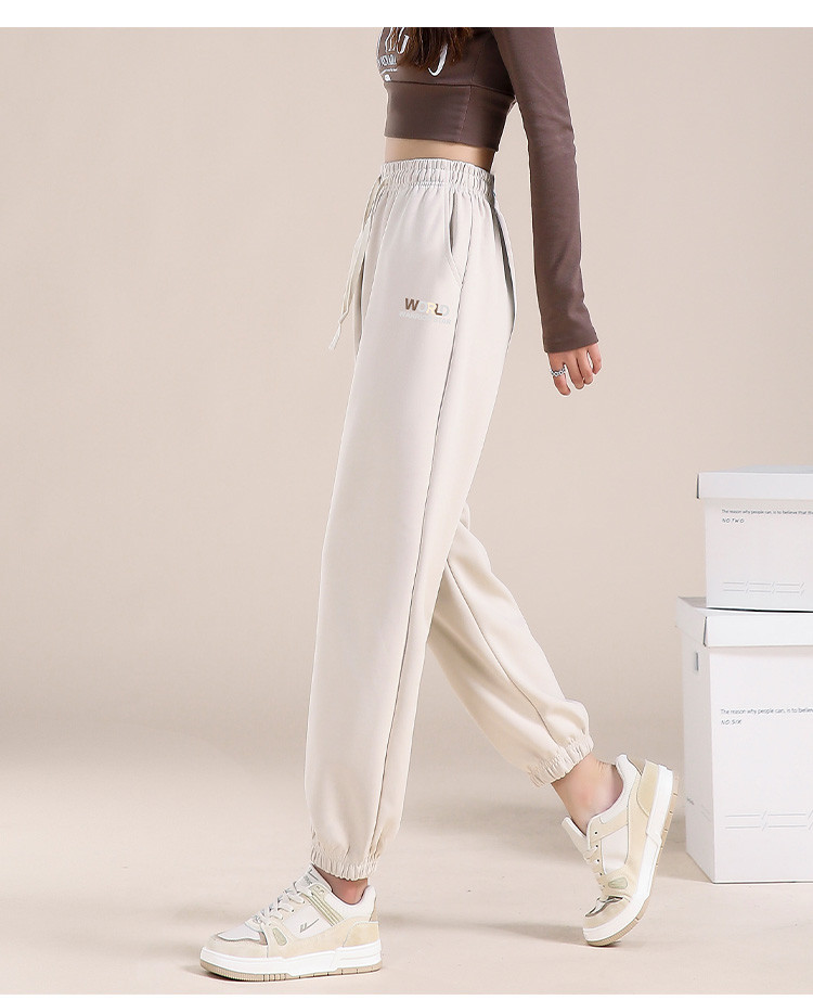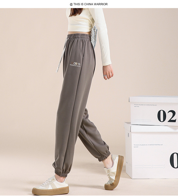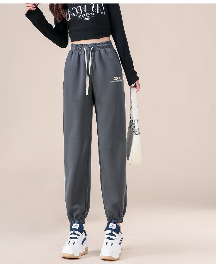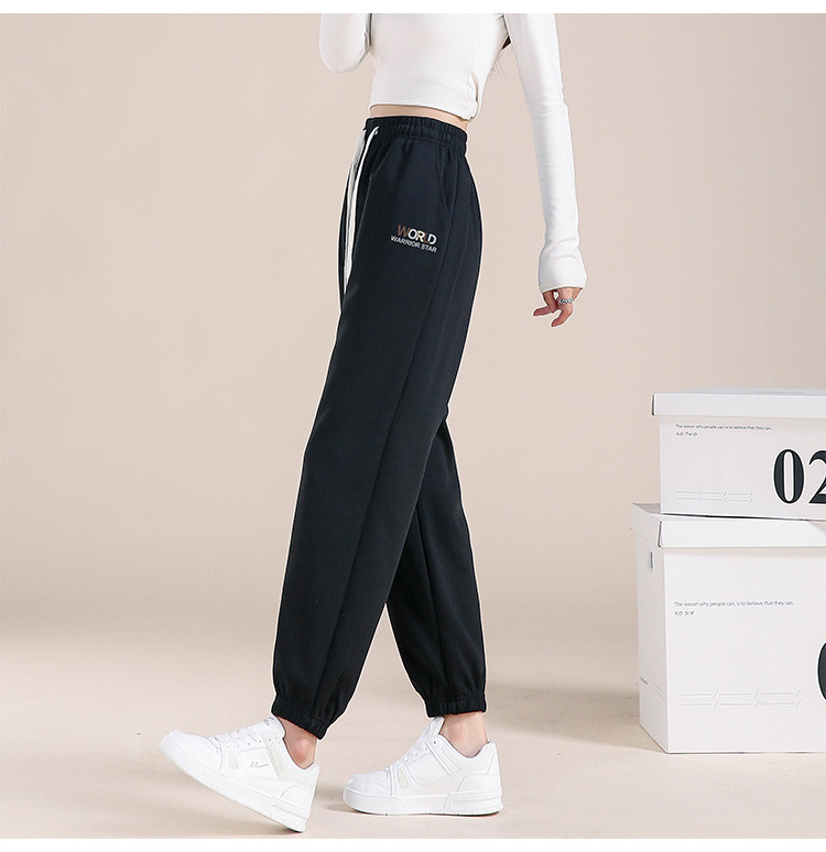 商品名称:【松紧腰宽松休闲裤】春装长裤女士时尚字母图案遮肉简约束脚裤 788499