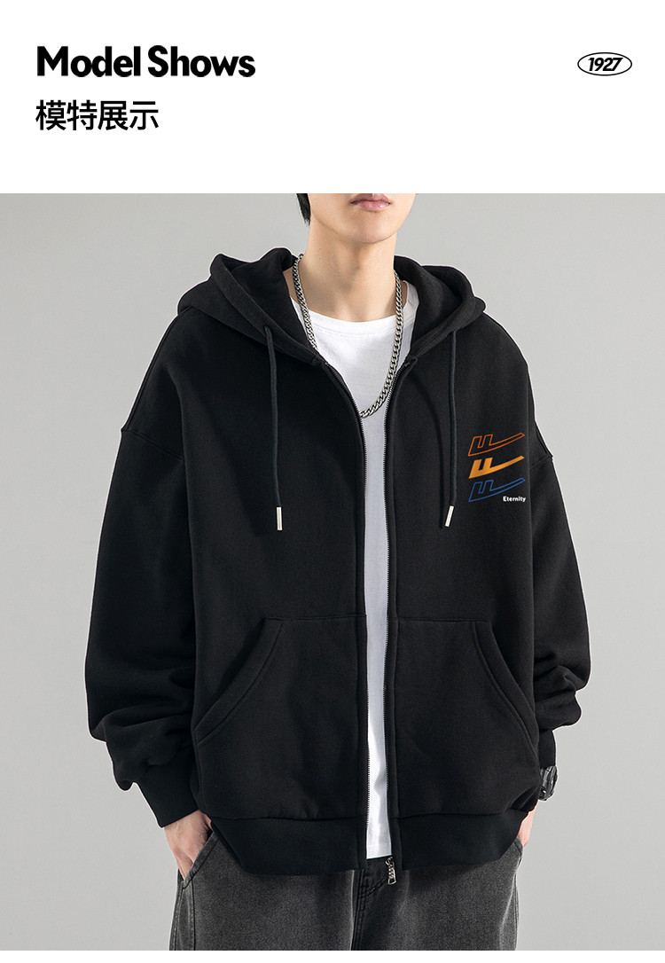 商品名称:【加绒可选】男士外套开衫卫衣宽松连帽外套男女同款外套潮 118227