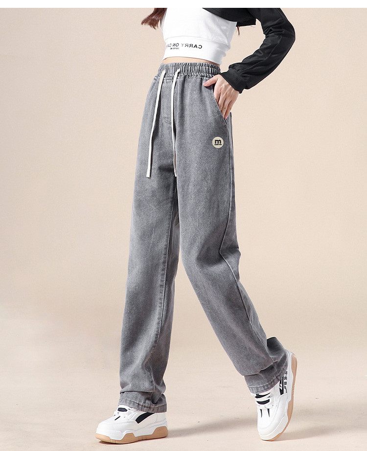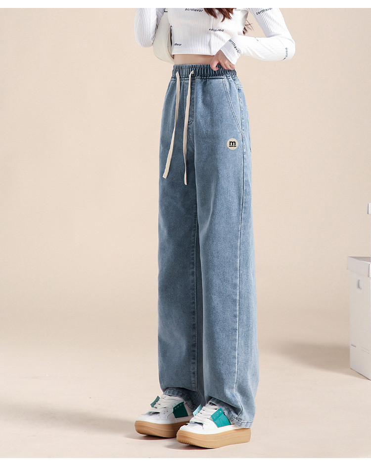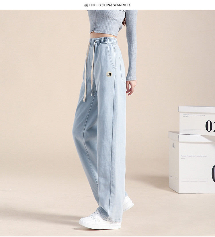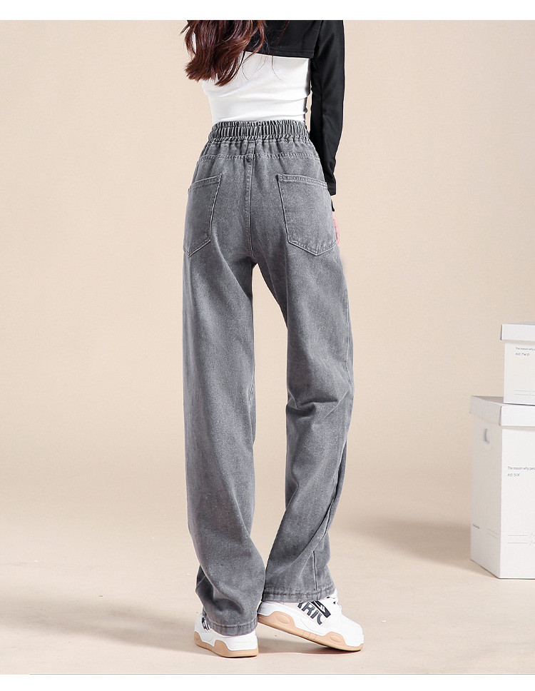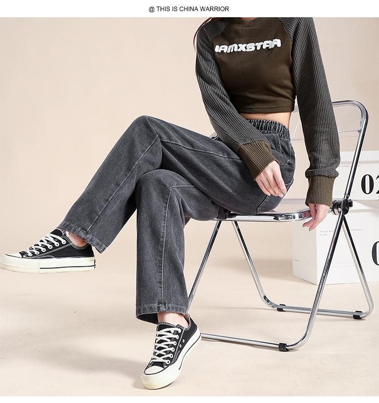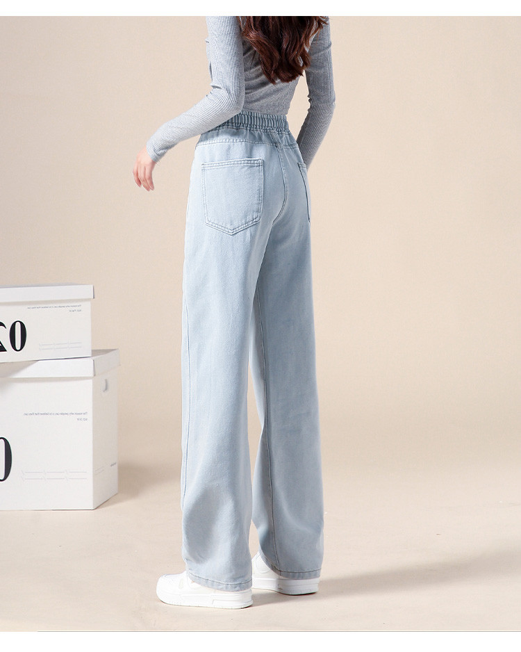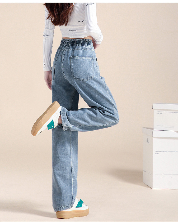 【简约百搭】春秋季宽松直筒牛仔裤女显瘦高腰泫雅风阔腿裤子女 566867