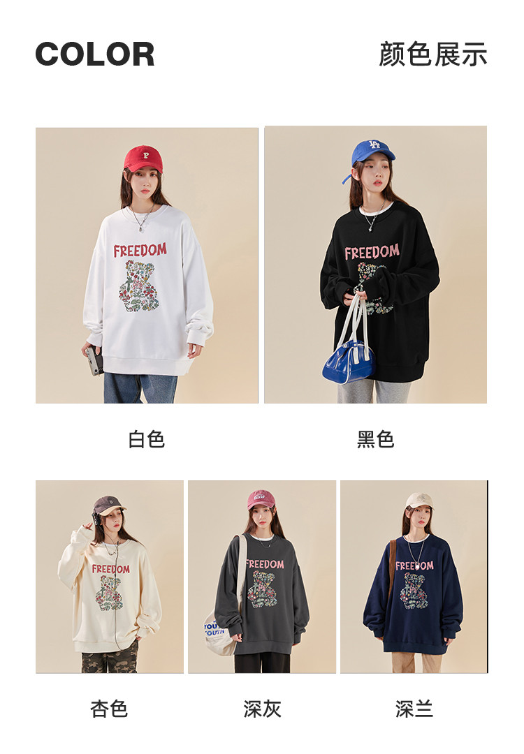 商品名称:圆领卫衣男女同款运动美式套头圆领宽松显瘦春秋季情侣长袖 787155