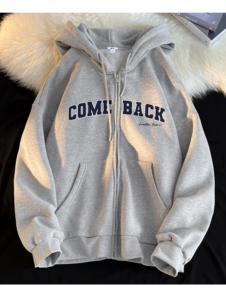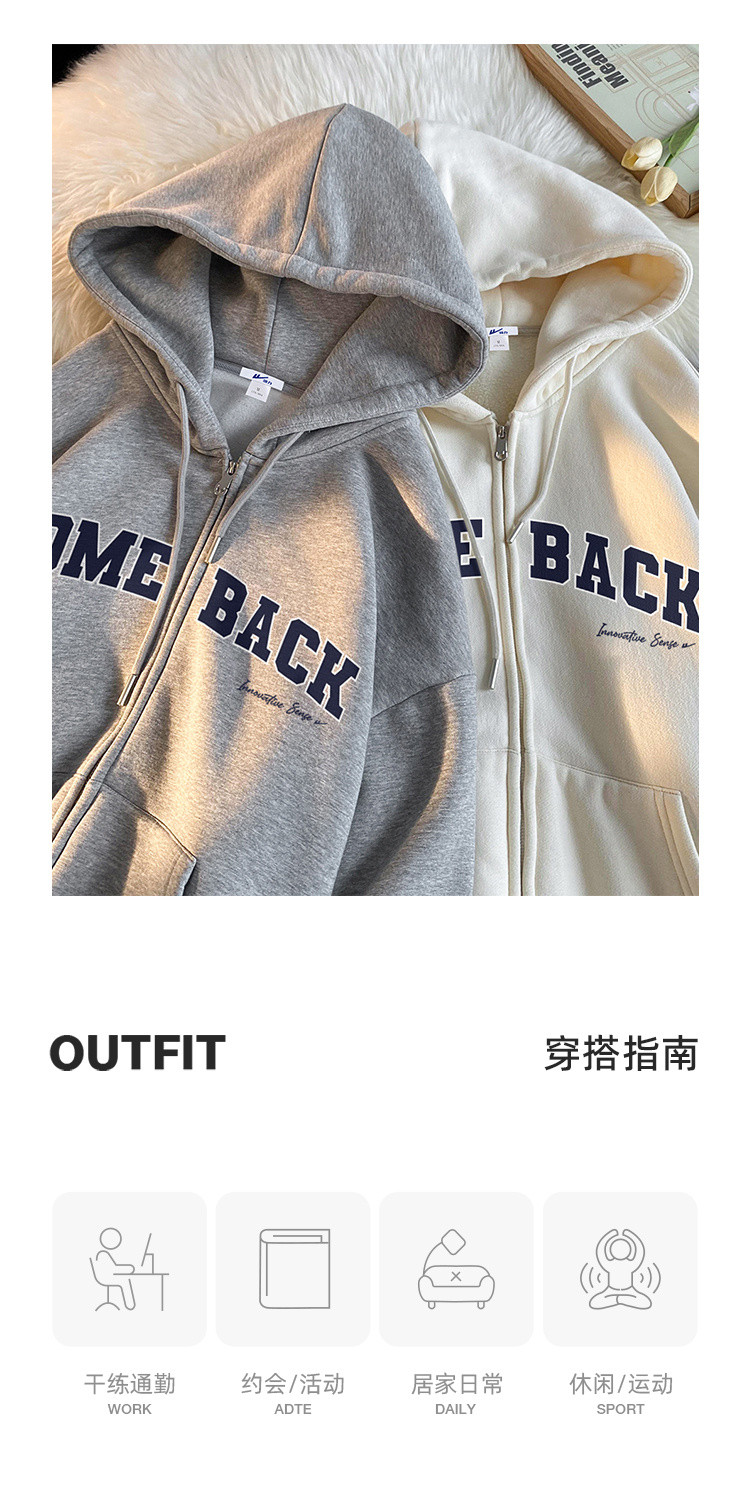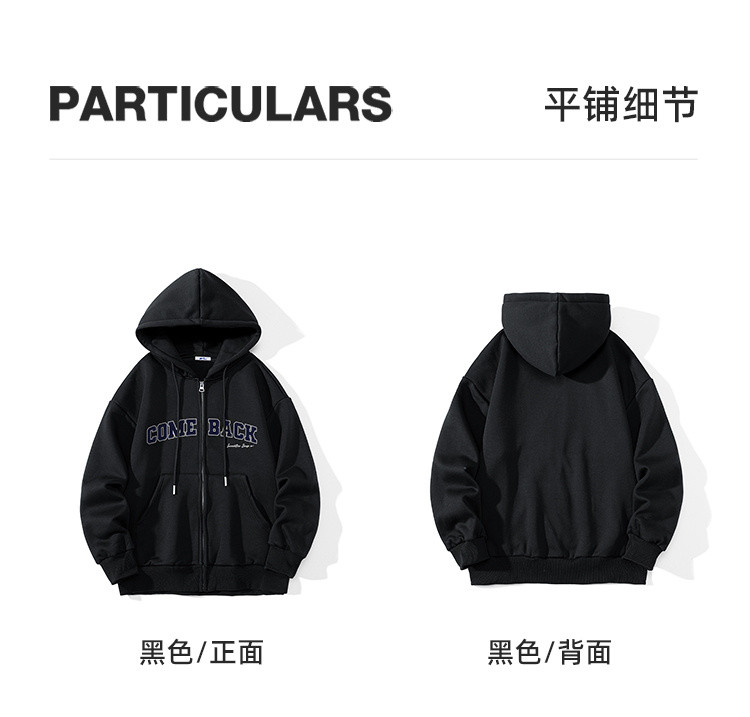 商品名称:【加绒可选】拉链卫衣外套男女款美式宽松运动休闲情侣连帽开衫 914003