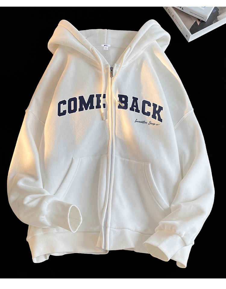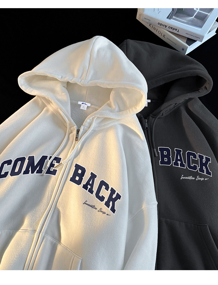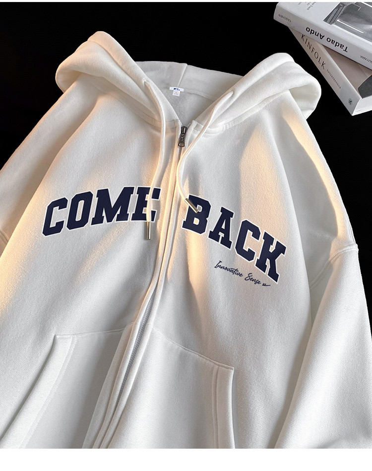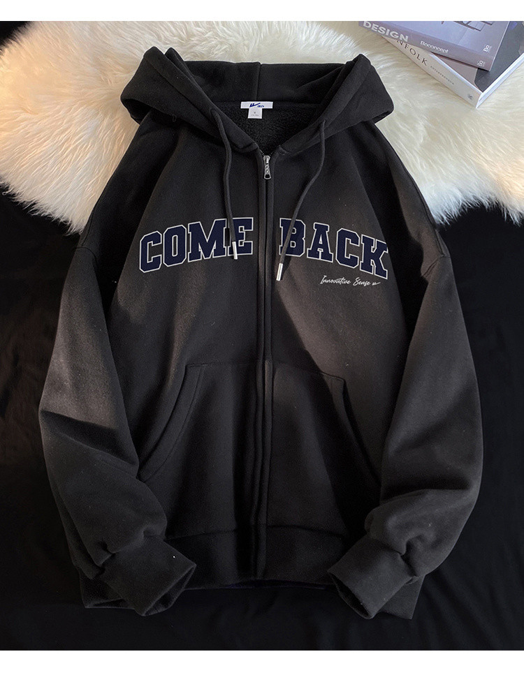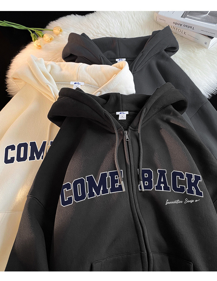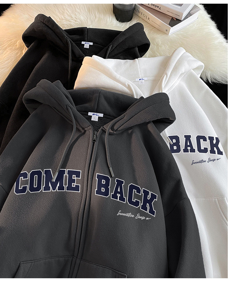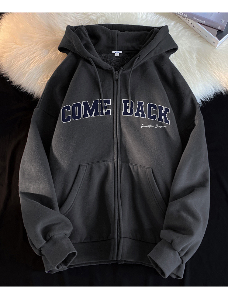 【加绒可选】拉链卫衣外套男女款美式宽松运动休闲情侣连帽开衫 914003