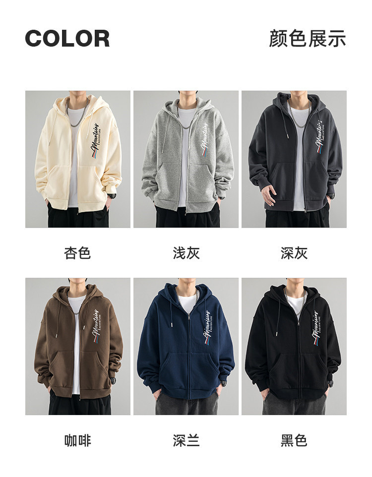 商品名称:【加绒可选】美式潮牌外套男士运动连帽开衫卫衣男生上衣服 865875