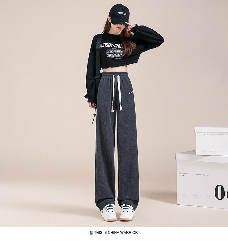 女士春季时尚阔腿裤百搭休闲垂感灯芯绒直筒休闲裤 678291