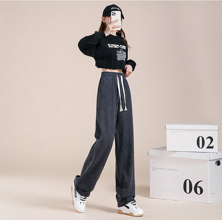 商品名称:女士春季时尚阔腿裤百搭休闲垂感灯芯绒直筒休闲裤 678291