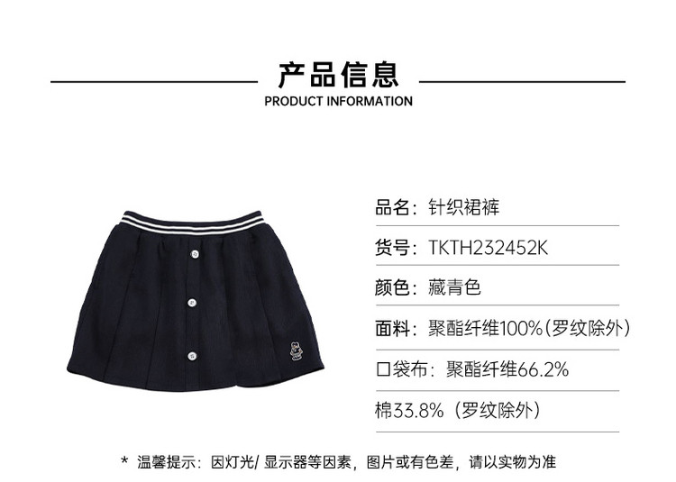 商品名称:小熊童装女童夏季运动度假休闲风裙裤 079361