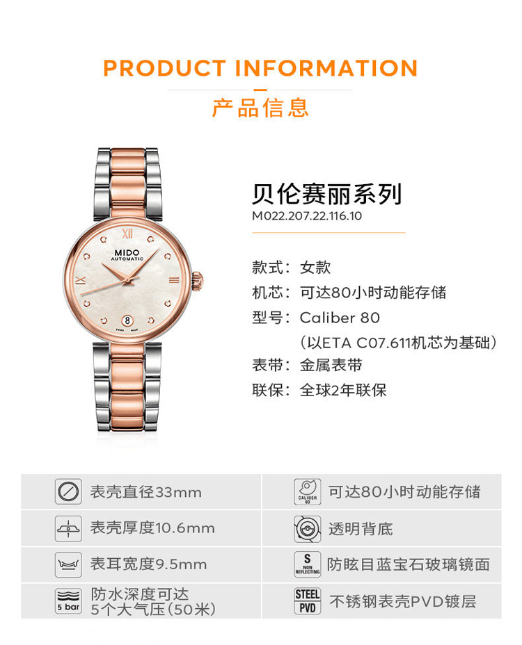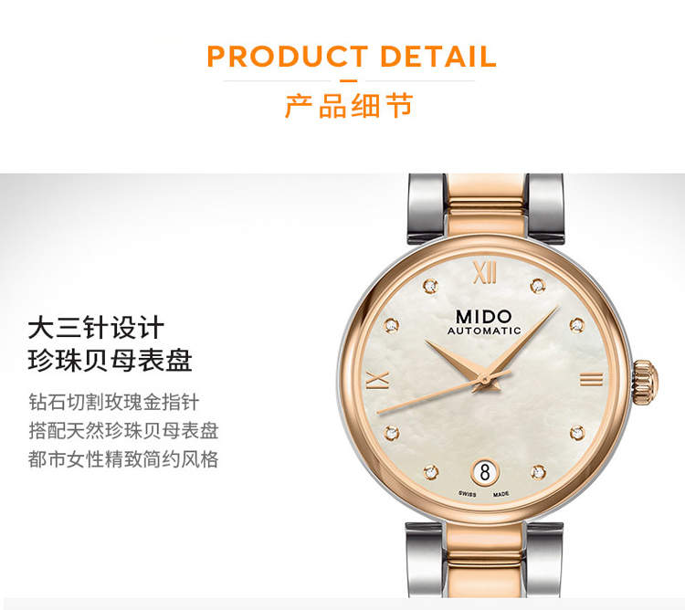 商品名称:MIDO美度 贝伦赛丽系列自动机械休闲女表 (不支持无理由退换货)