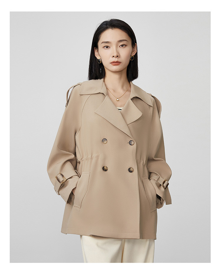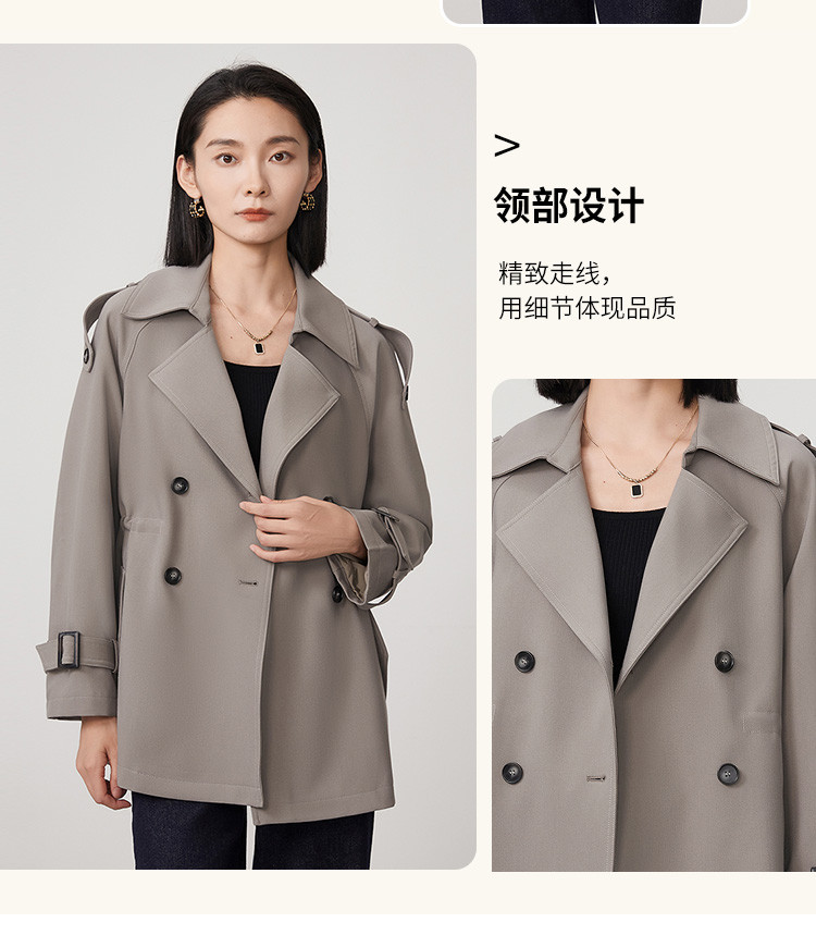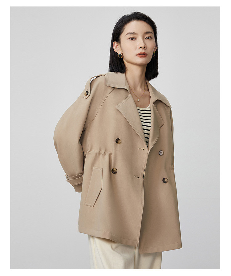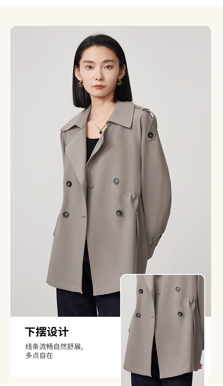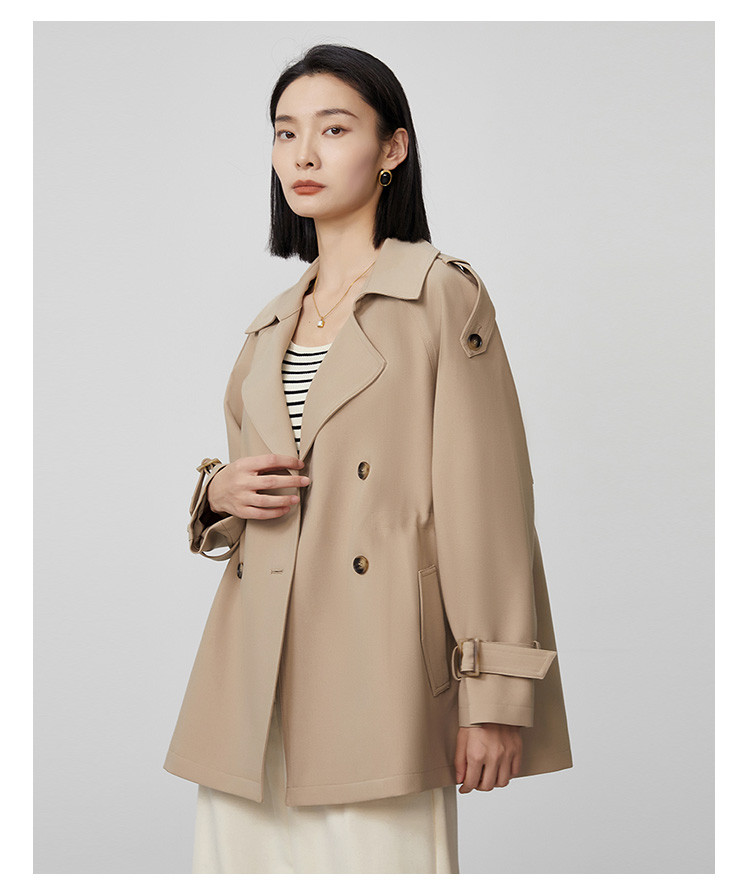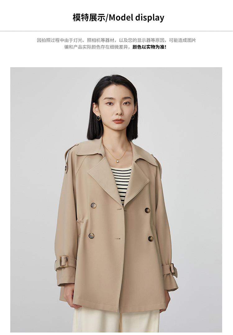商品名称:春秋新款小个子时尚风衣女式内抽绳气质显瘦短款休闲外套 344735