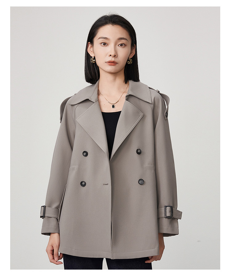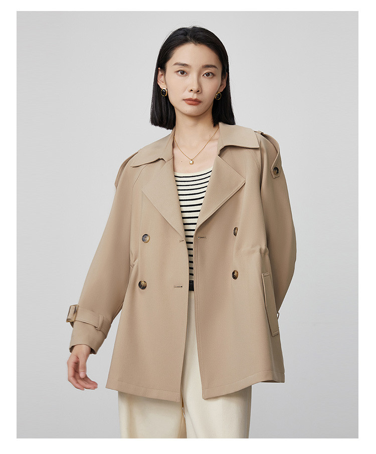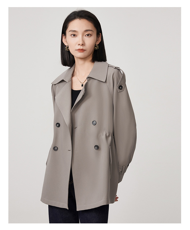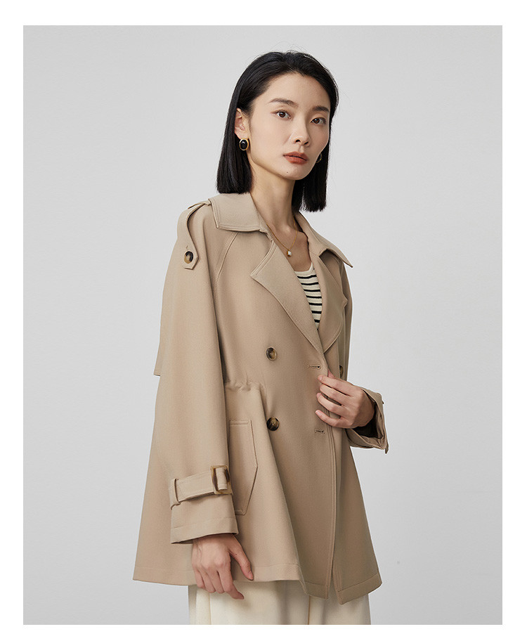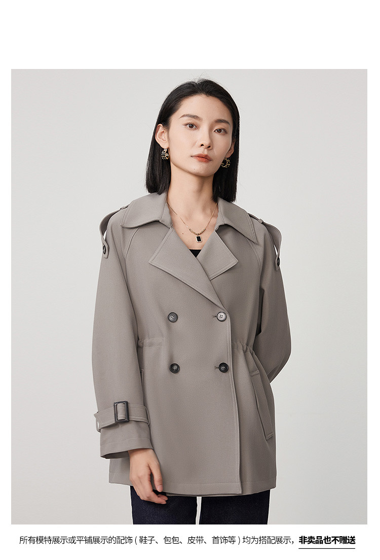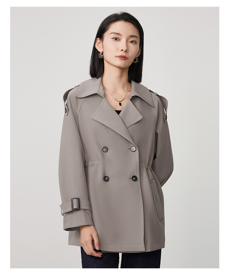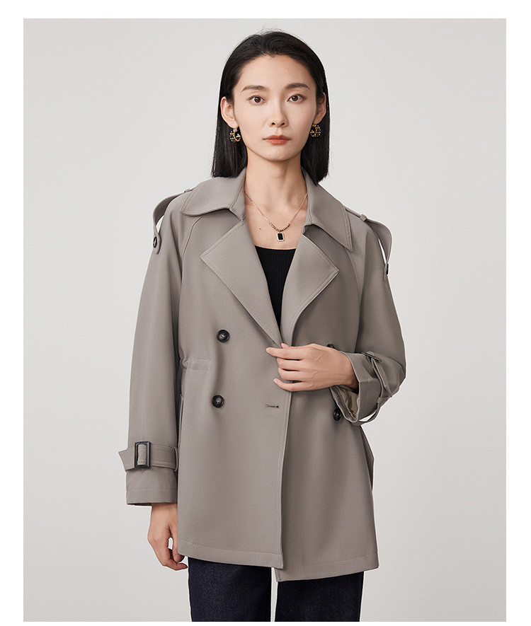 商品名称:春秋新款小个子时尚风衣女式内抽绳气质显瘦短款休闲外套 344735