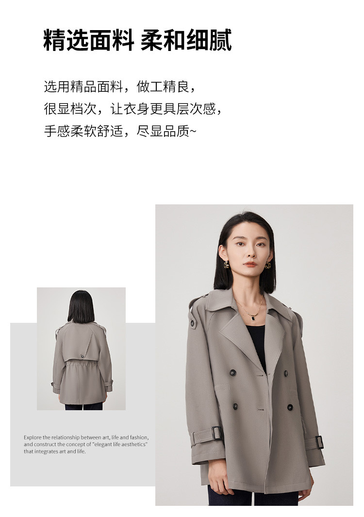 春秋新款小个子时尚风衣女式内抽绳气质显瘦短款休闲外套 344735