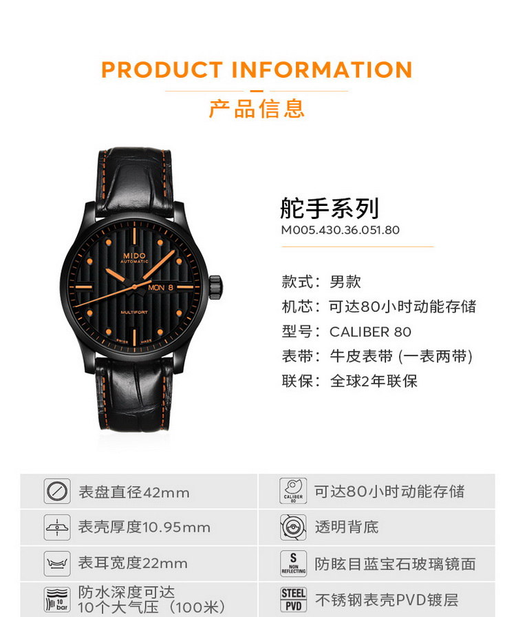 商品名称:MIDO美度 舵手系列真皮机械男表(不支持无理由退换货)