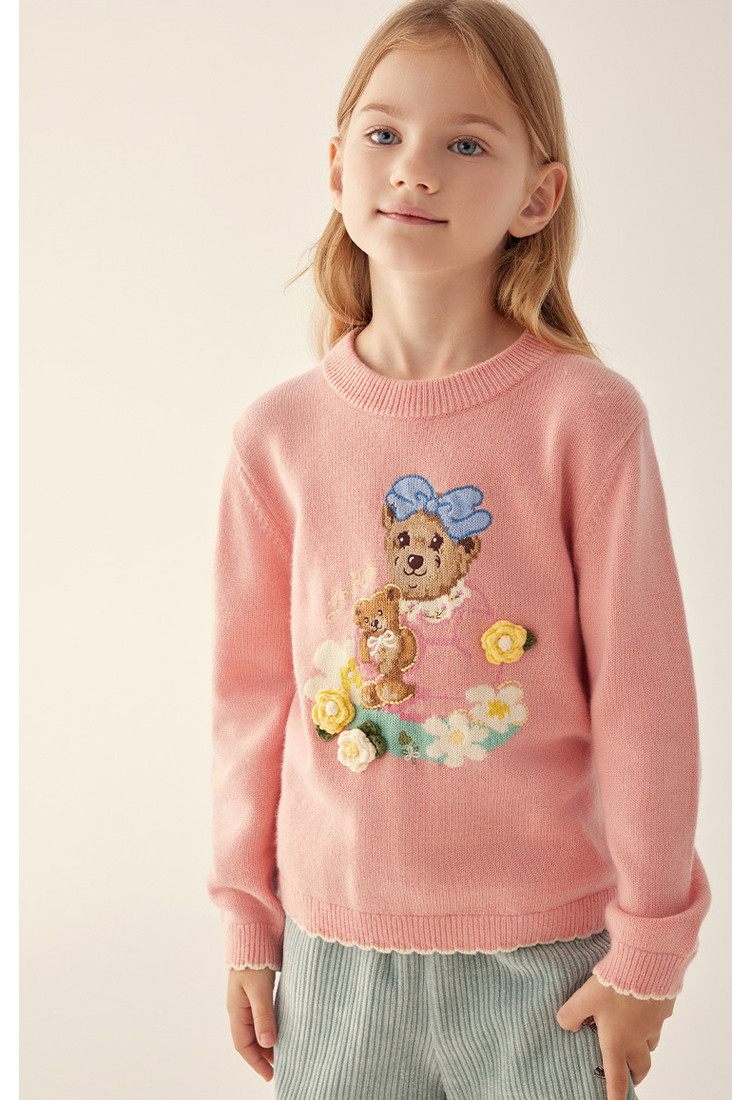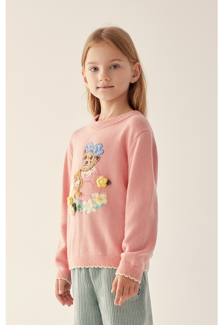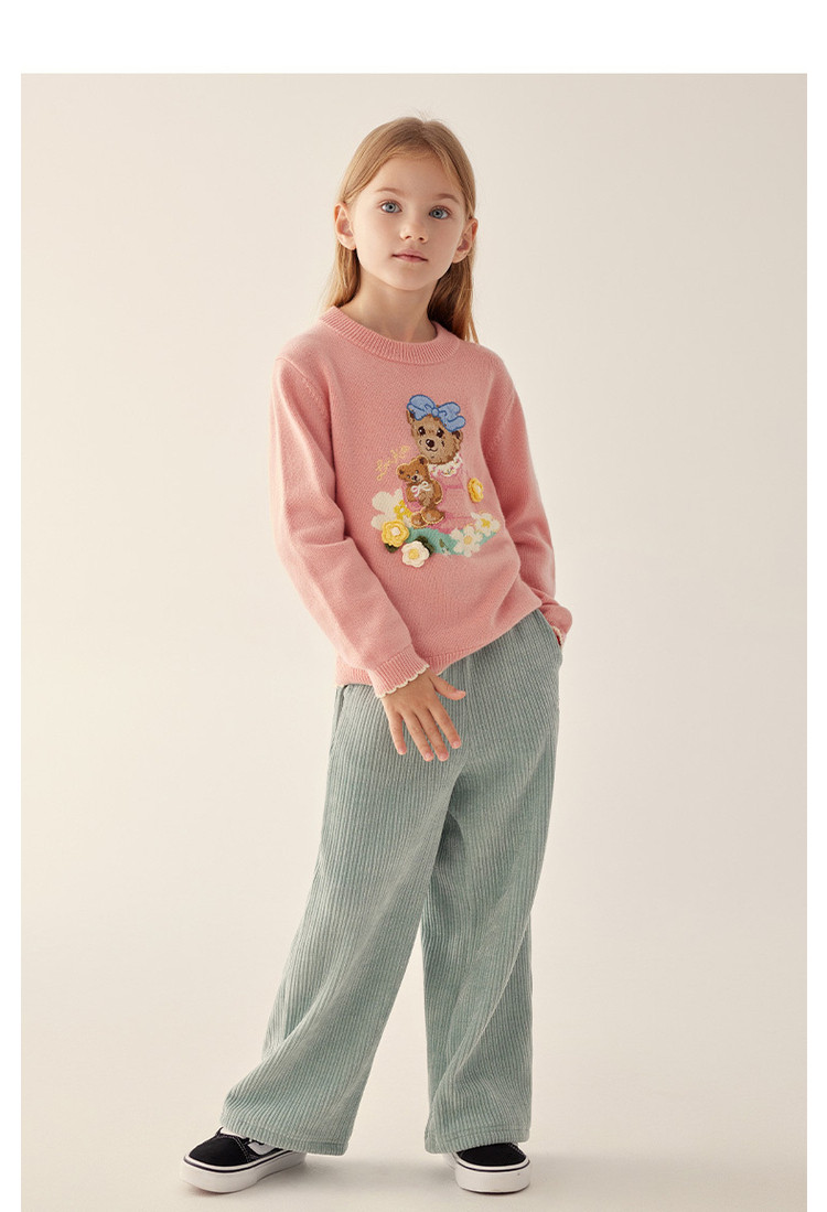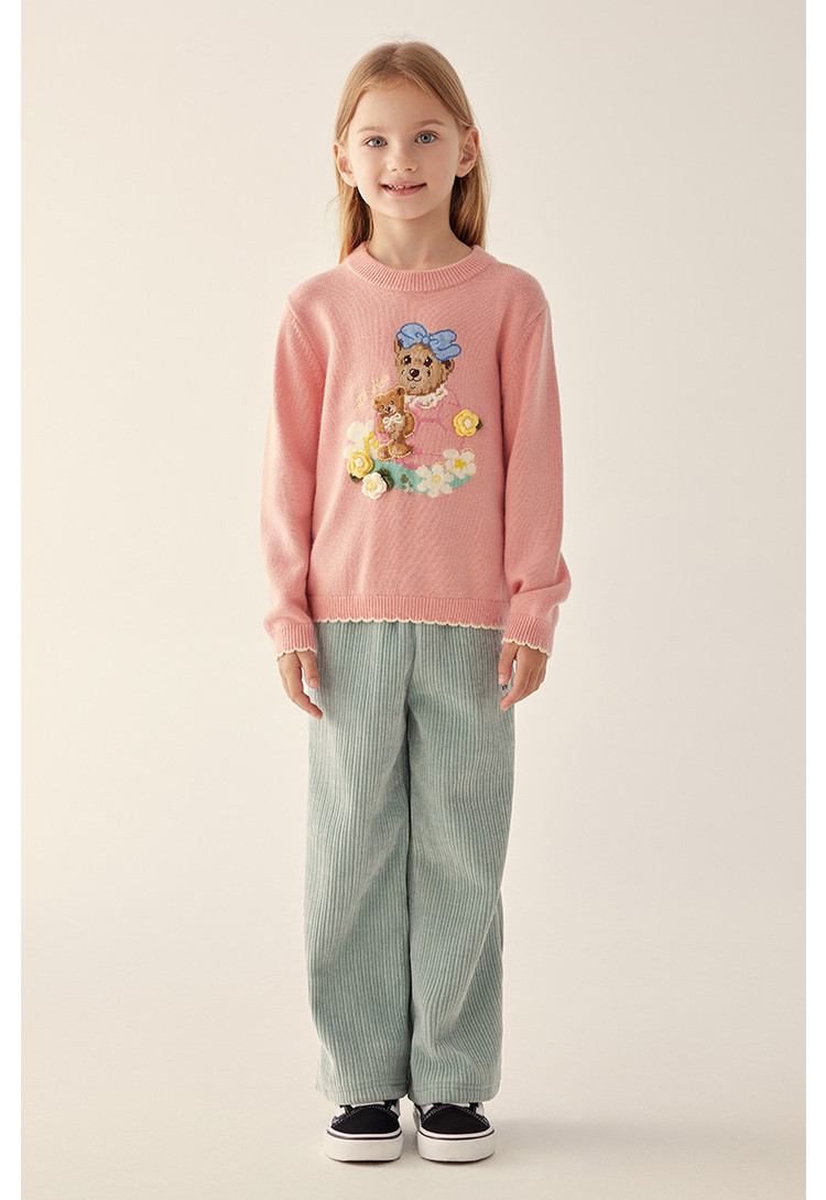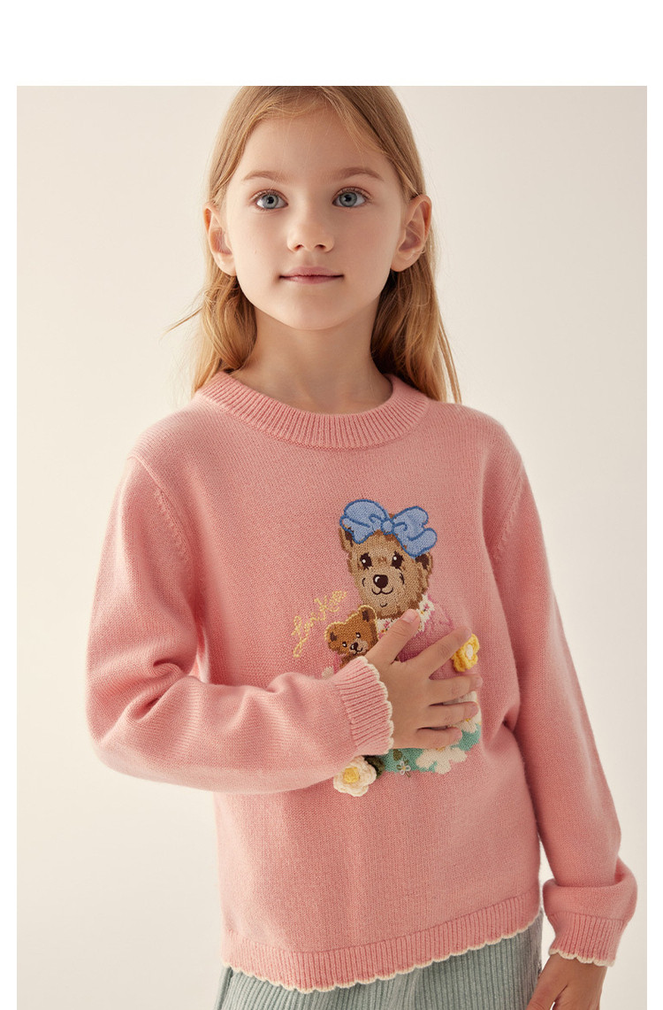 商品名称:小熊童装秋冬女童圆领套头花边毛衣 025153