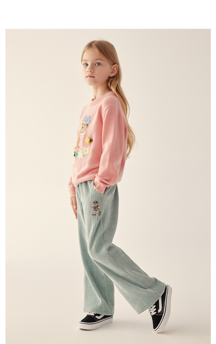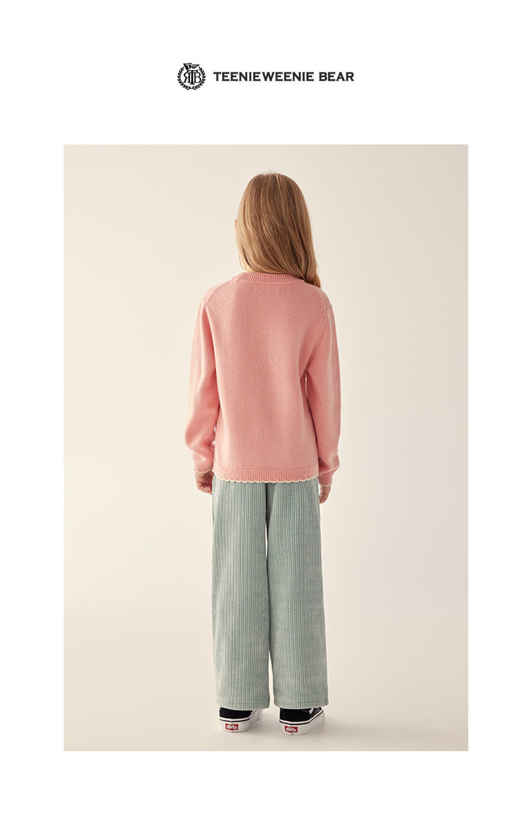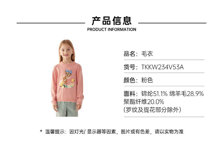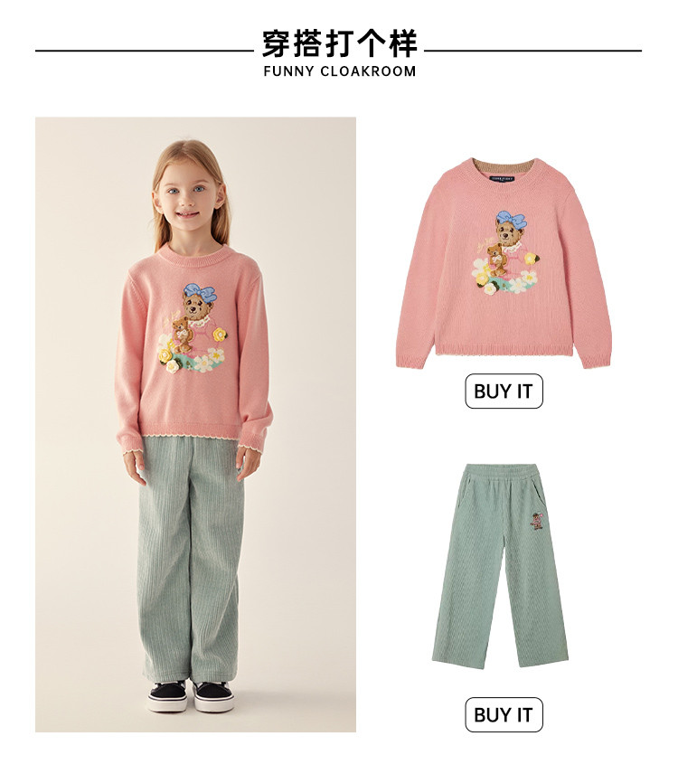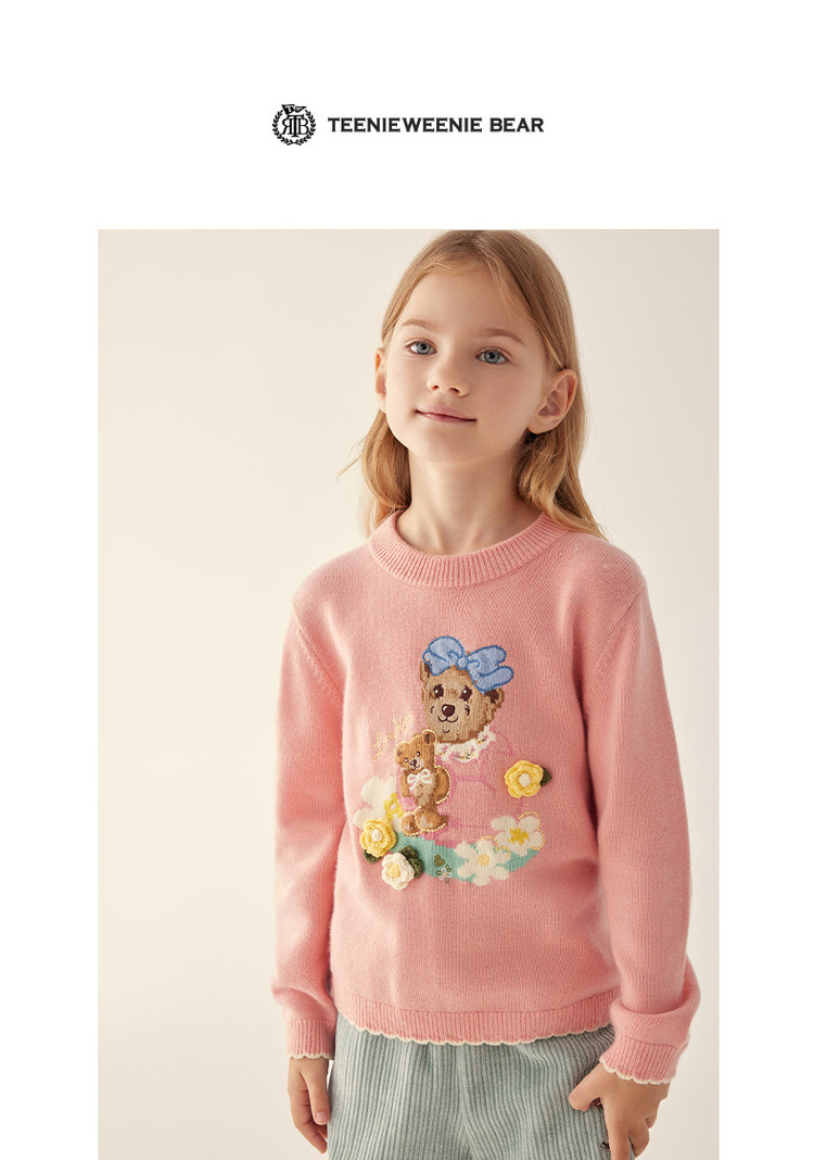 商品名称:小熊童装秋冬女童圆领套头花边毛衣 025153