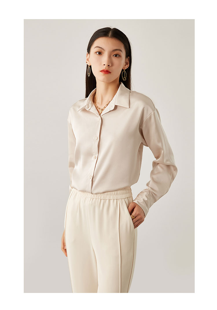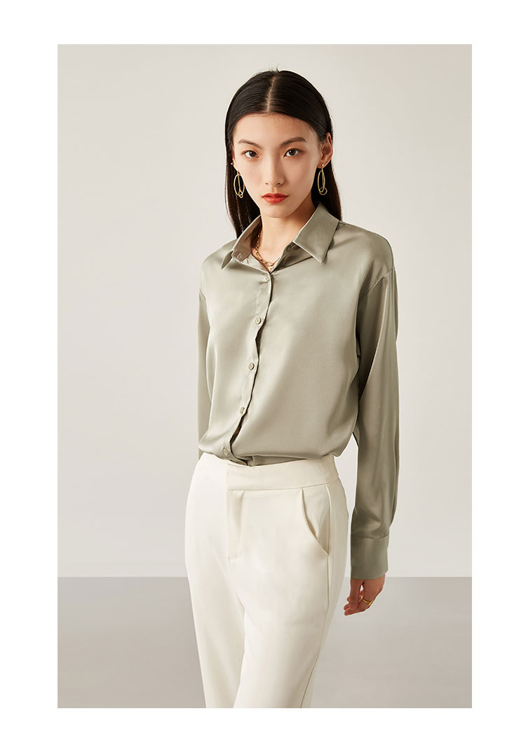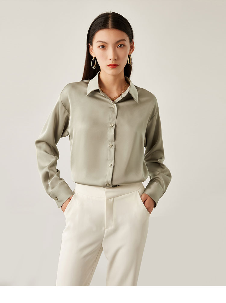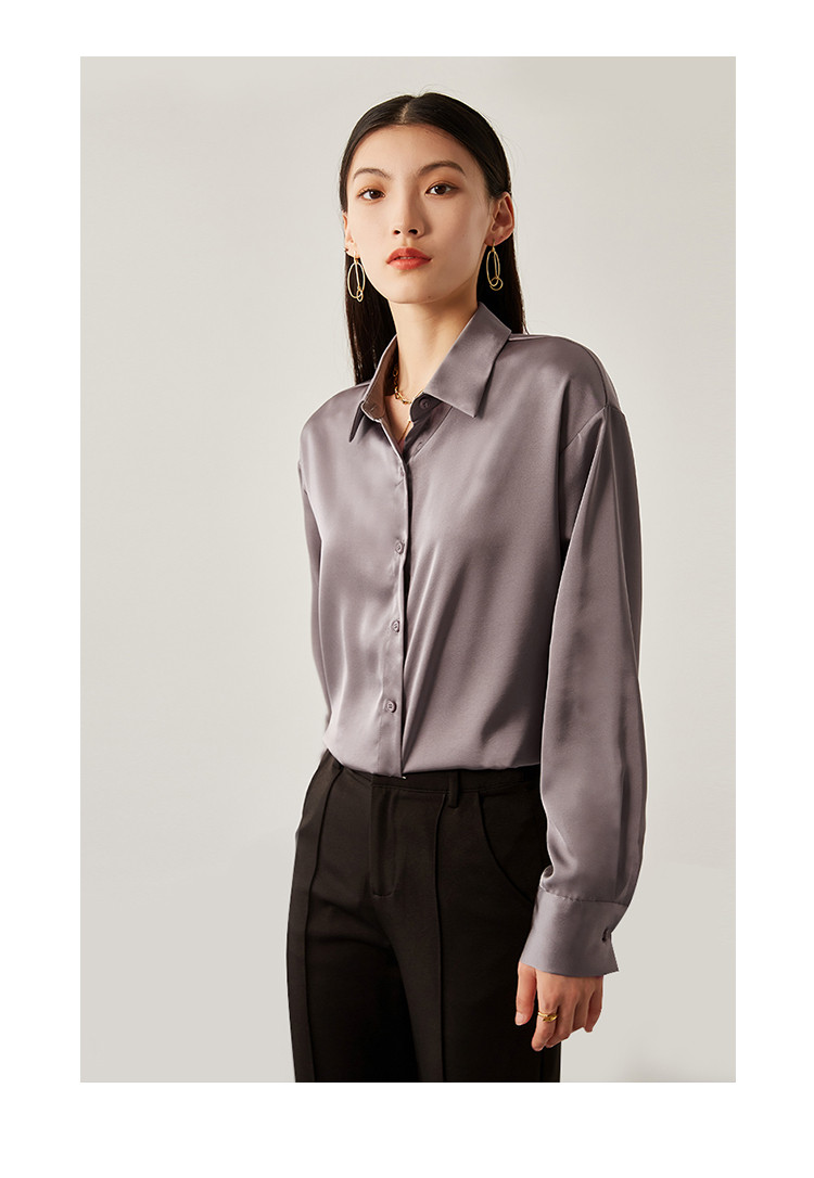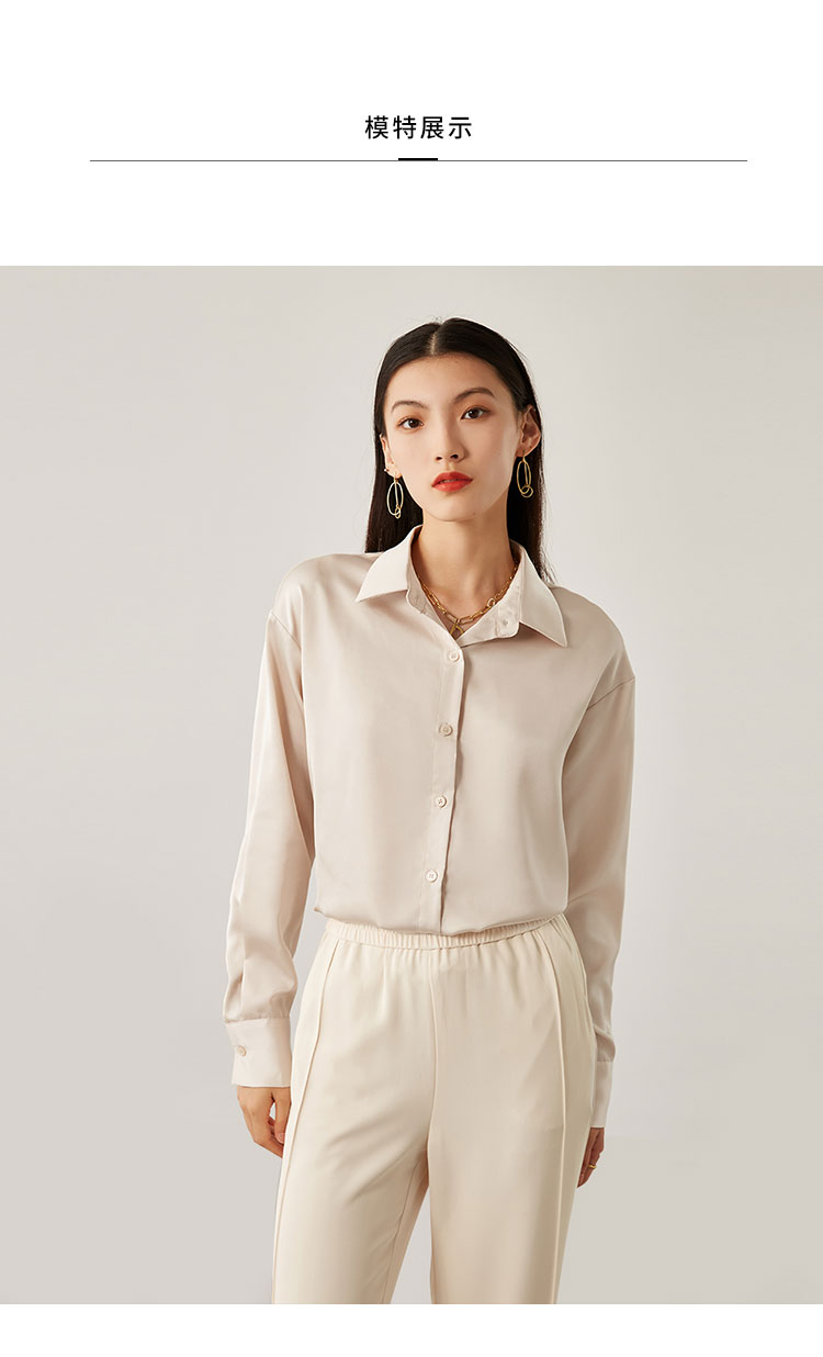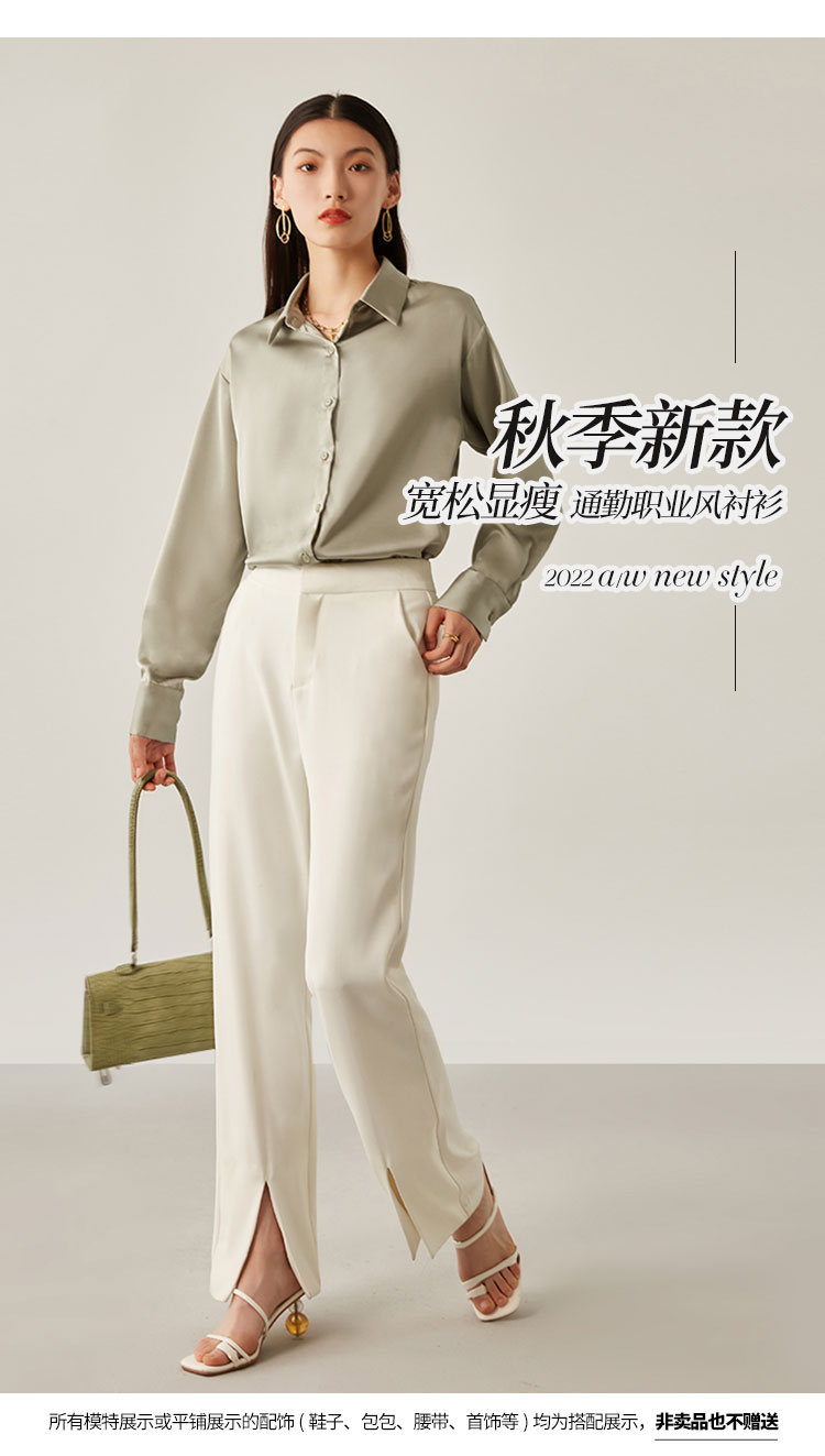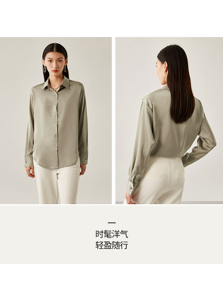 商品名称:春秋新款时尚翻领长袖衬衫女宽松显瘦衬衣通勤职业风雪纺衫 444319