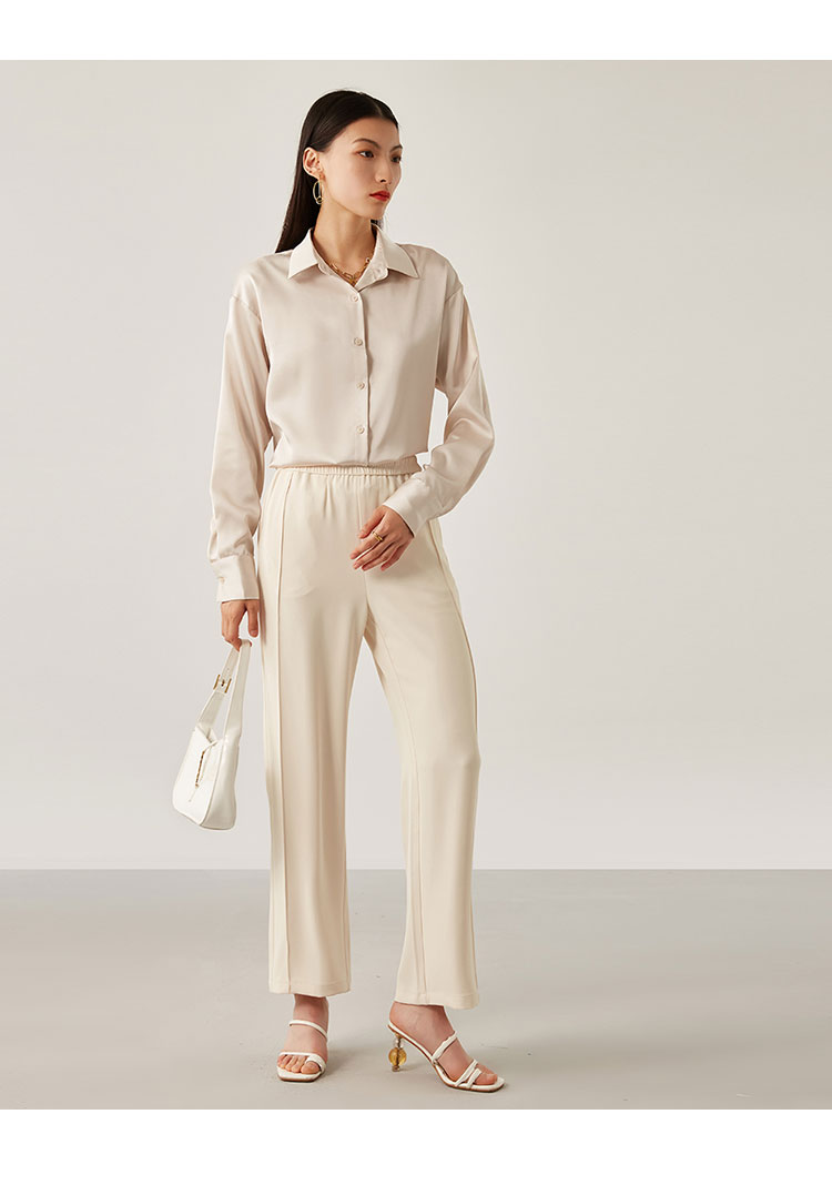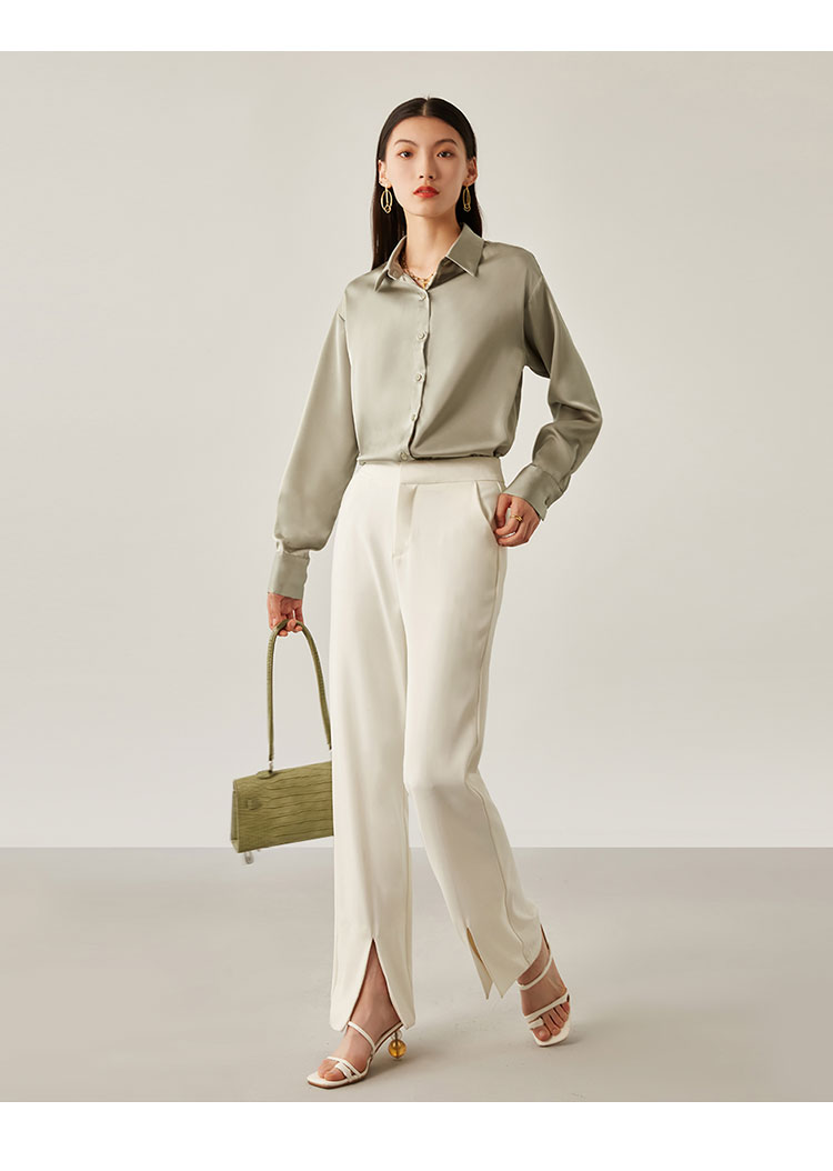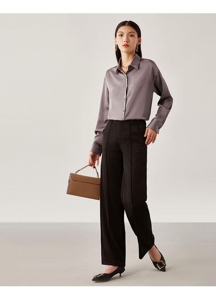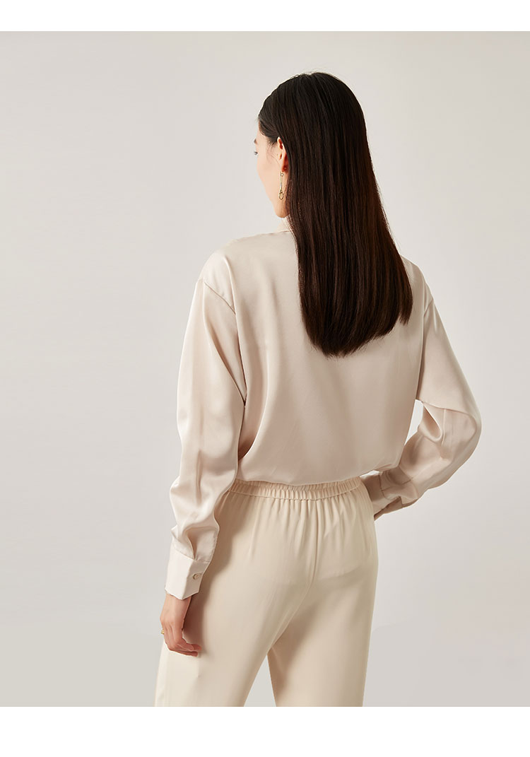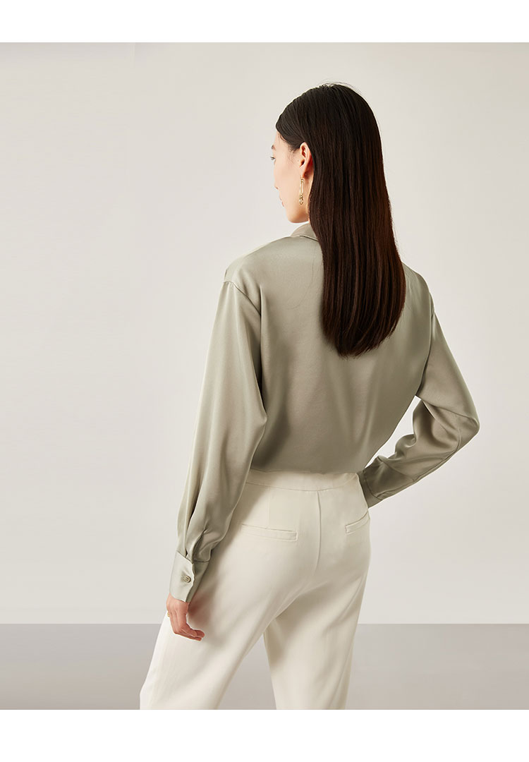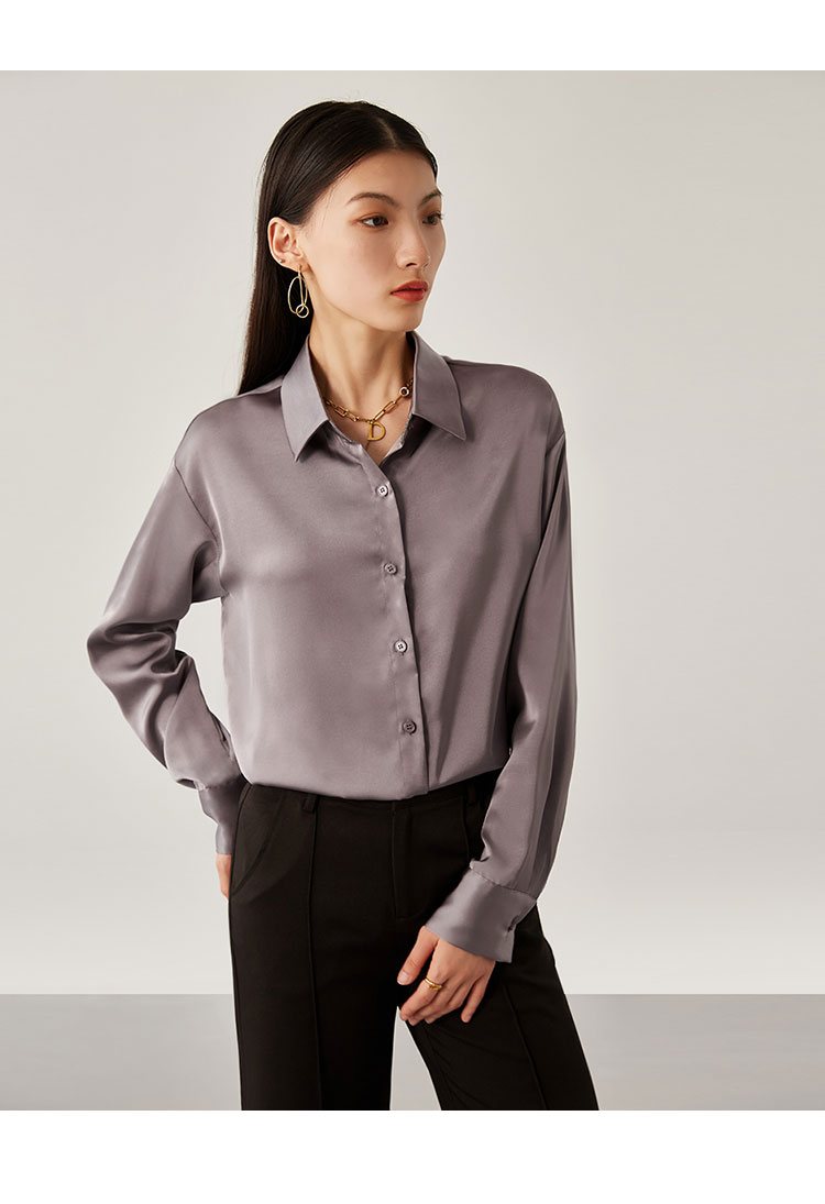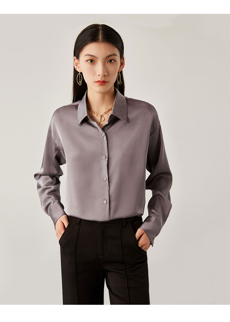 商品名称:春秋新款时尚翻领长袖衬衫女宽松显瘦衬衣通勤职业风雪纺衫 444319