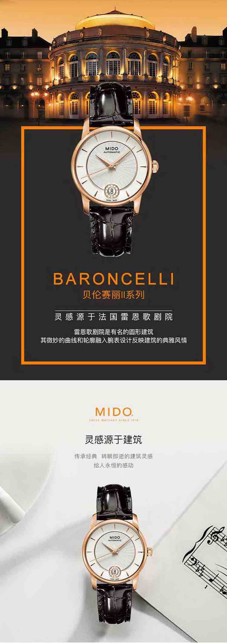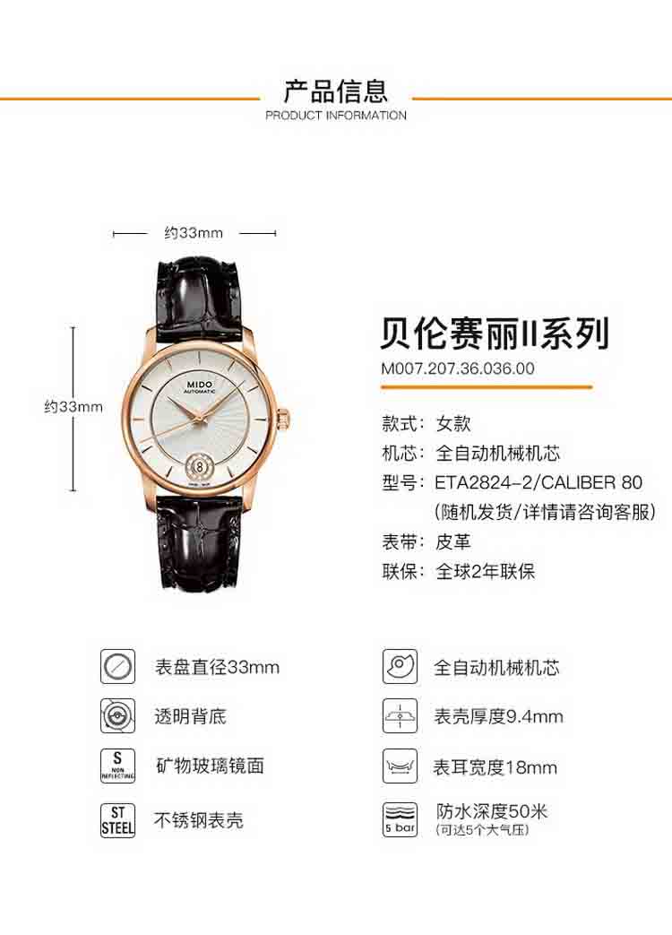 商品名称:MIDO美度 贝伦赛丽纪念日简约皮带机械手表 女表 (不支持无理由退换货)