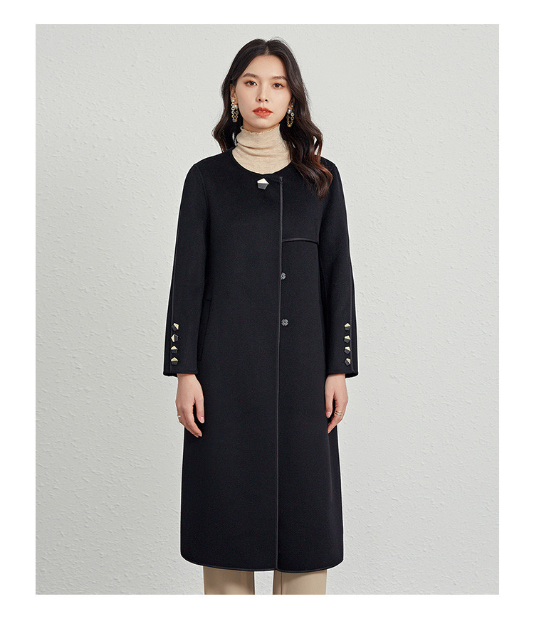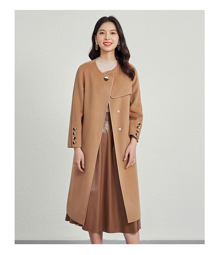 商品名称:秋冬时尚设计感羊毛大衣女式休闲圆领不对称长款双面呢外套 547935