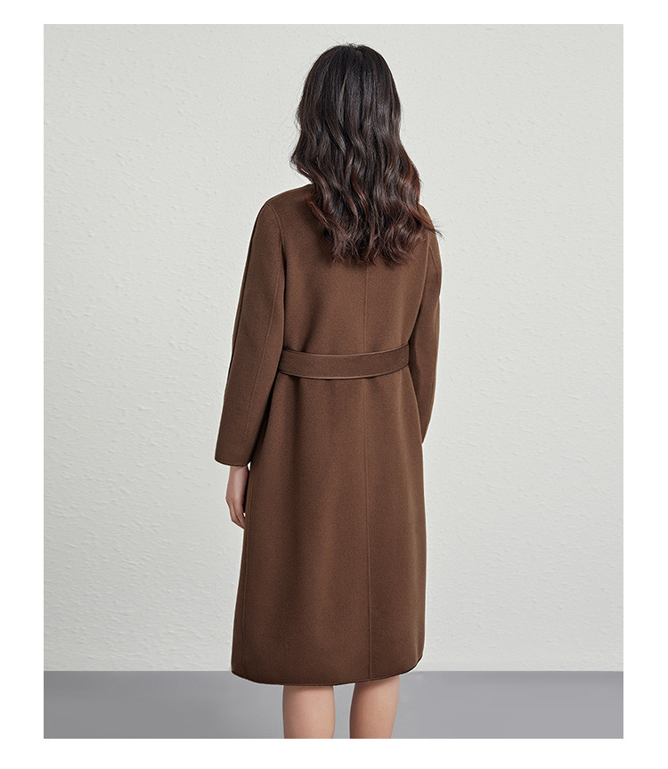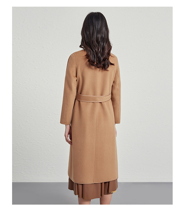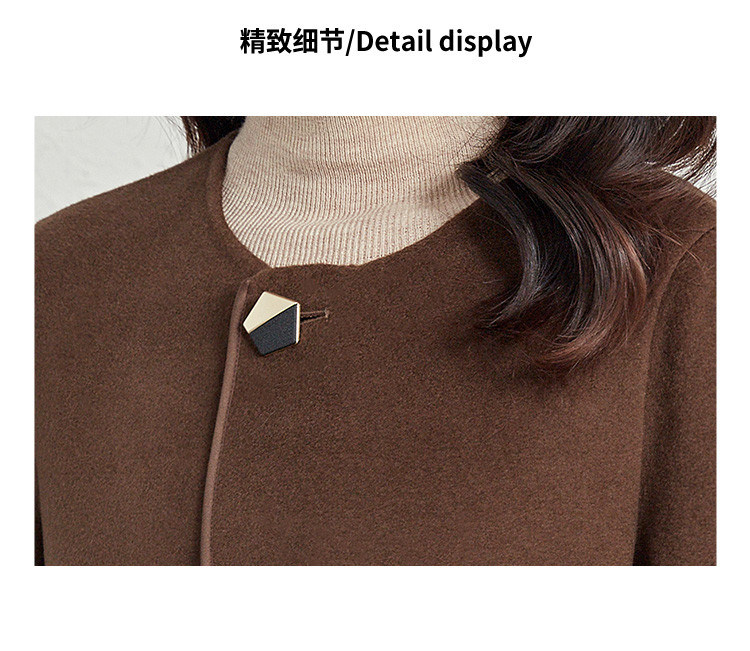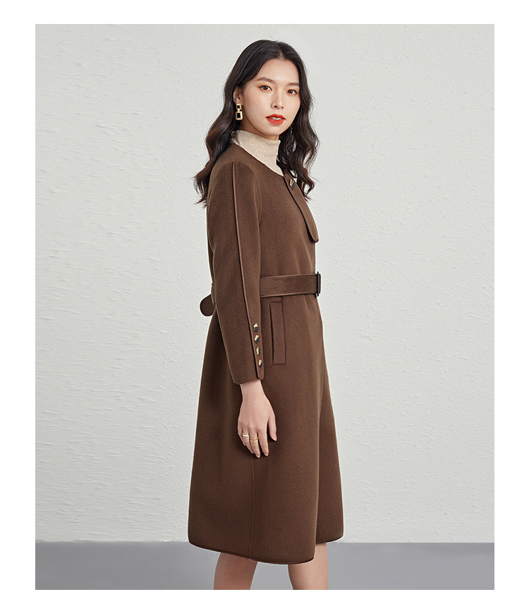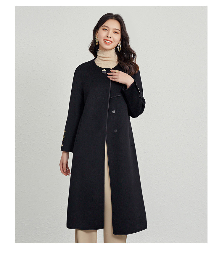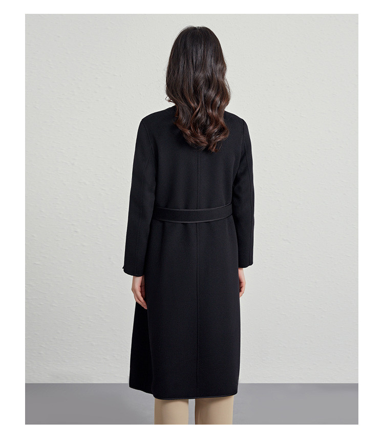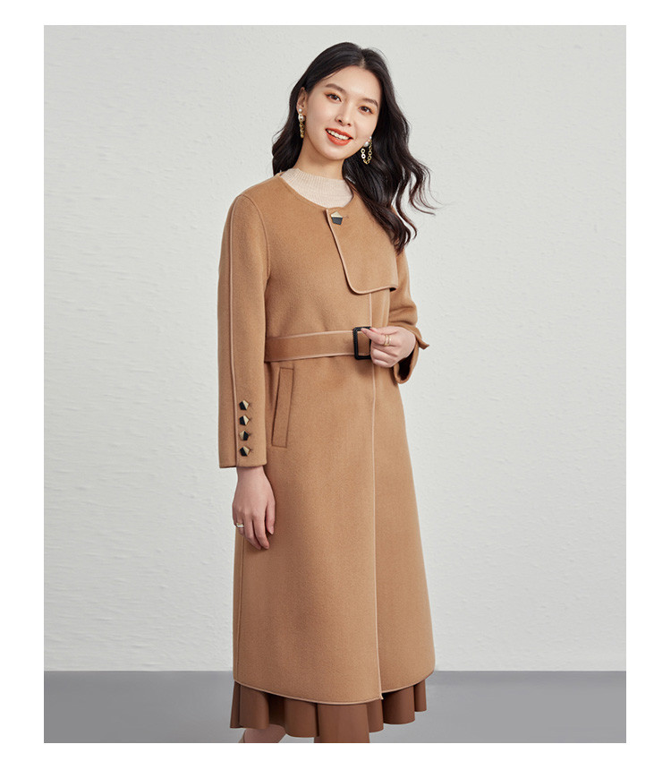 秋冬时尚设计感羊毛大衣女式休闲圆领不对称长款双面呢外套 547935