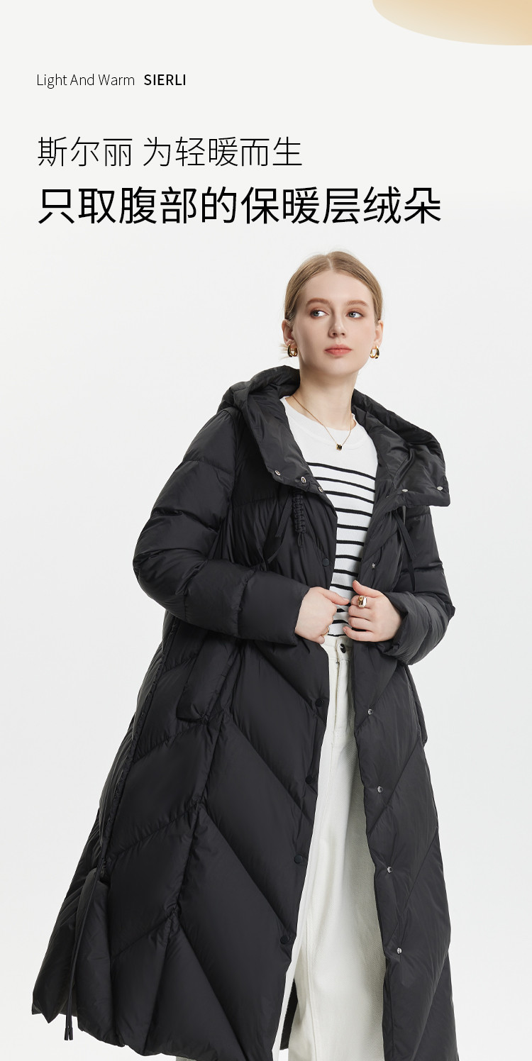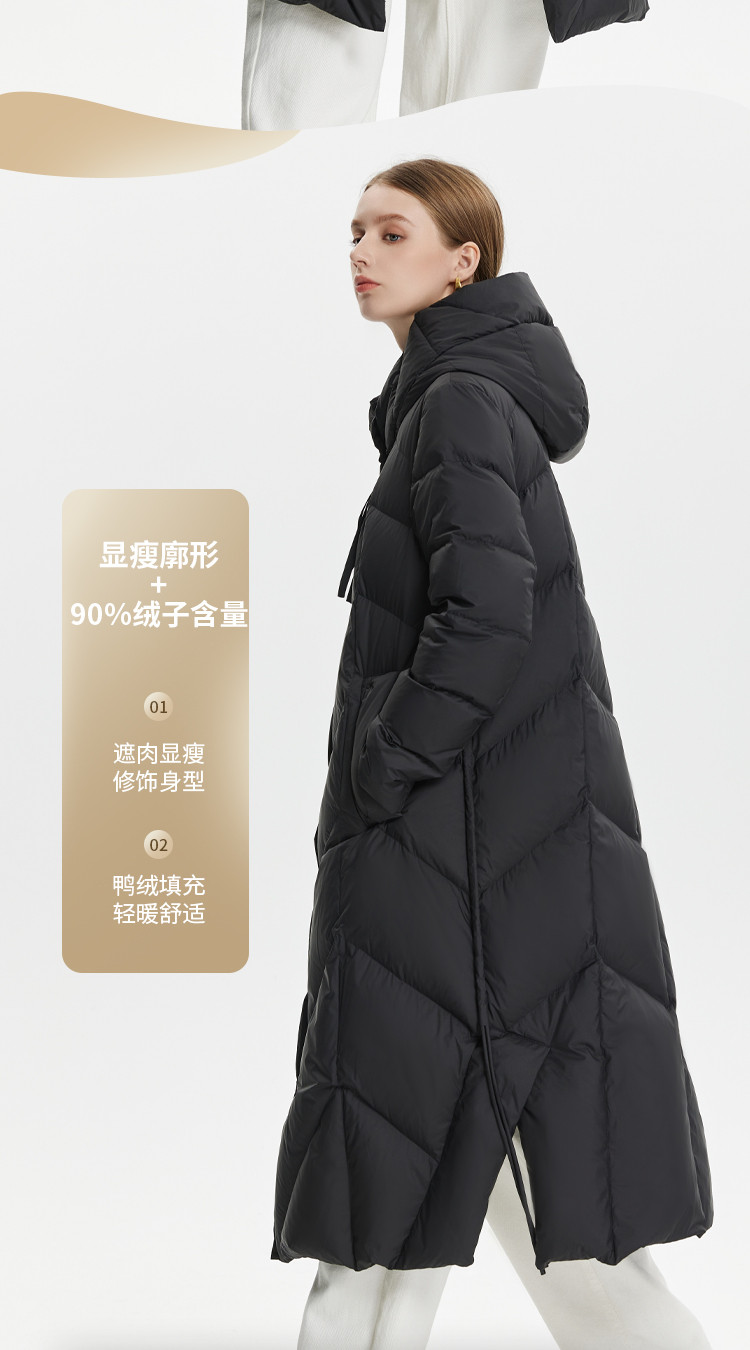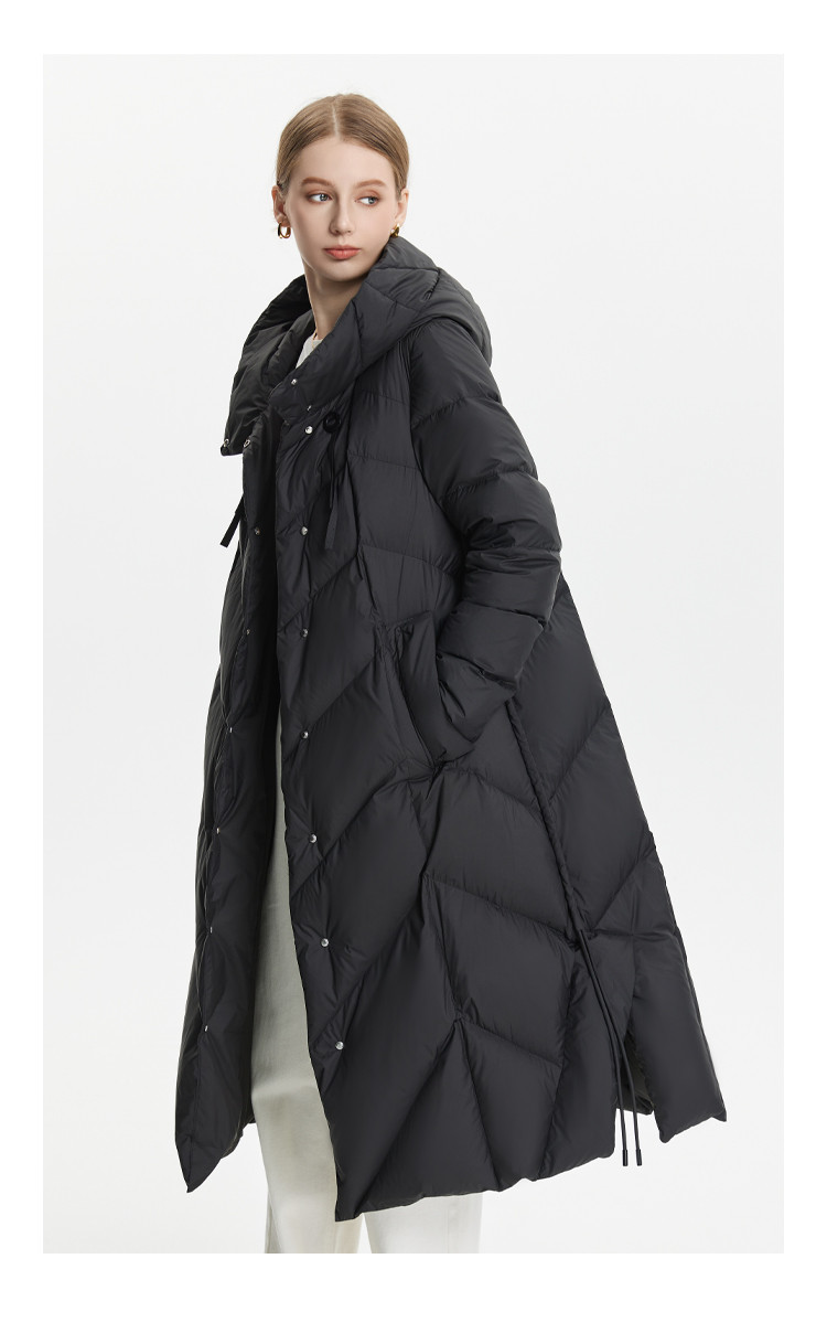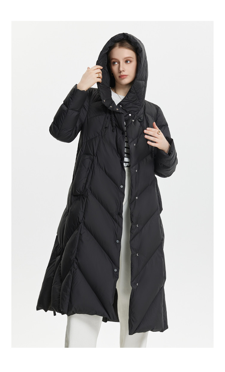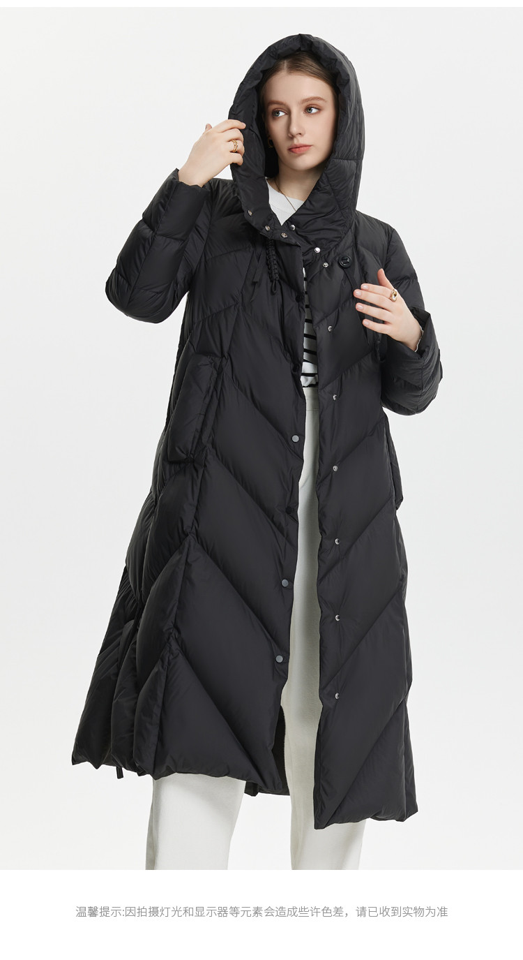 H版商务气质优雅修身连帽单排扣设计厚女式长款羽绒服 319071
