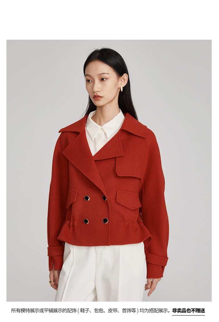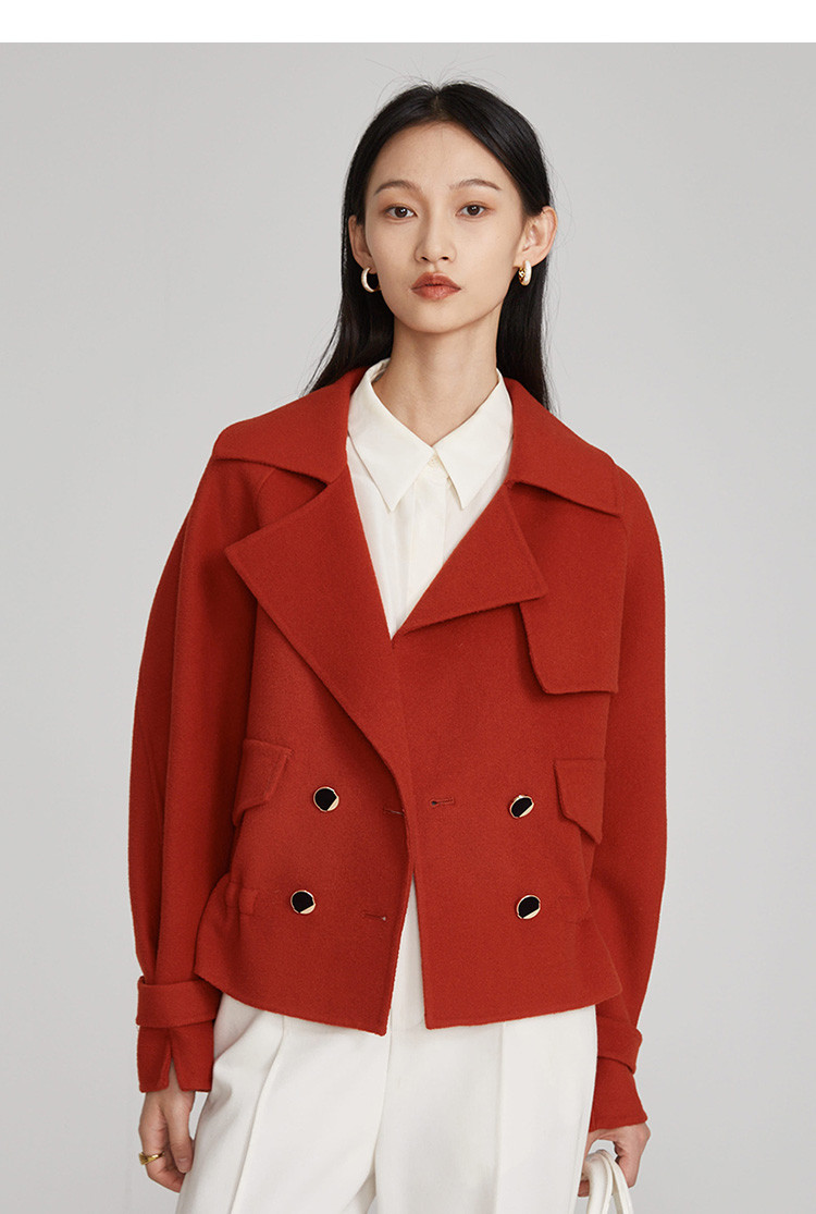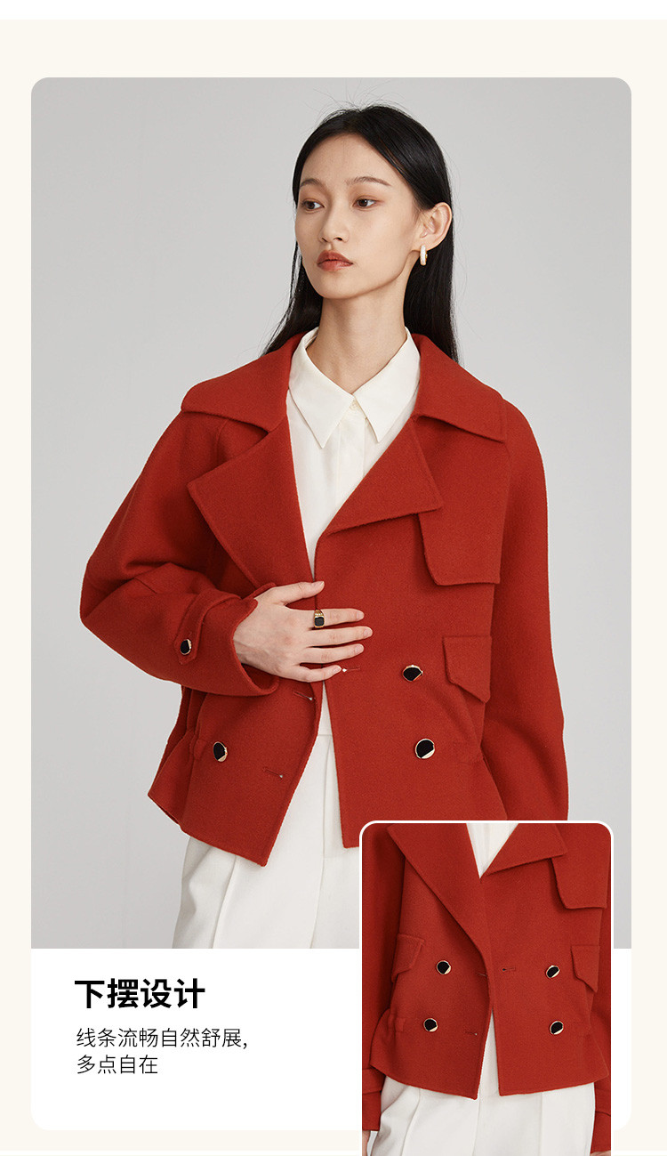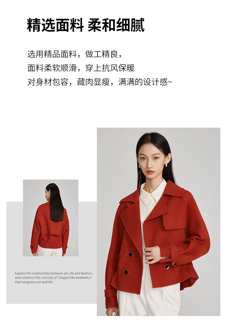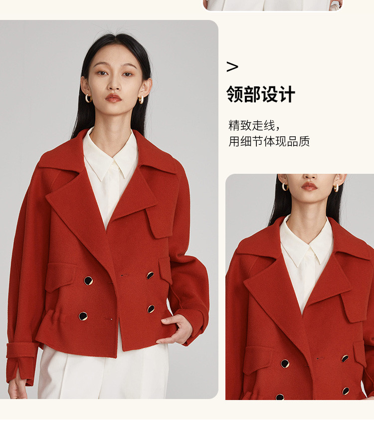 商品名称:春秋100%绵羊毛西装短款大衣女式休闲双面呢外套 580447