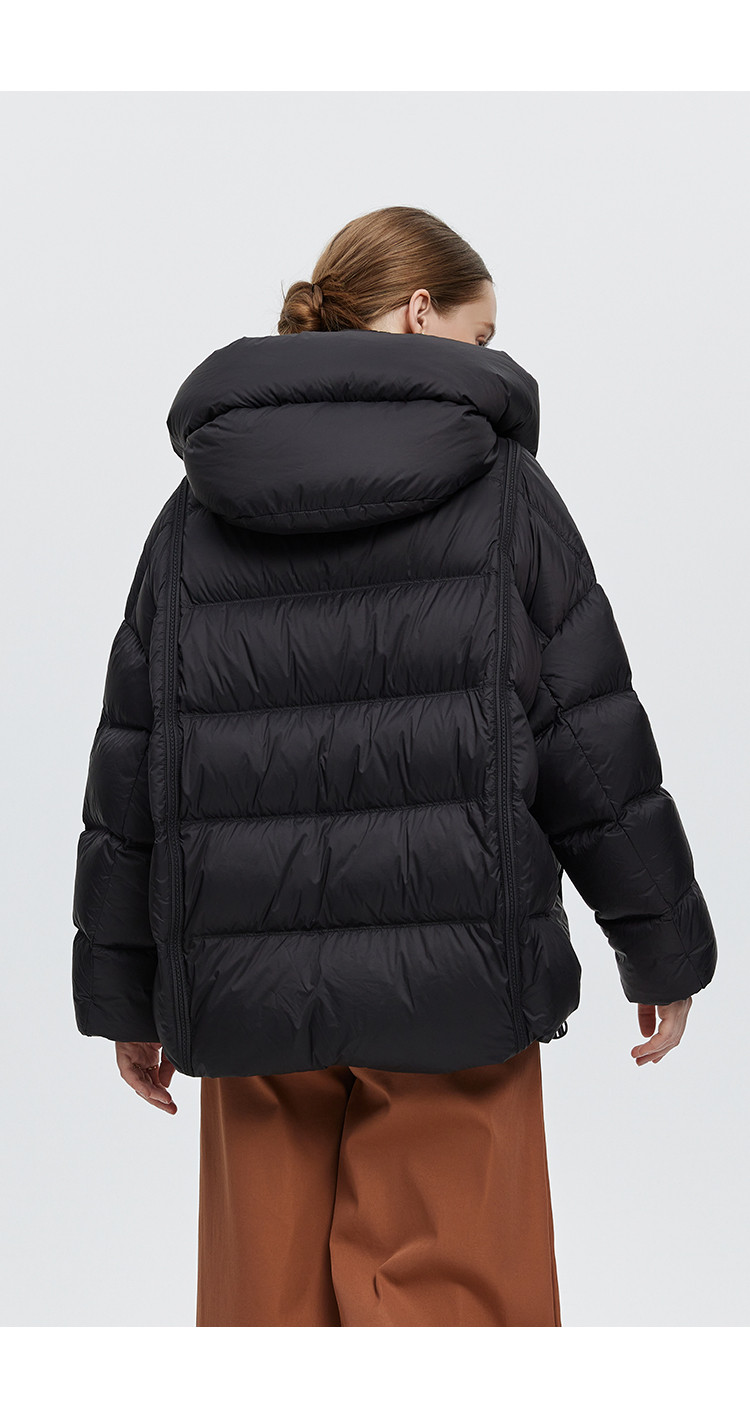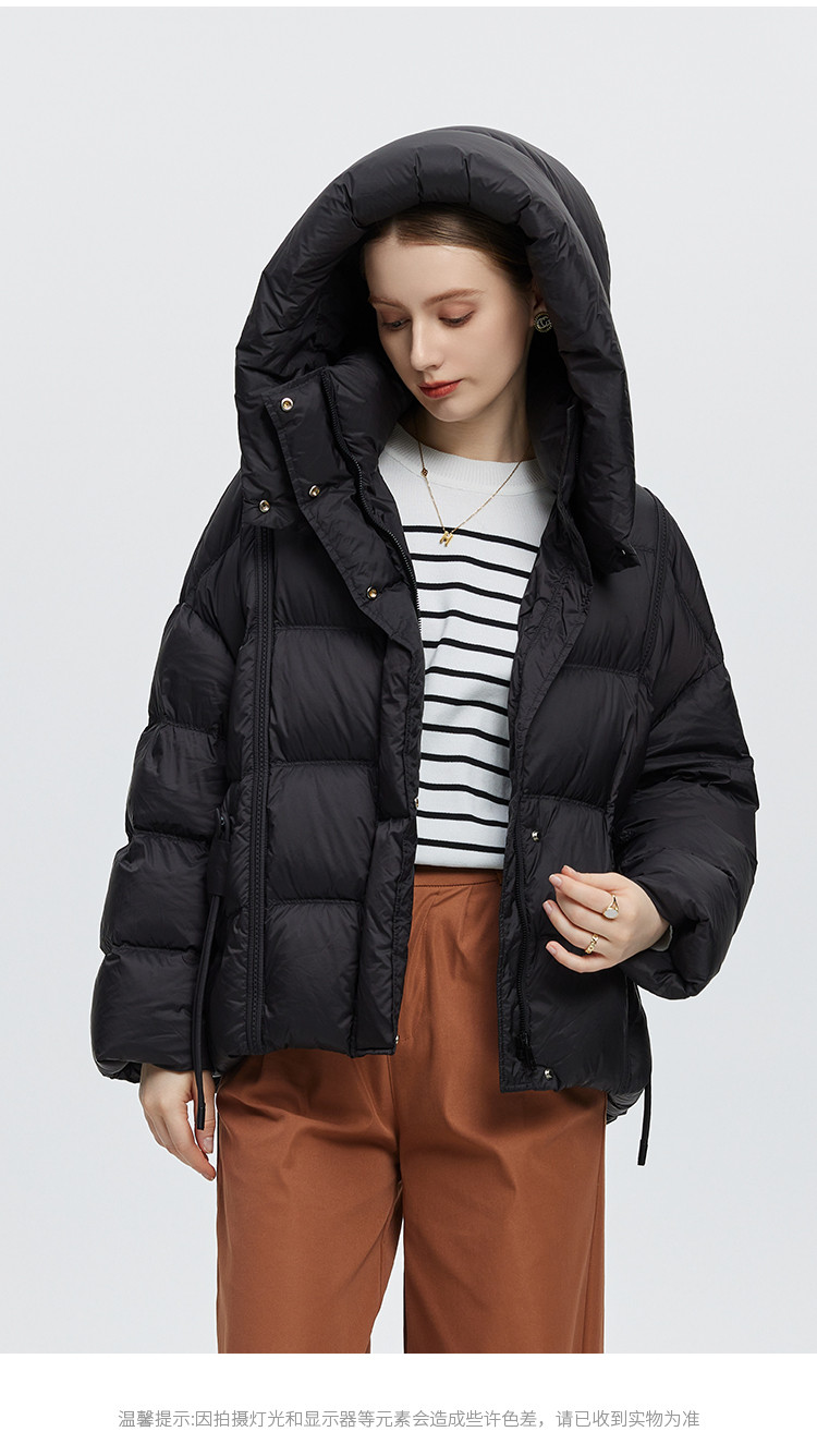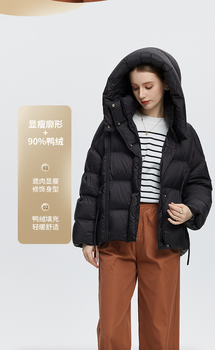 商品名称:纯色软芙芙面包服女式连帽直筒休闲短款羽绒服 628511