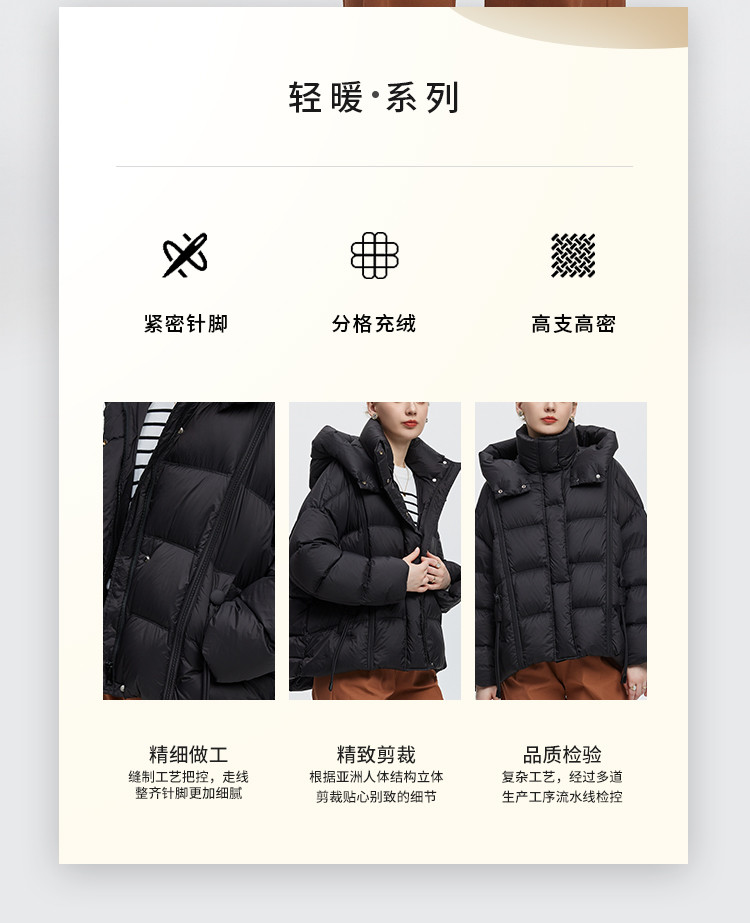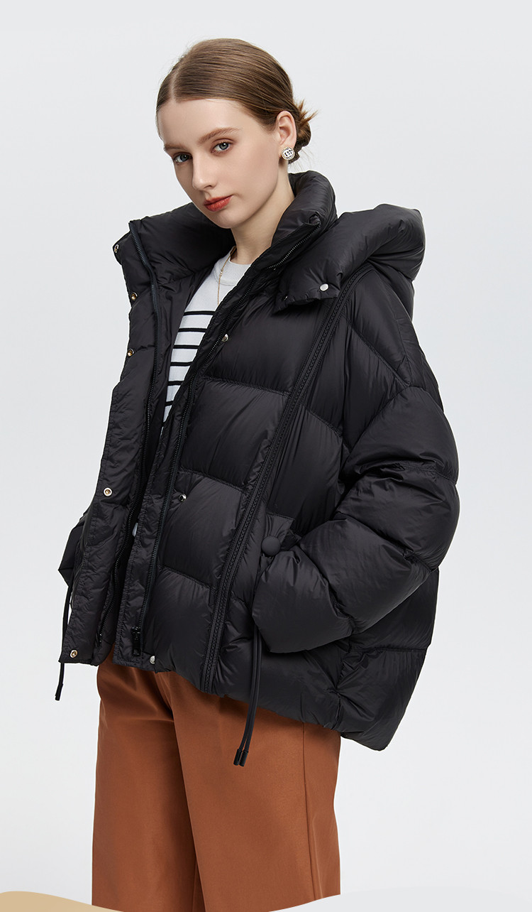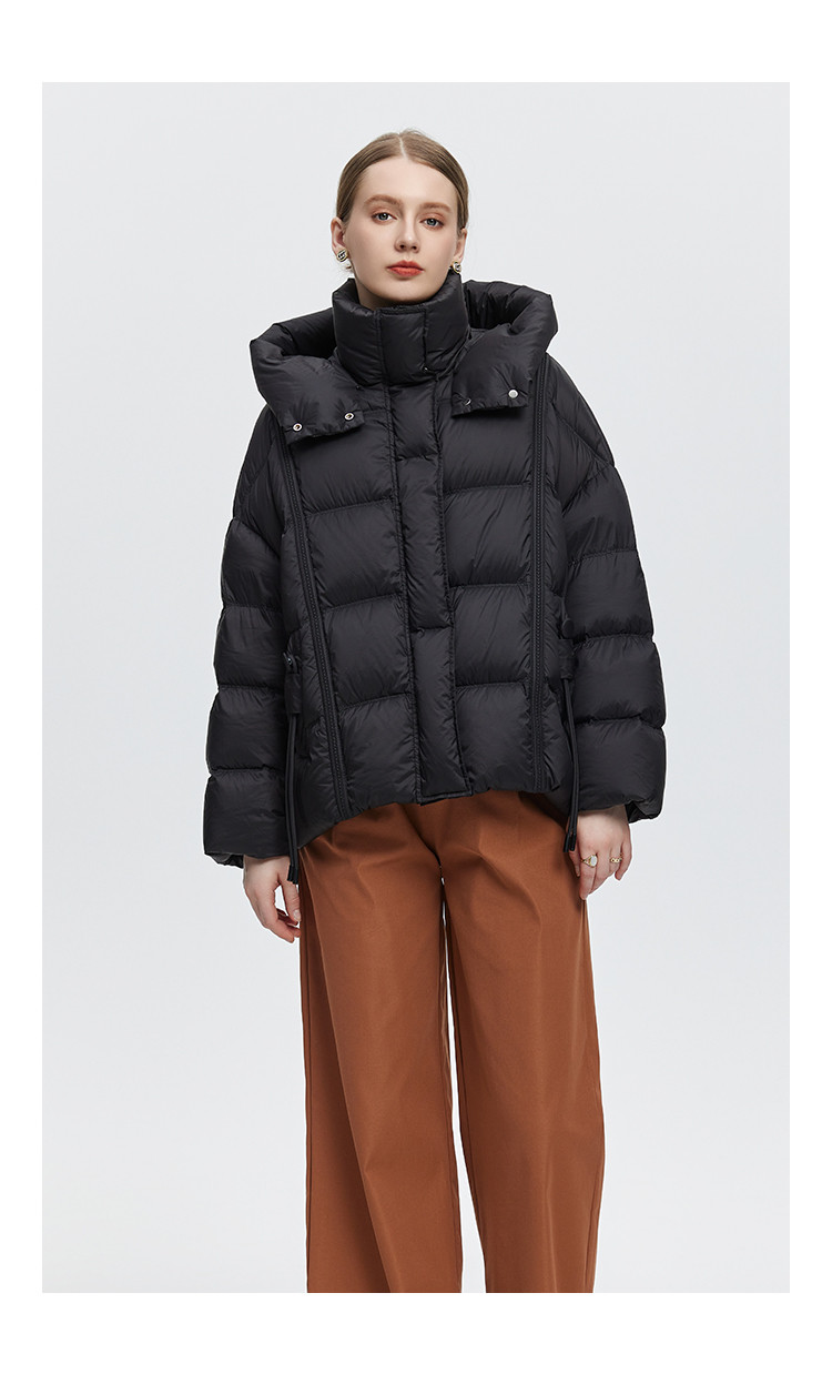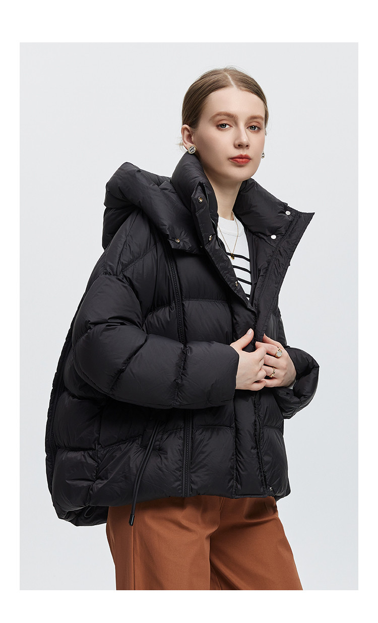 商品名称:纯色软芙芙面包服女式连帽直筒休闲短款羽绒服 628511