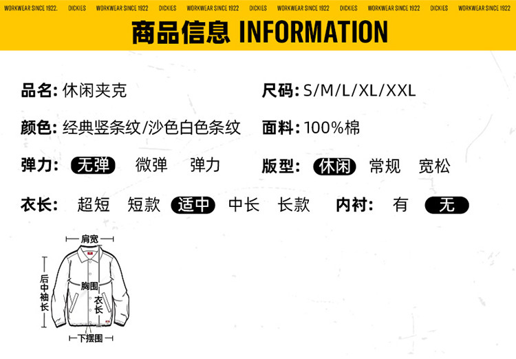 商品名称:Dickies男式春秋季休闲时尚夹克 DK010931 555856